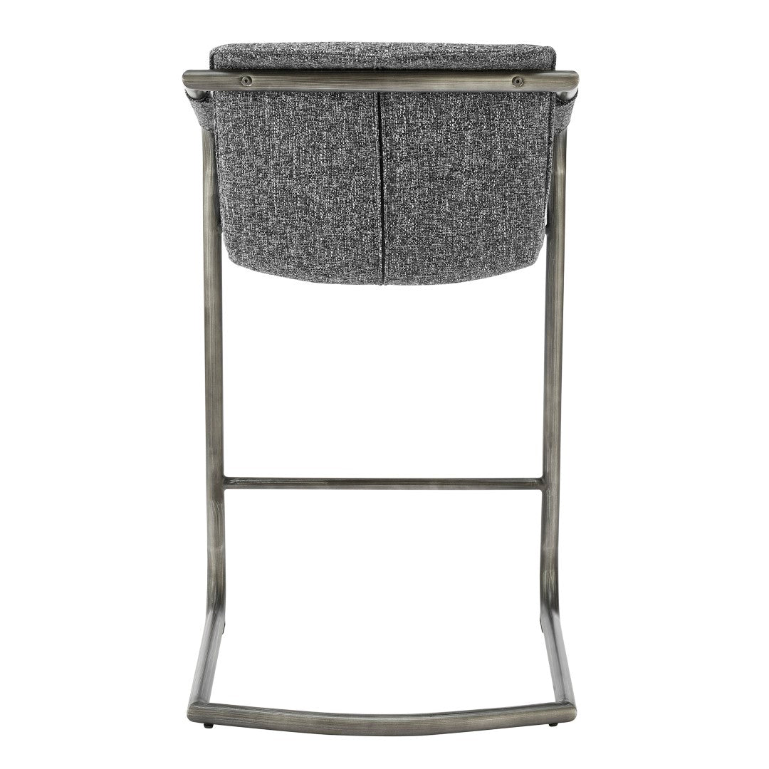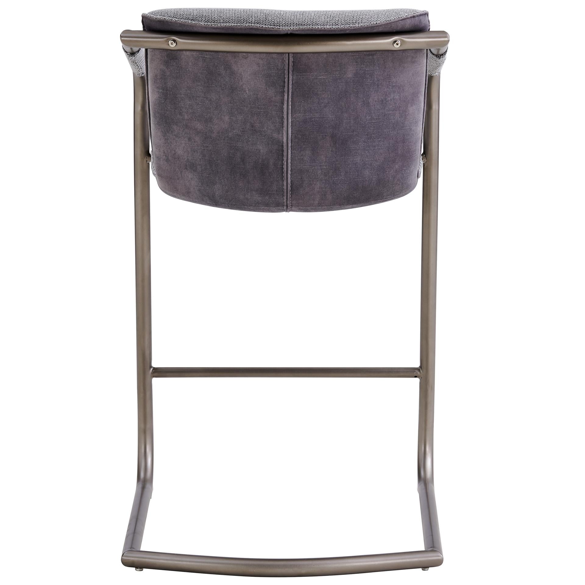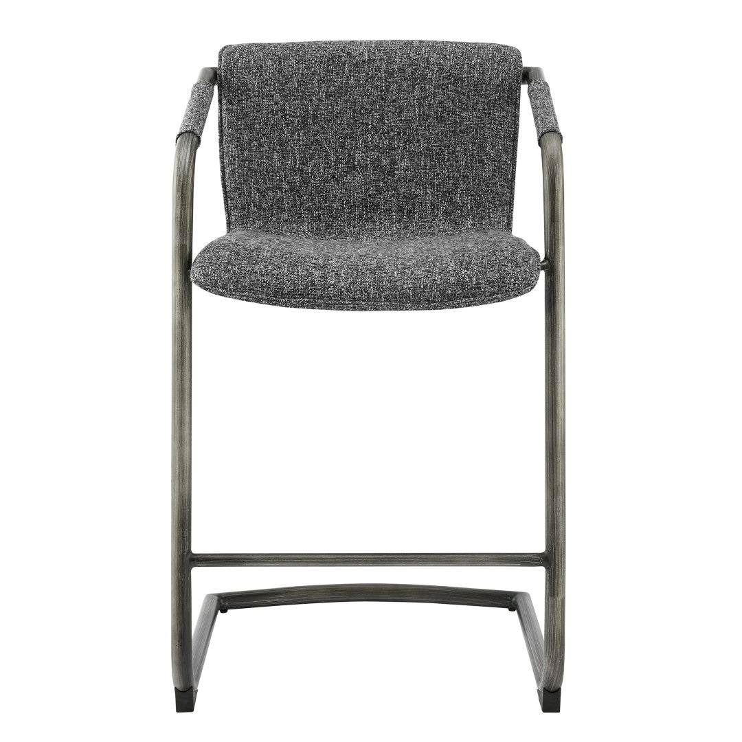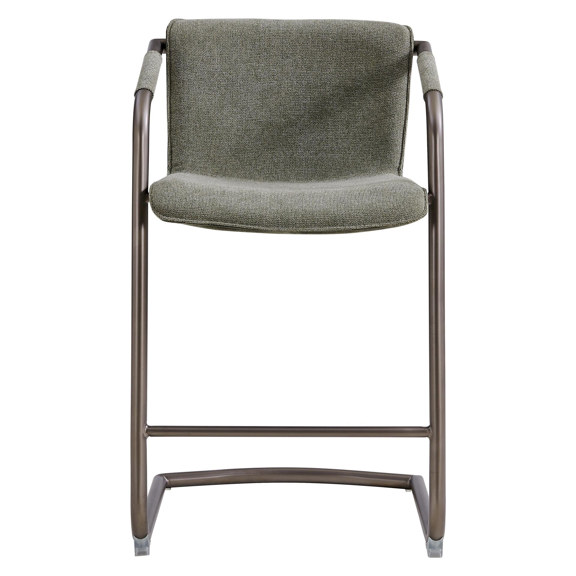 - Feature 1: INDUSTRIAL CHIC - Casual 35" h counter stool with stylish vintage hue upholstery and sleek wrapped arm detail on modern cantilever legs. Foot bar is incorporated for sturdiness.