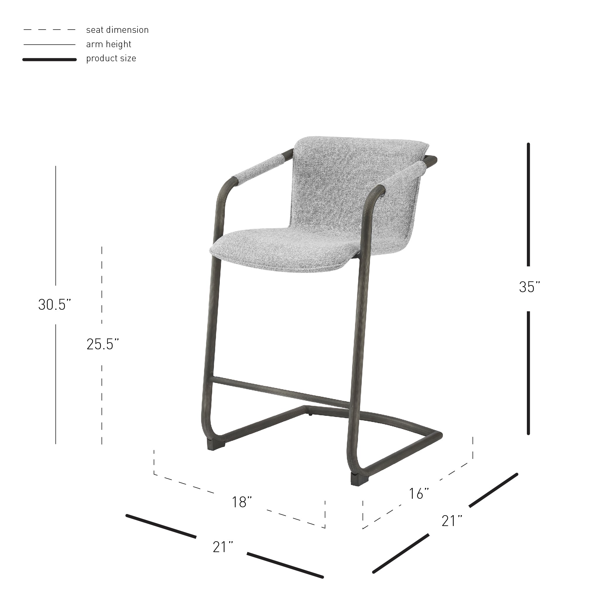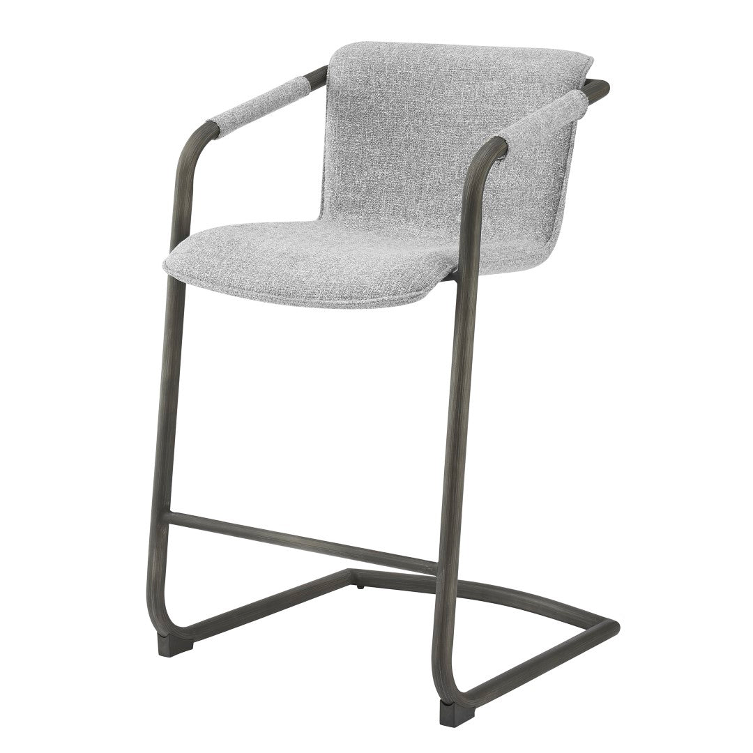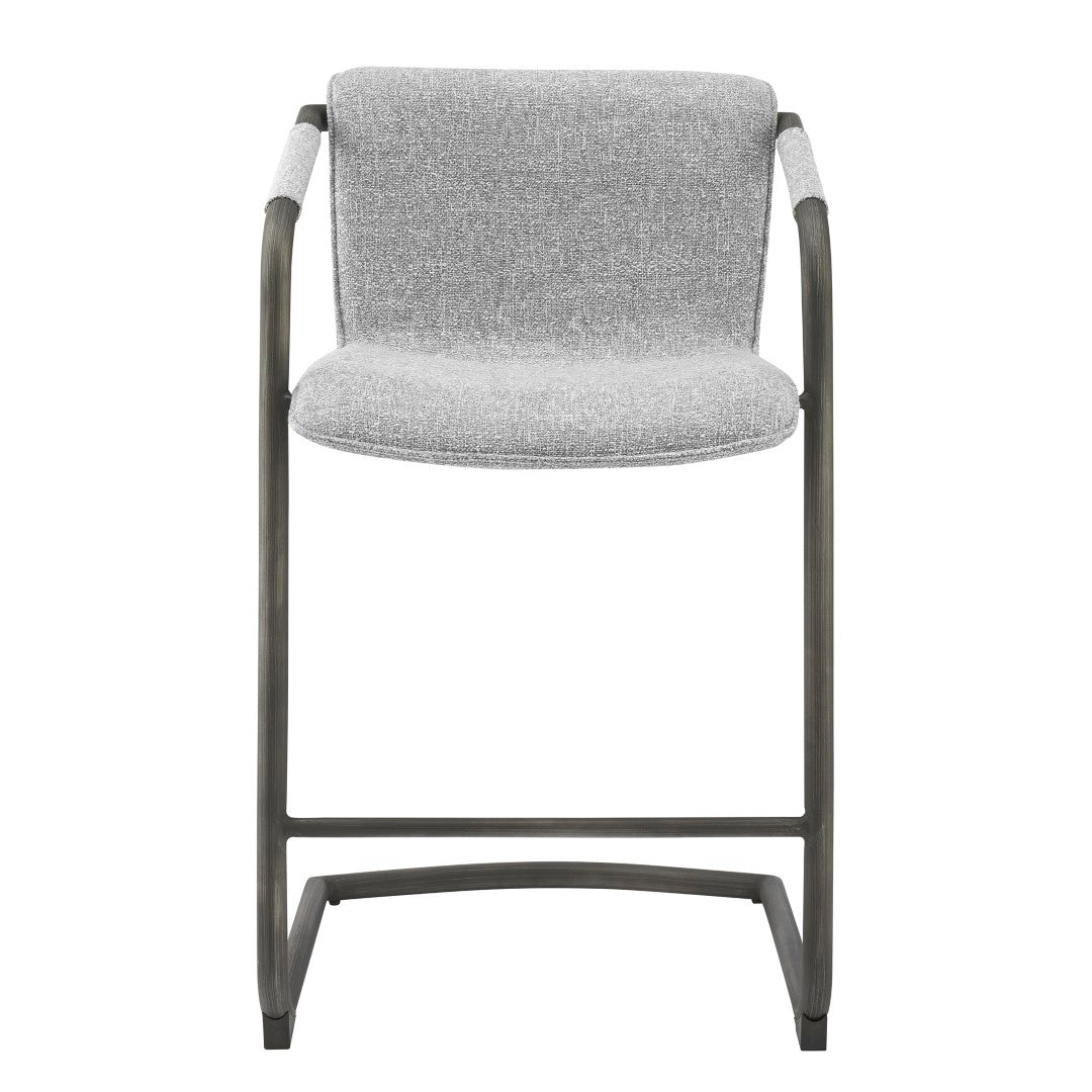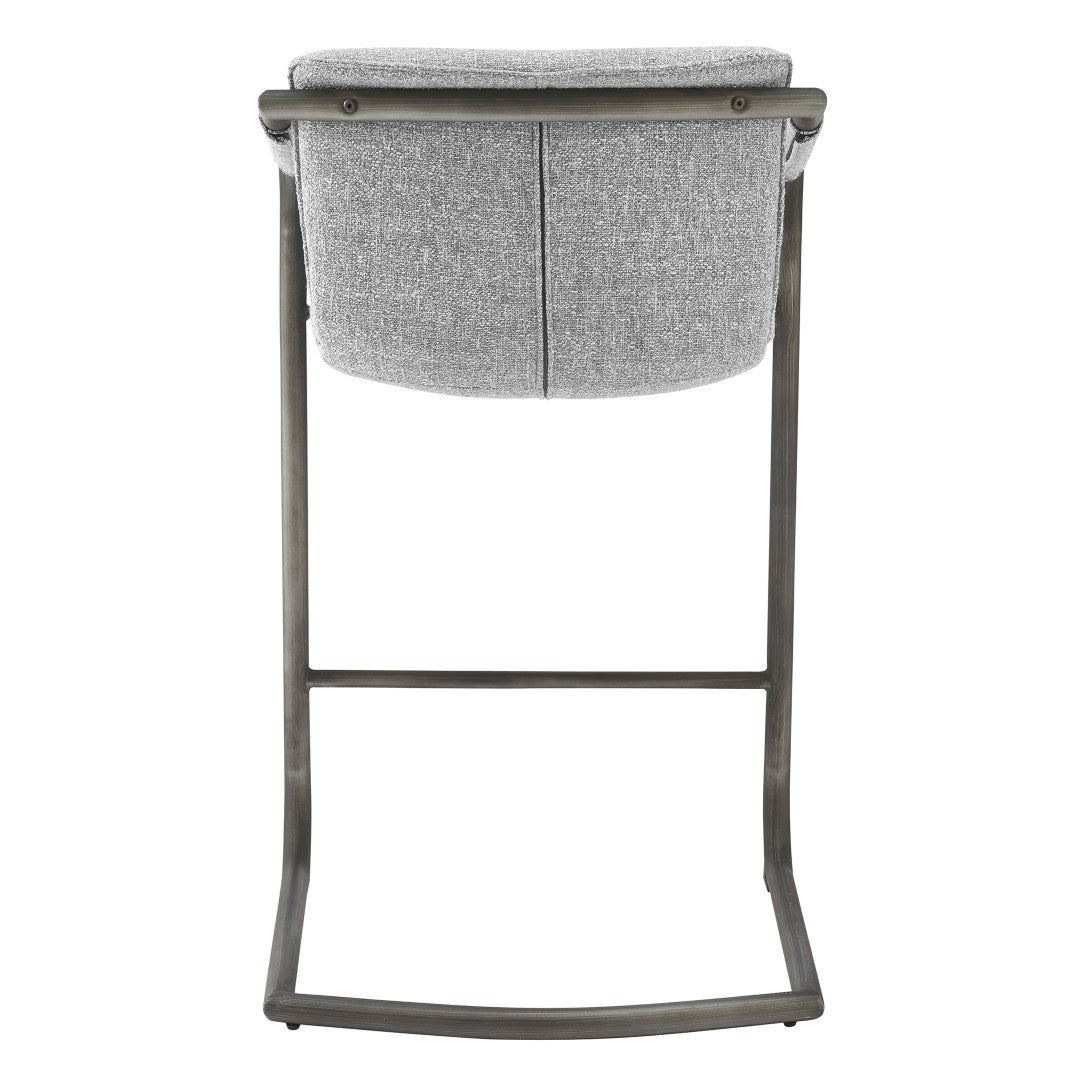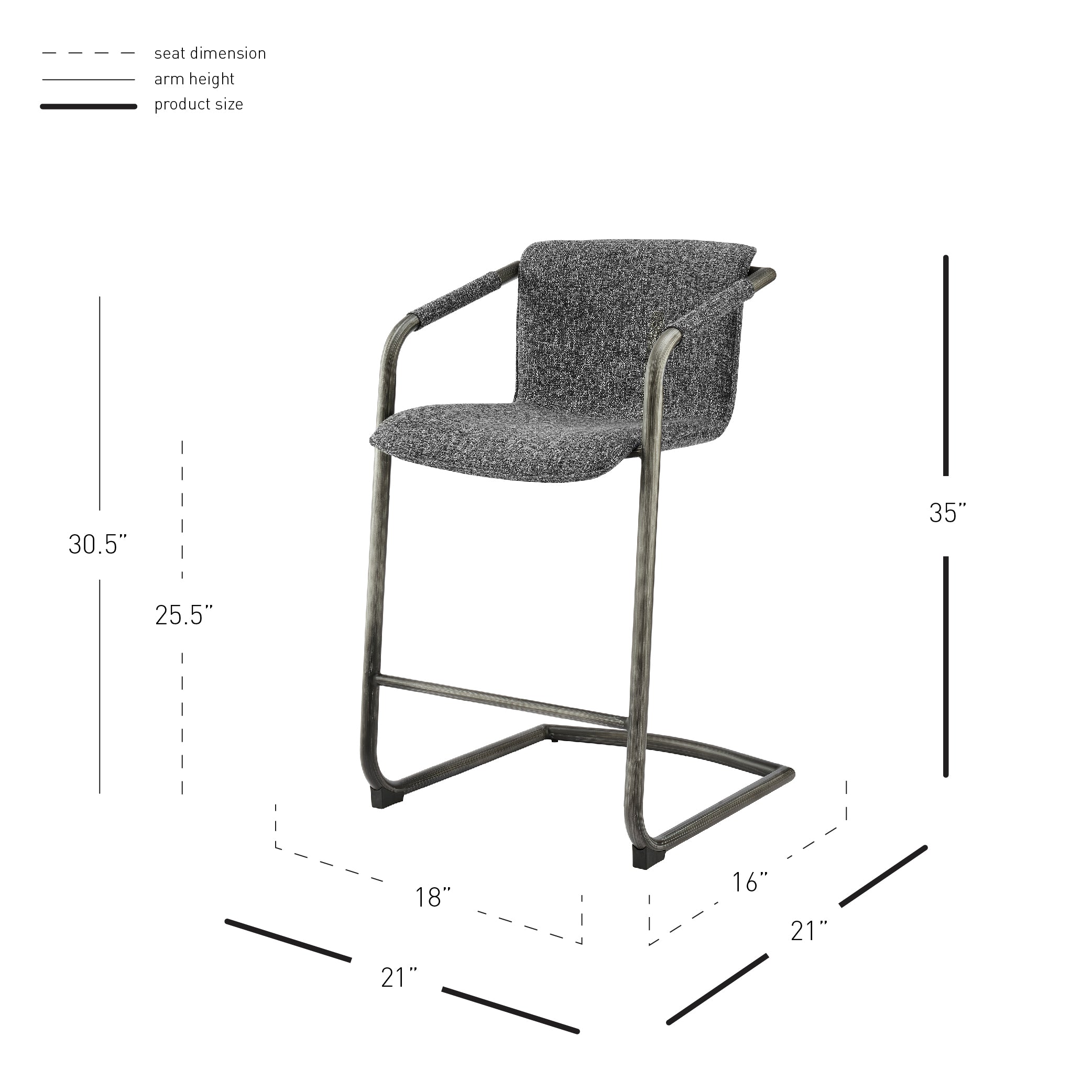 - Feature 1: INDUSTRIAL CHIC - Casual 35" h counter stool with stylish vintage hue upholstery and sleek wrapped arm detail on modern cantilever legs. Foot bar is incorporated for sturdiness.