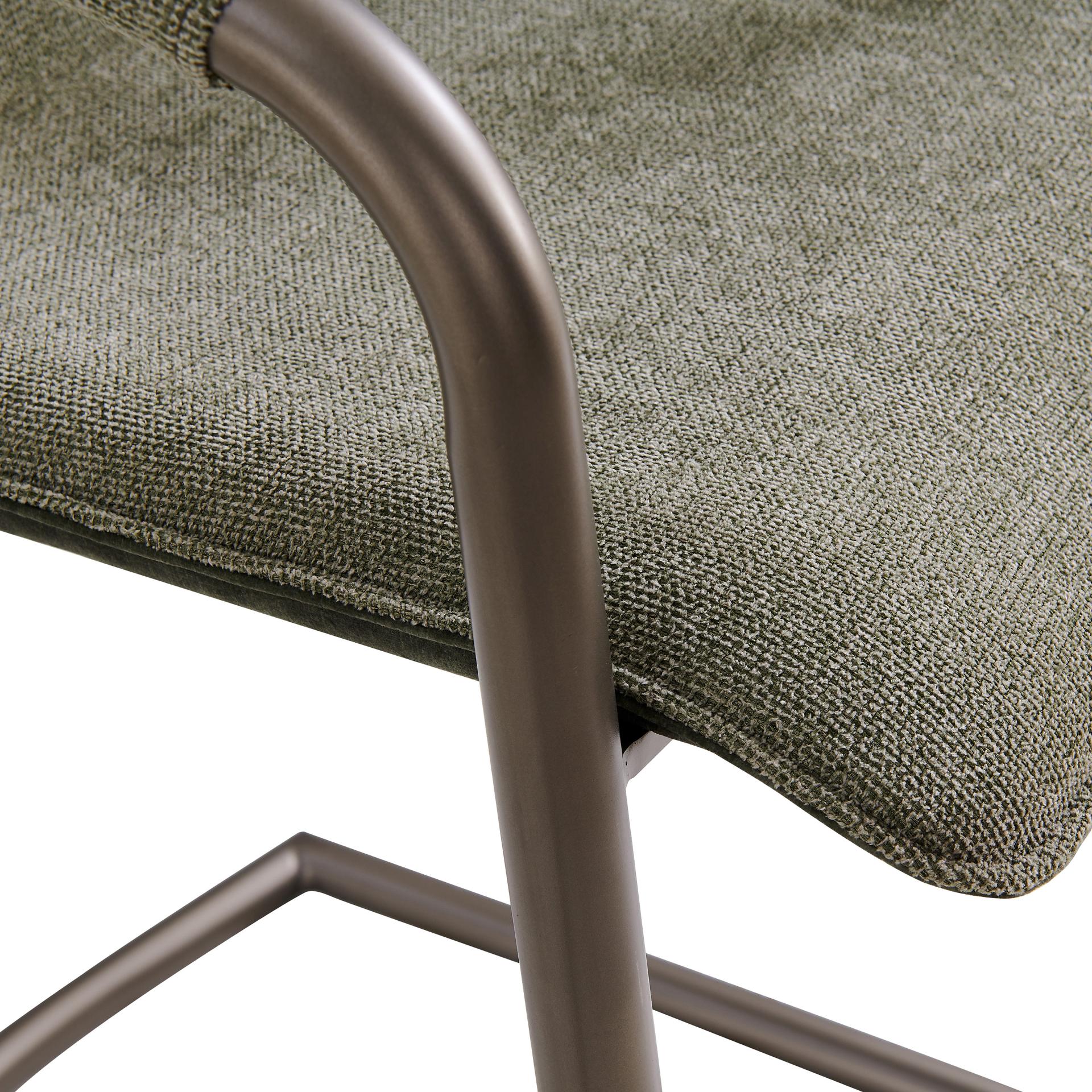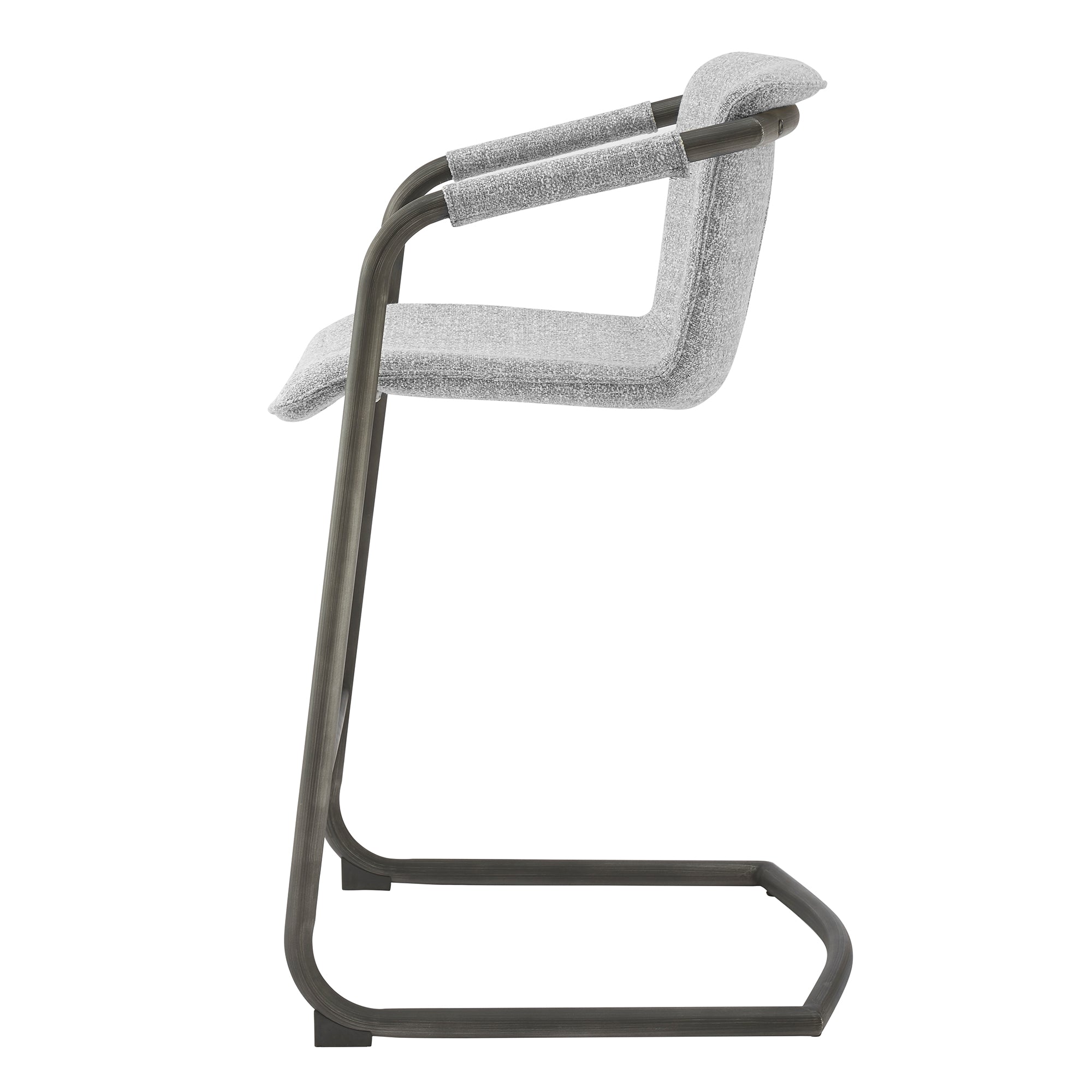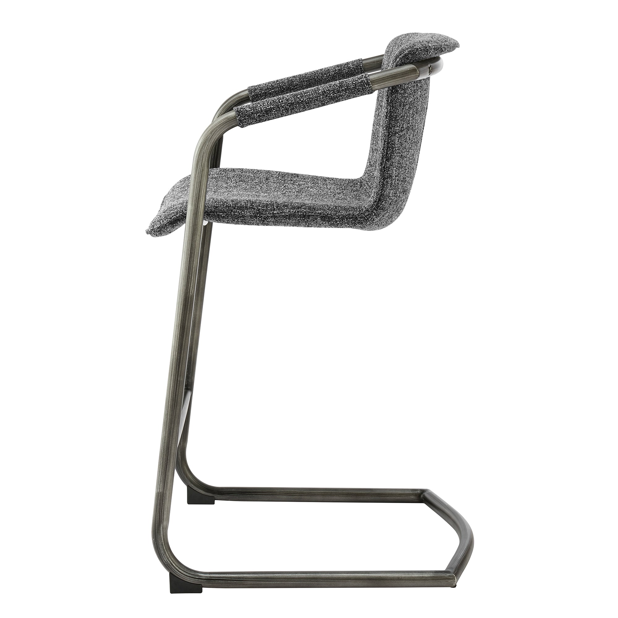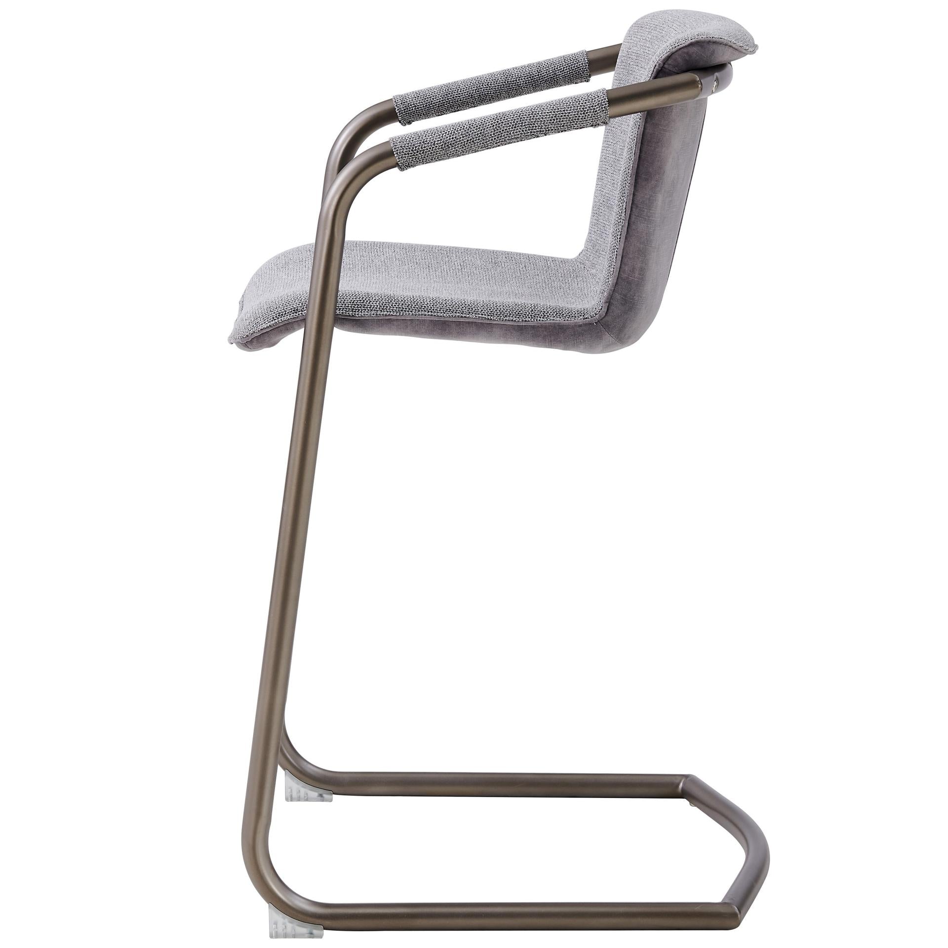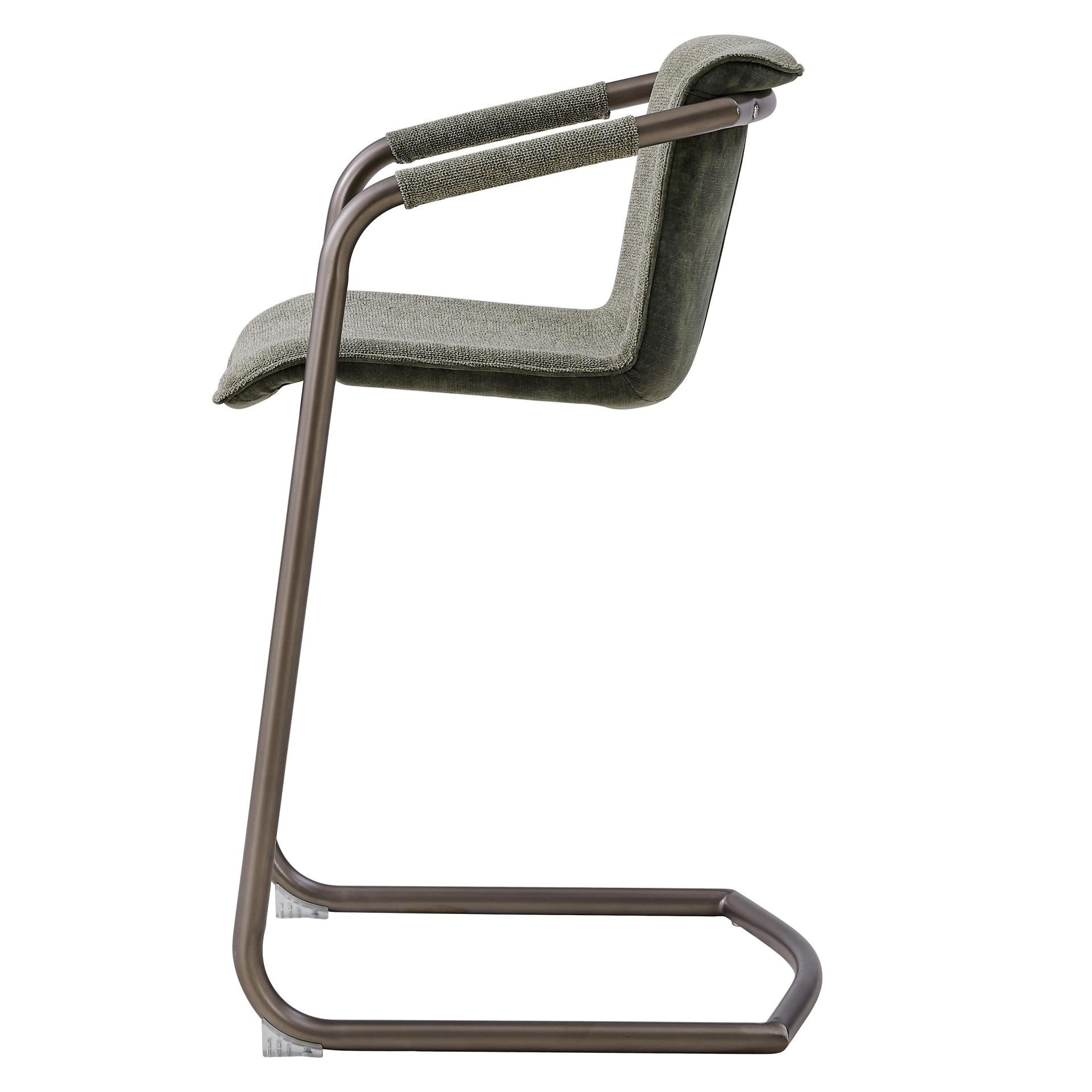 - Feature 1: INDUSTRIAL CHIC - Casual 35" h counter stool with stylish vintage hue upholstery and sleek wrapped arm detail on modern cantilever legs. Foot bar is incorporated for sturdiness.