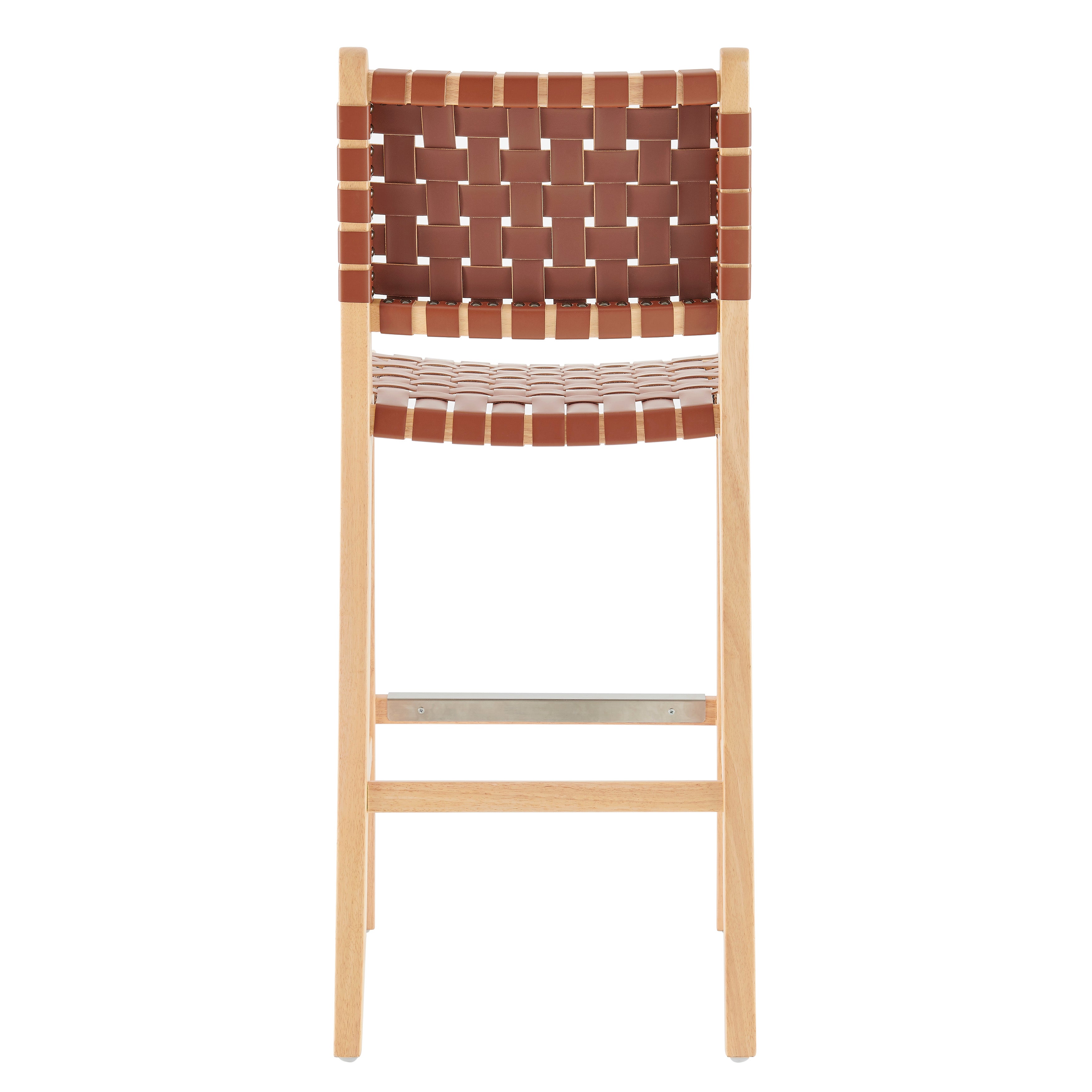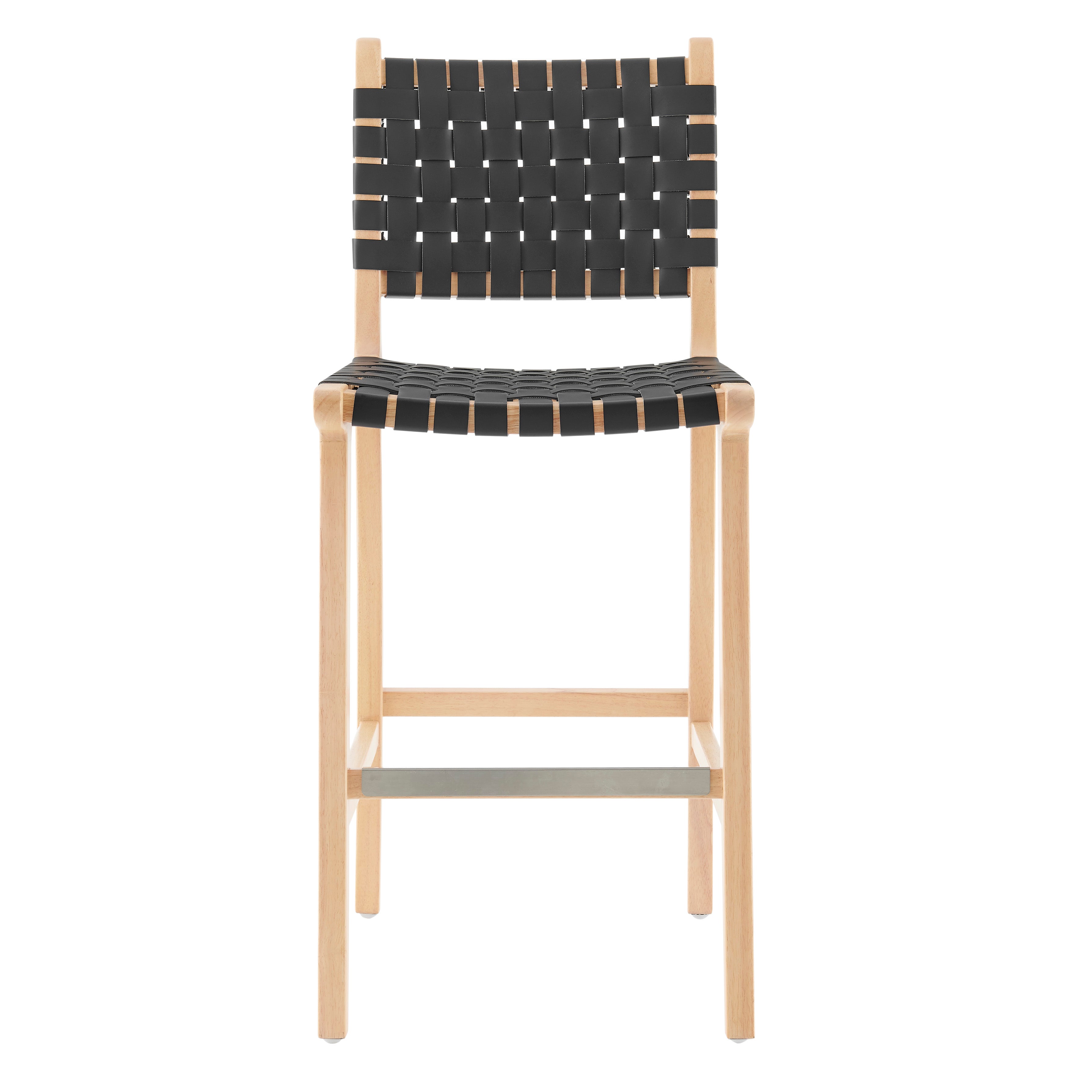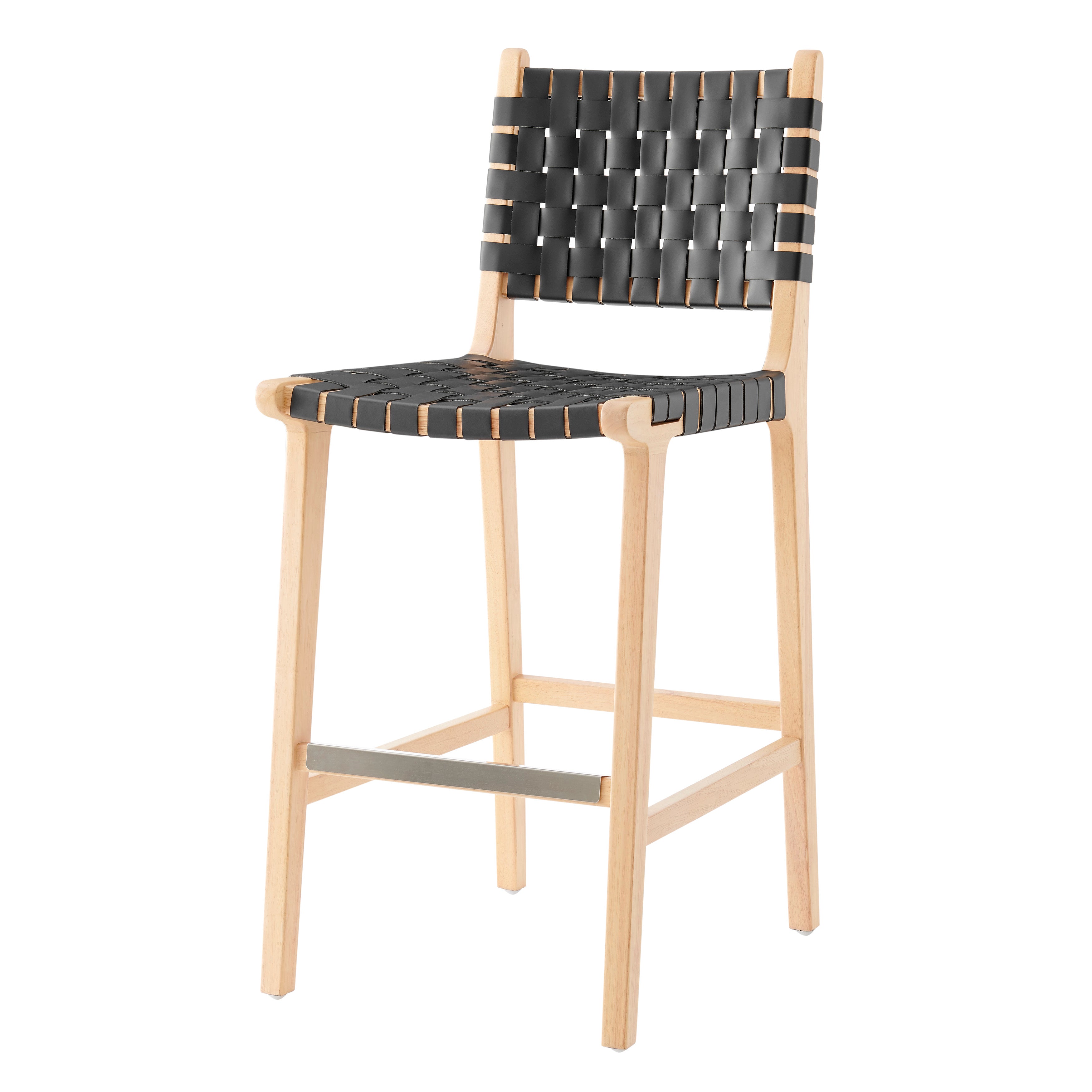 - The straps woven format in Marco stool collection gives it a new texture element and a clean, modern look. Foot stretcher and plastic glides are featured for comfort and stability. The legs are solid rubber wood.