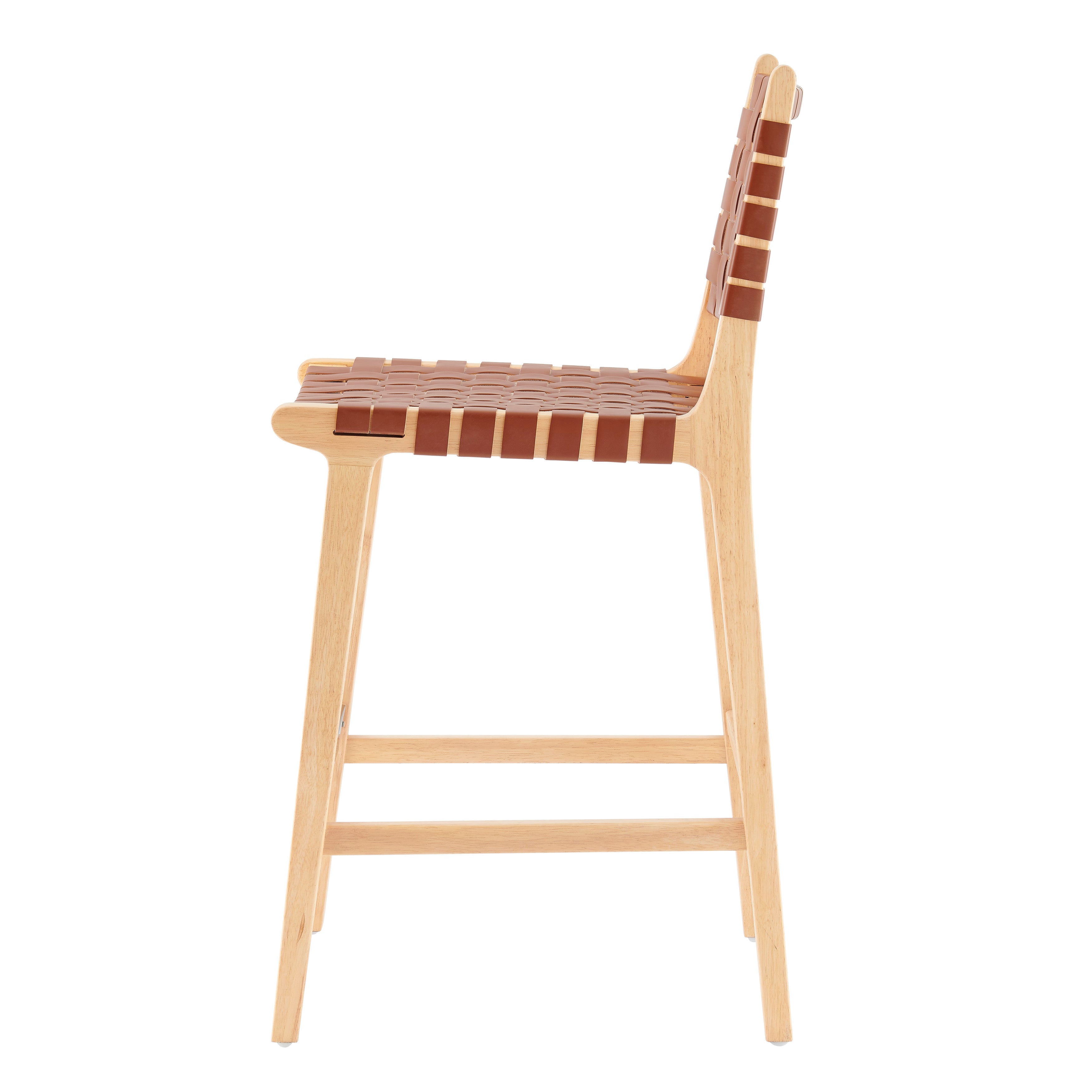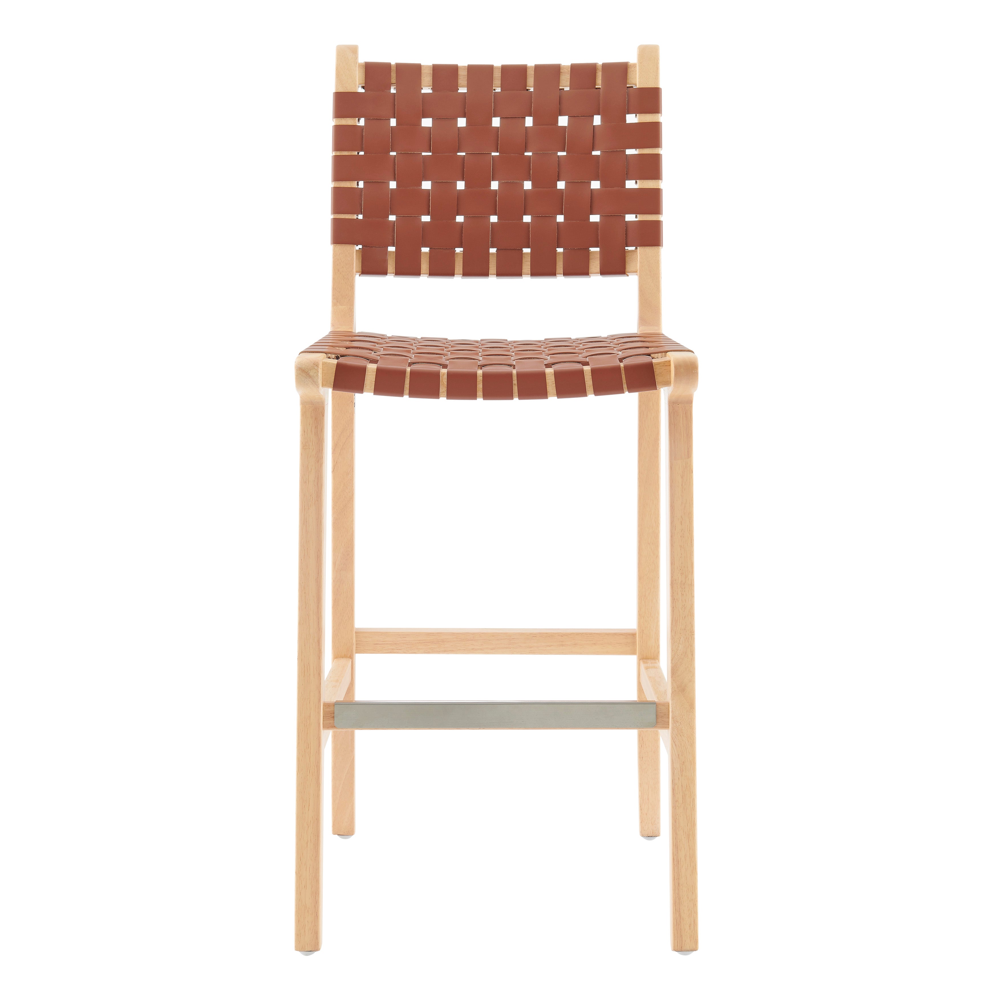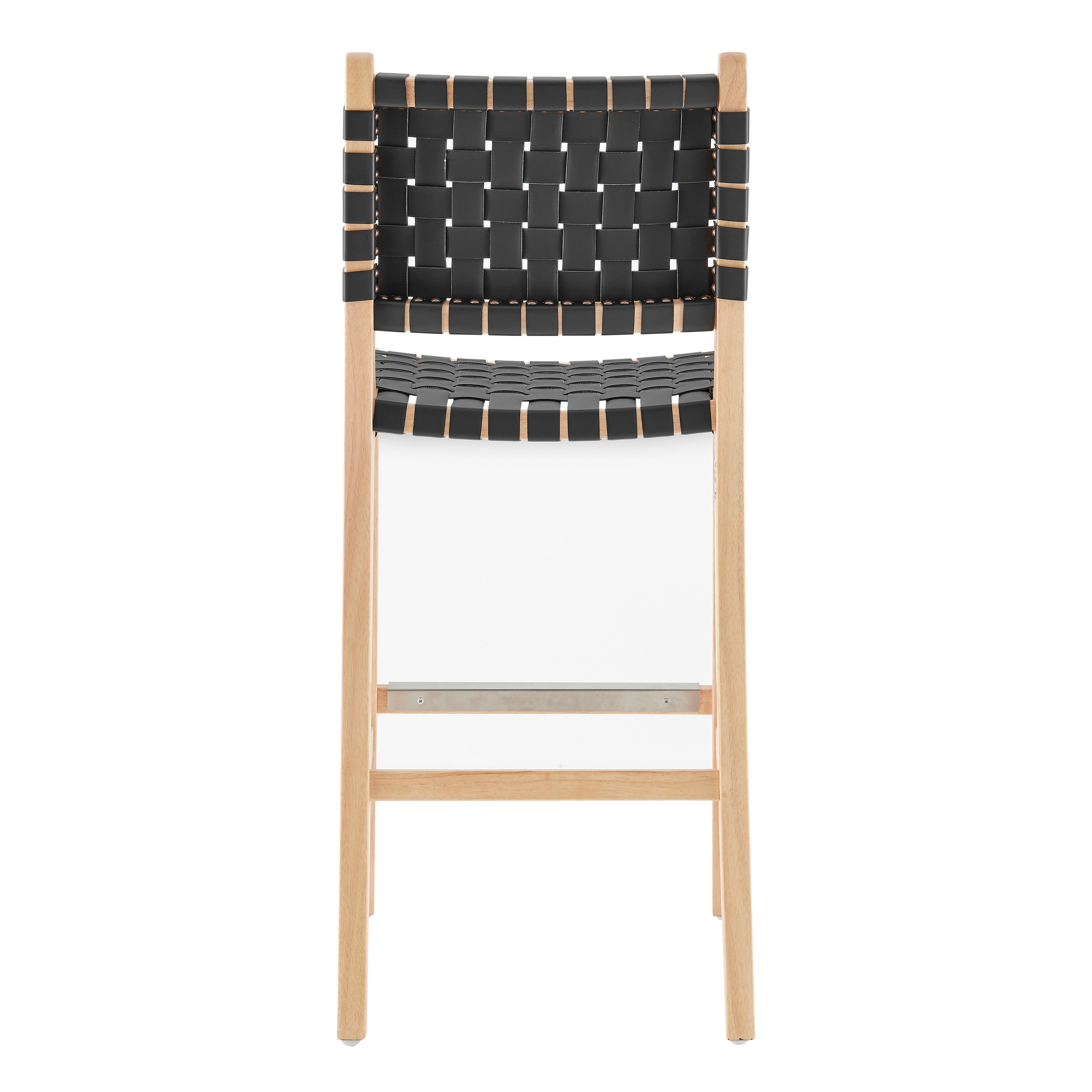 - The straps woven format in Marco stool collection gives it a new texture element and a clean, modern look. Foot stretcher and plastic glides are featured for comfort and stability. The legs are solid rubber wood.