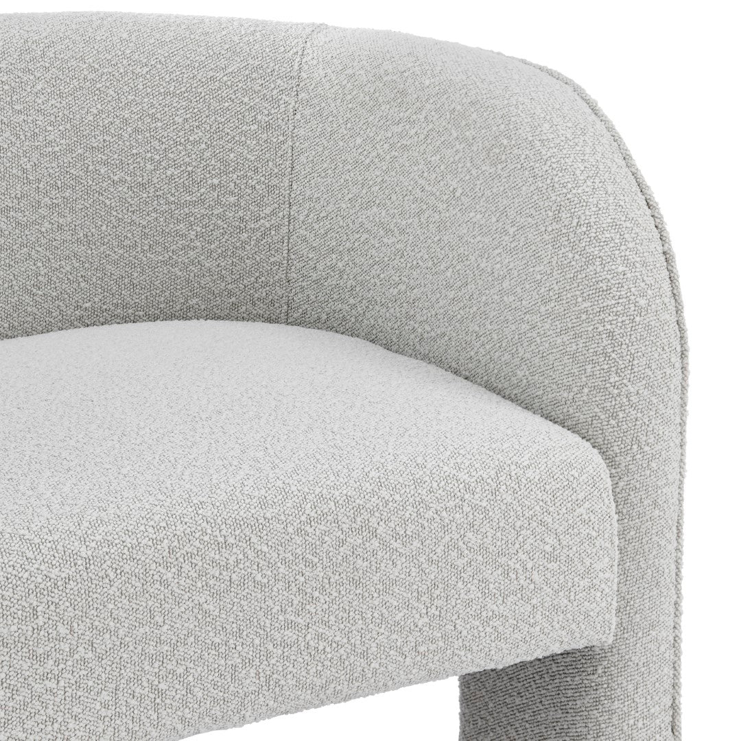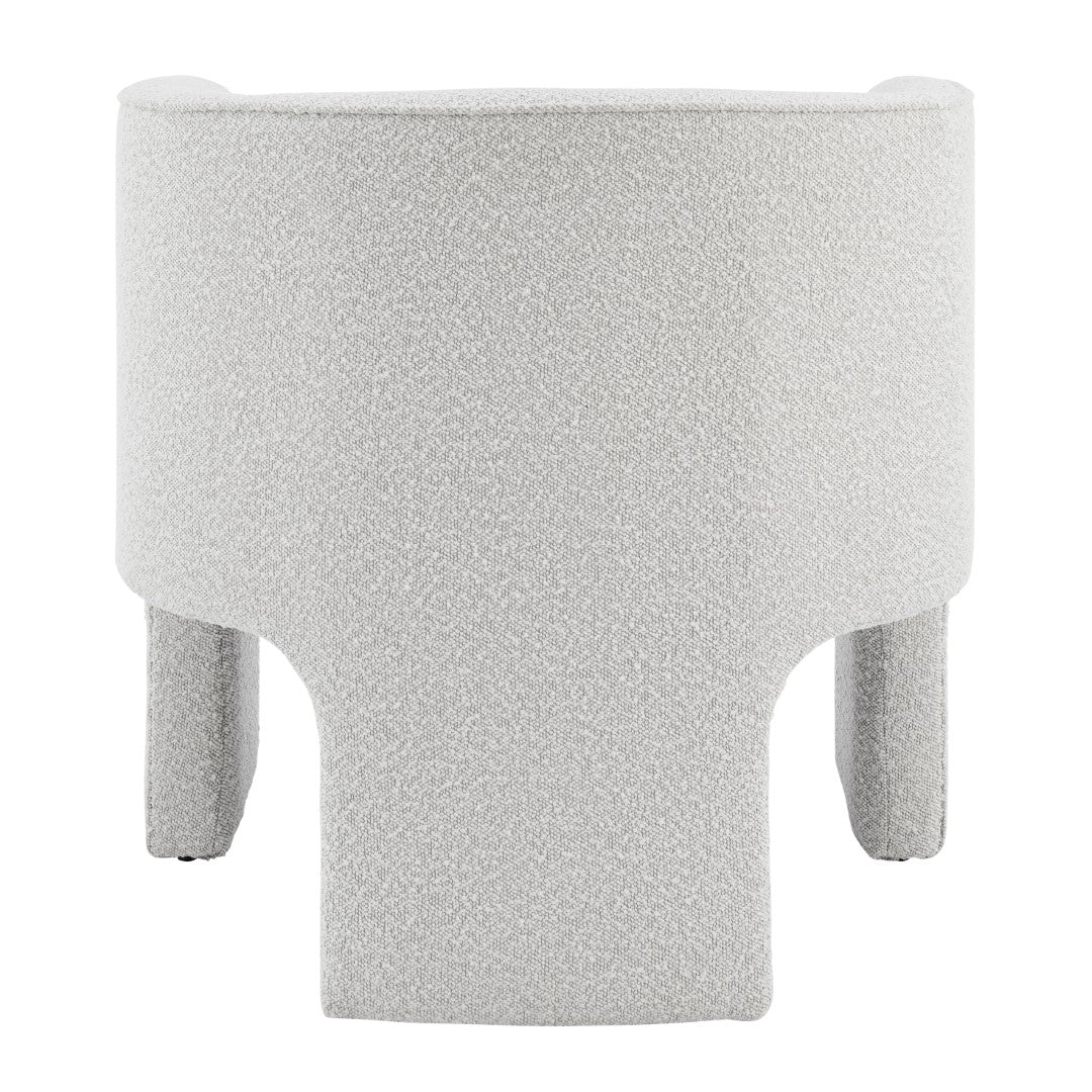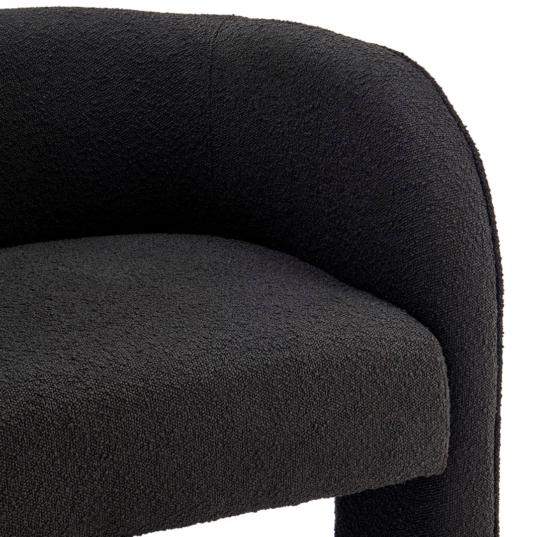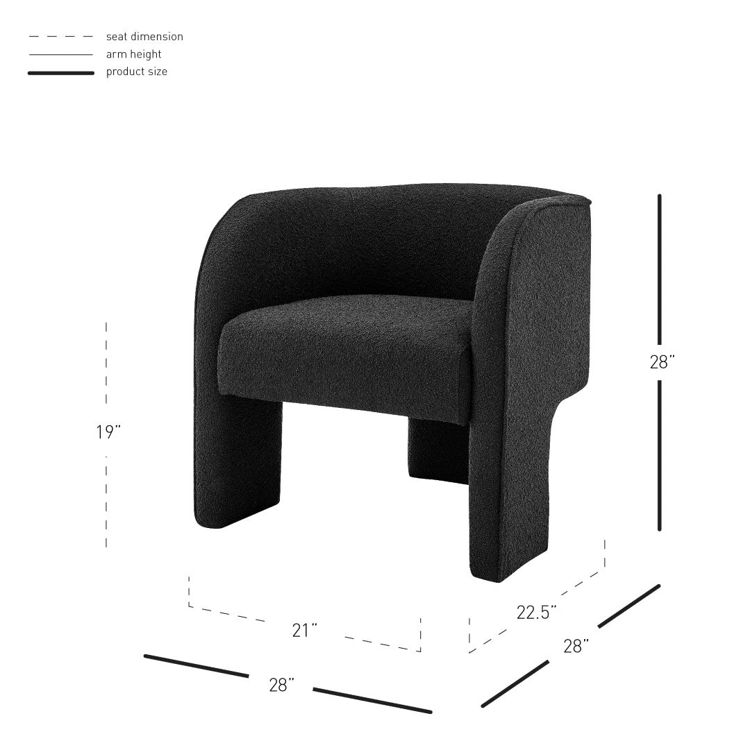 - Feature 1: Chic parlor accent chair in texture-rich boucle-like fabric that covers the entire frame for the latest modern trend. Featuring web suspension with high density foam cushion for all-day comfort. And, monochrome upholstery in Beige and Black with sculpted silhouette curate an elegant vibe to the space. Rubber feet for floor protection. Fixed cushion.