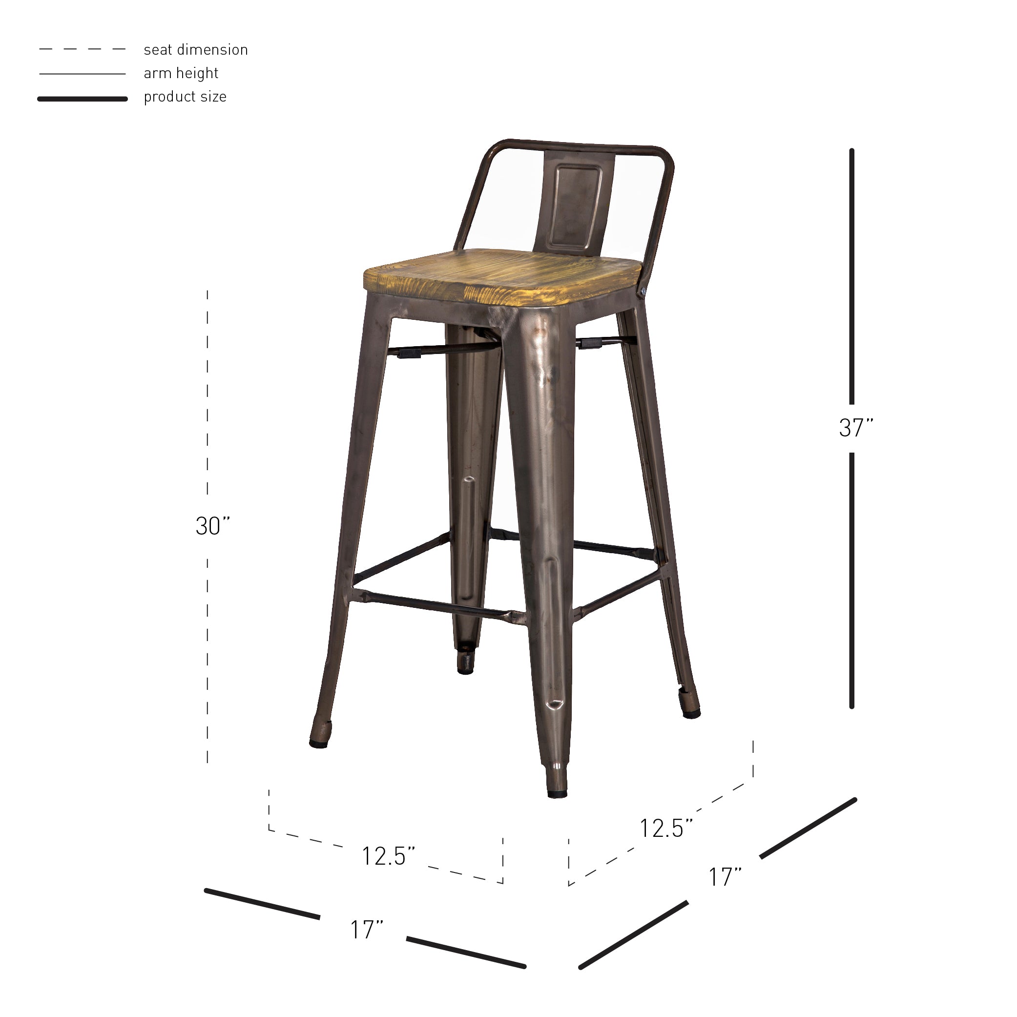 - Feature 5: Product measurement is taken from the highest point and widest part of the item. Dimensions: 17.00"w 17.00"d 37.00"h. Seat Height: 30”h. Seat Dimensions: 12.5” x 12.5”. Maximum bearing weight: 250 lbs.