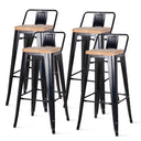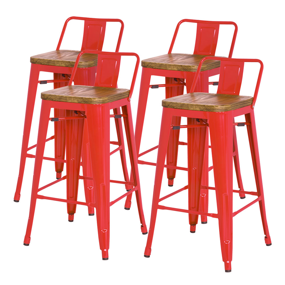 - Feature 1: Popular 30" bistro and café style metal bar stool with Pine Wood seat. Featuring X-brace seat support and stretcher foot rest bar for stability and sturdiness, rubber feet on all legs for slipping and floor scratching prevention. Indoor use only.