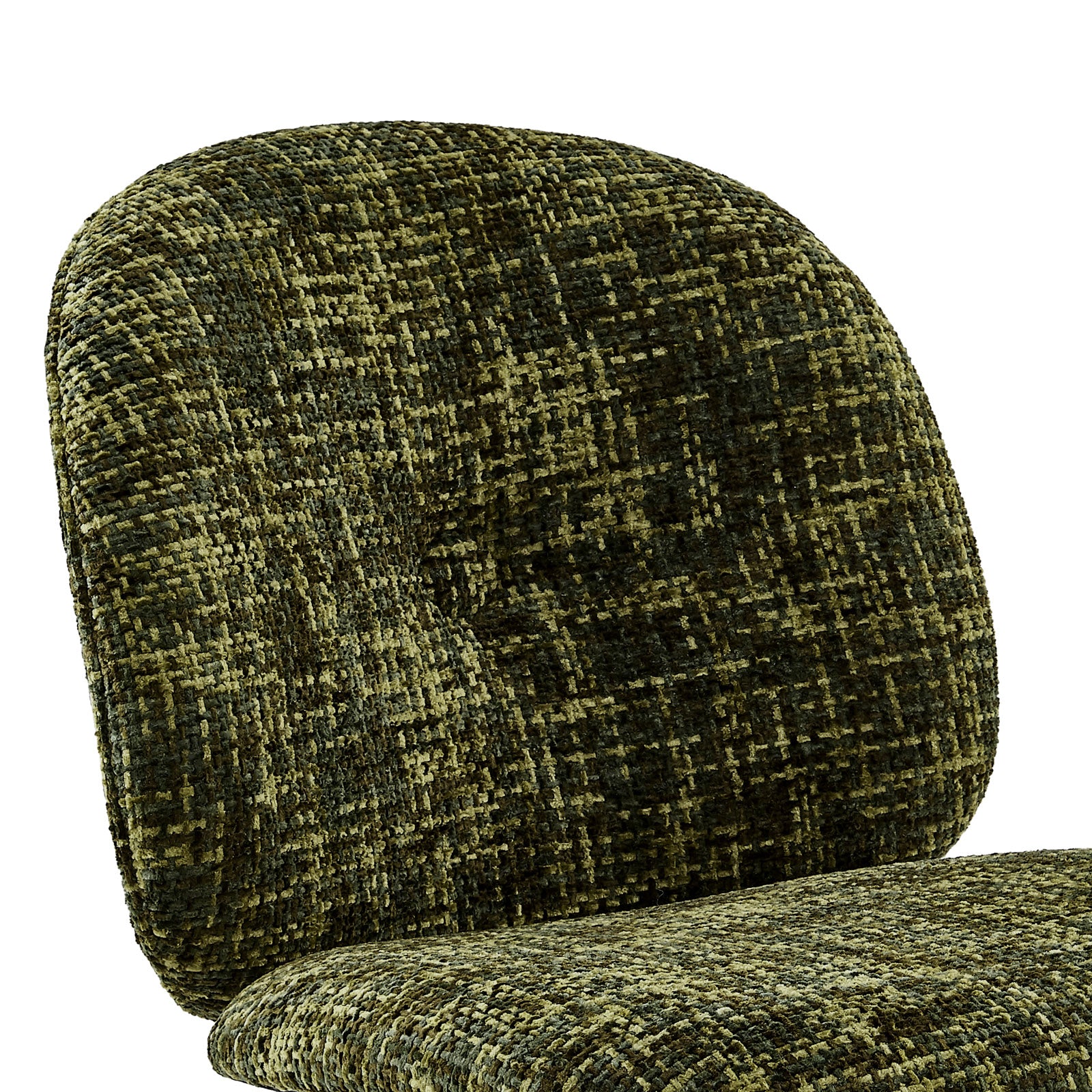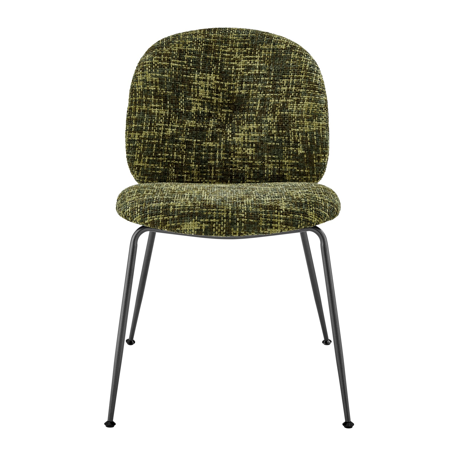 - Infuse charm into the space with this modern casual side/dining chair. Crafted of soft woven polyester fabric in monochrome green, it has a whimsical appeal. It’s also made from high-performance fabric, offering water-repellency, durability and easy maintenance for high-traffic areas. The metallic gunmetal powder coated steel legs ensure sturdiness. Comes with plastic gliders for stability and floor protection.