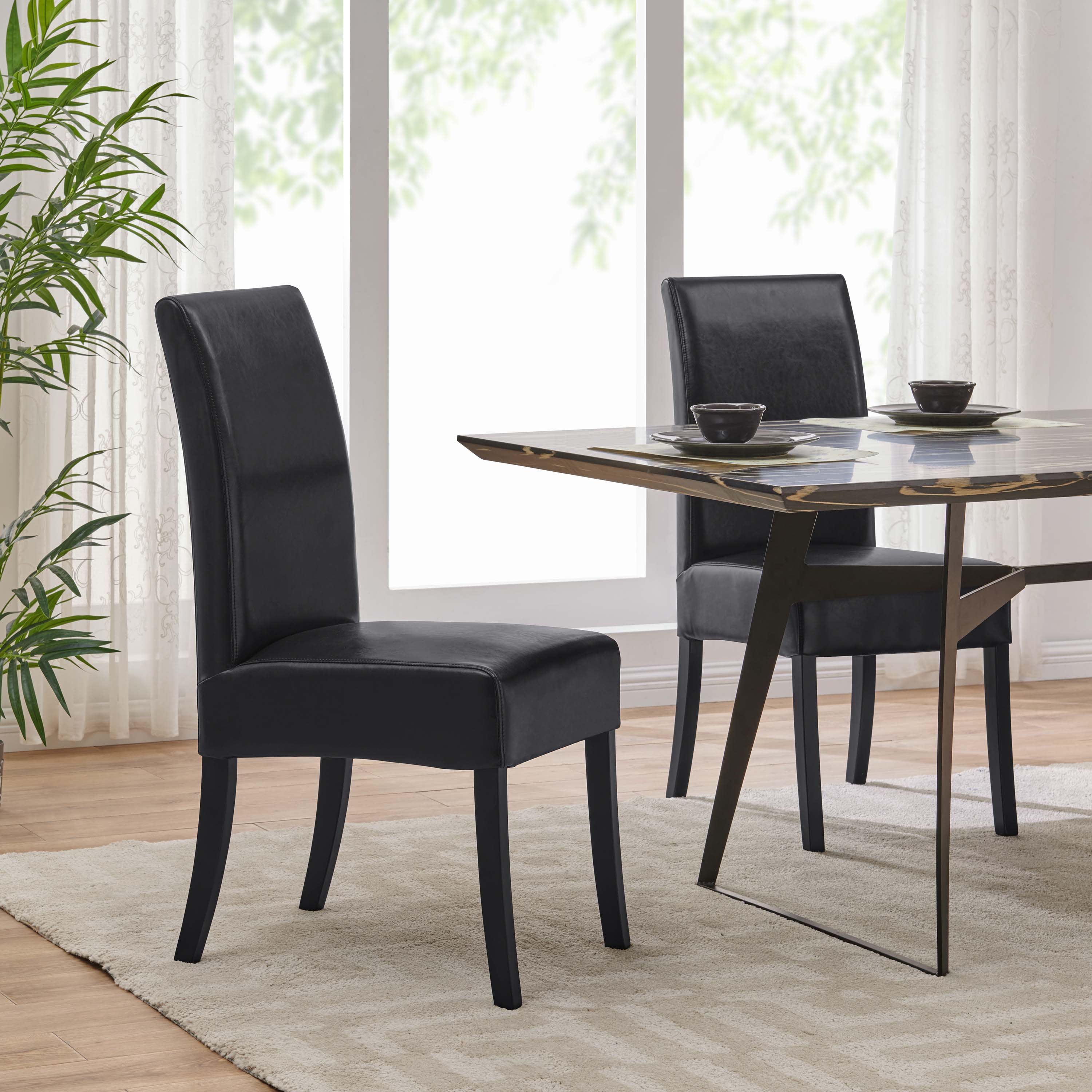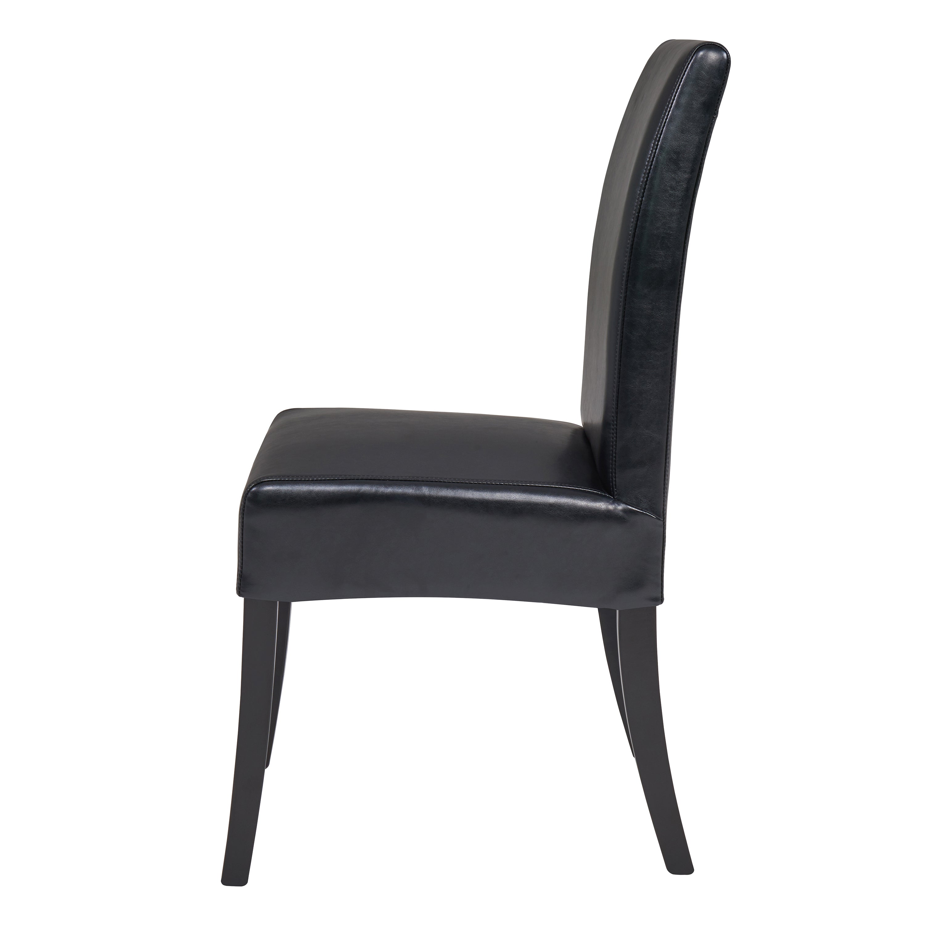 - Feature 1: Classic Parsons style chair is understated, yet a nice complementary for the dining room. Featuring bonded leather in 4 color options with black leg color, this chair is easily dressed-up or dressed-down depending on your occasions. Versatile for Transitional or Farmhouse Modern interior decor.