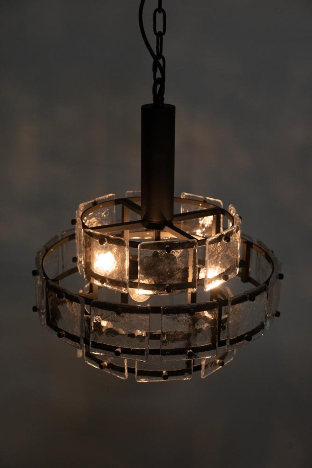 Elevate your space with the Bergdorf pendant: a refined, modern chandelier that pairs antiqued glass with a matte black iron frame for a timeless yet contemporary silhouette. Its layered three-tier glass shades diffuse warm light from four bulbs, creating an inviting ambiance ideal for dining areas, entryways, or living rooms.