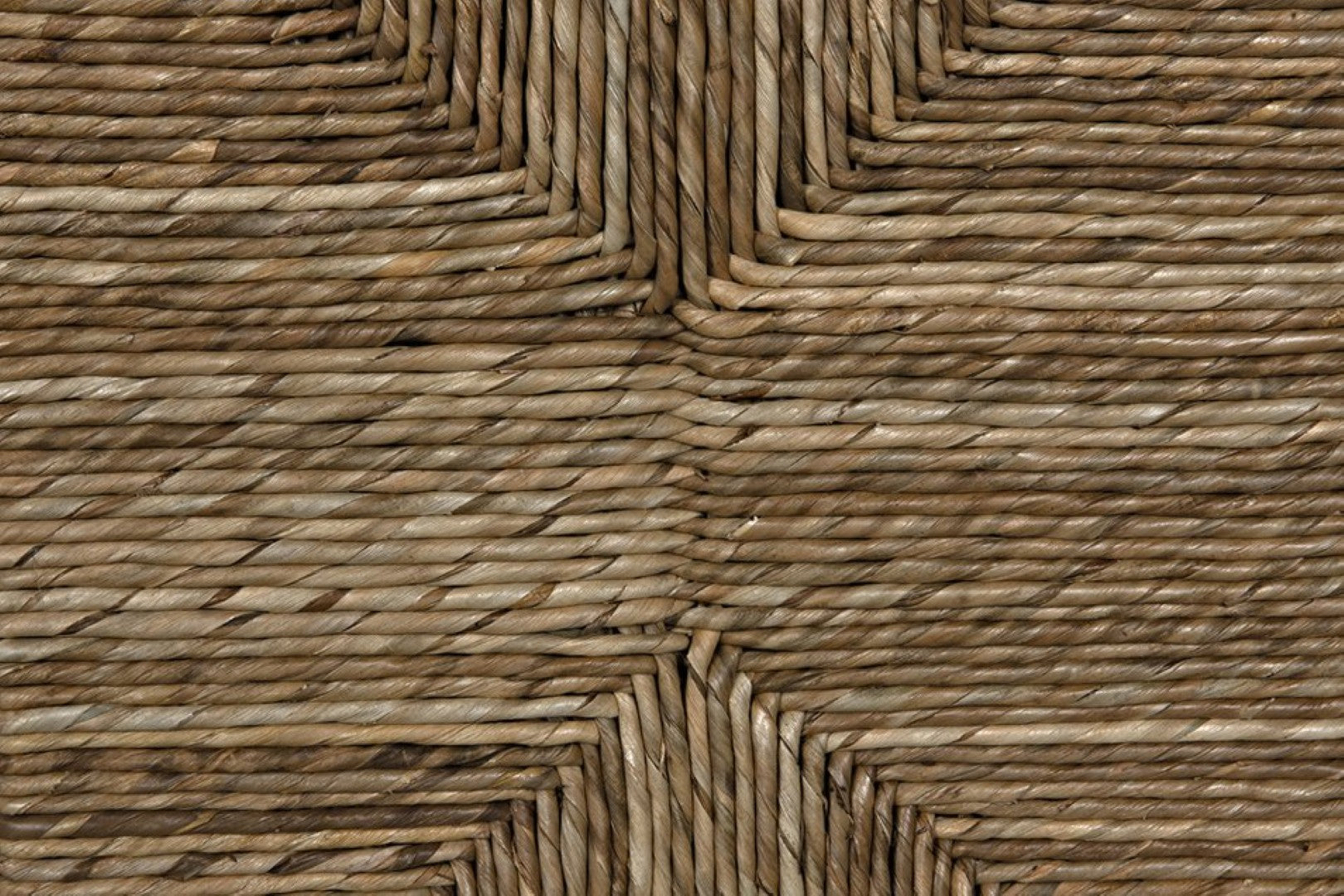 - Materials: Solid mahogany with rush (sea grass) and veneer accents for durability and visual contrast