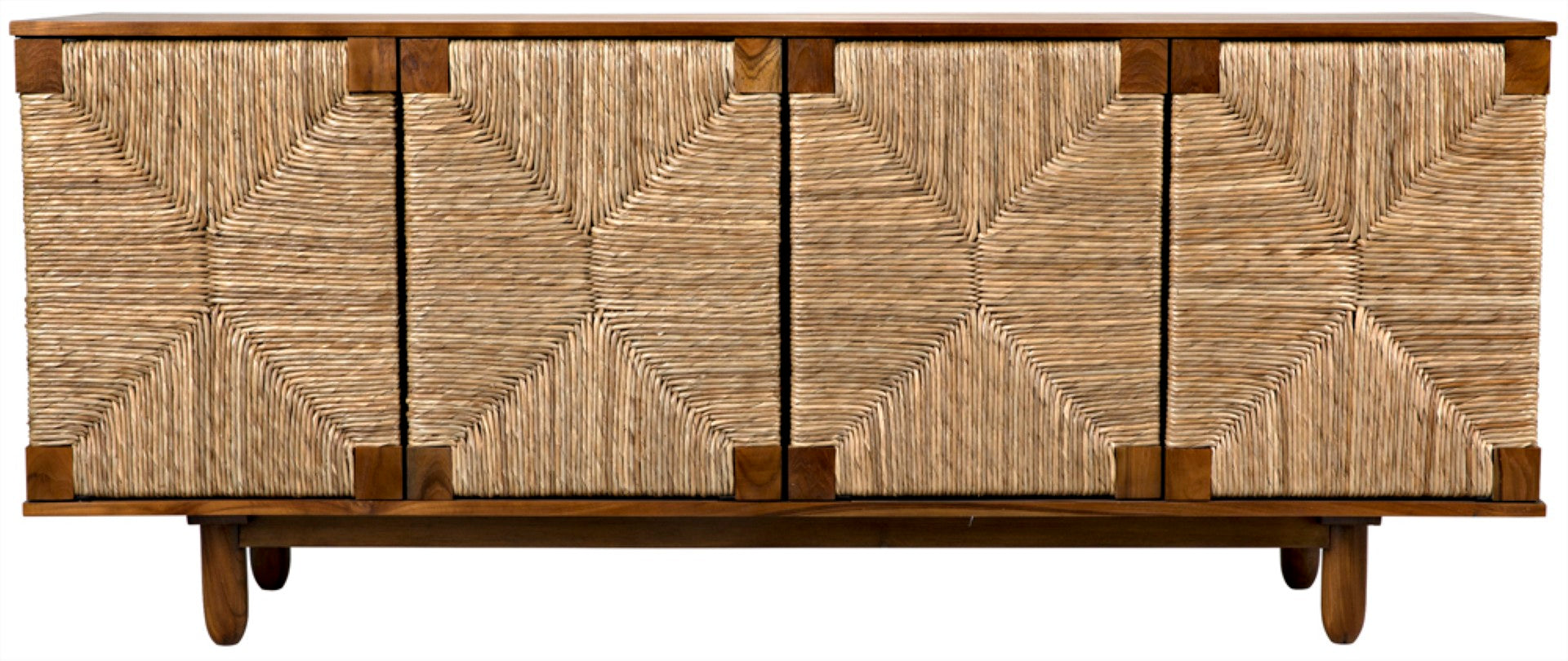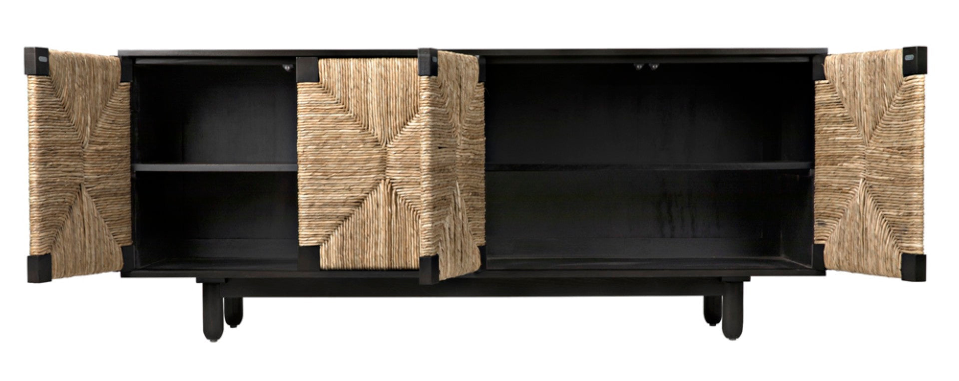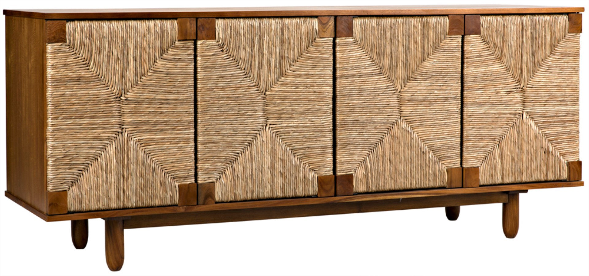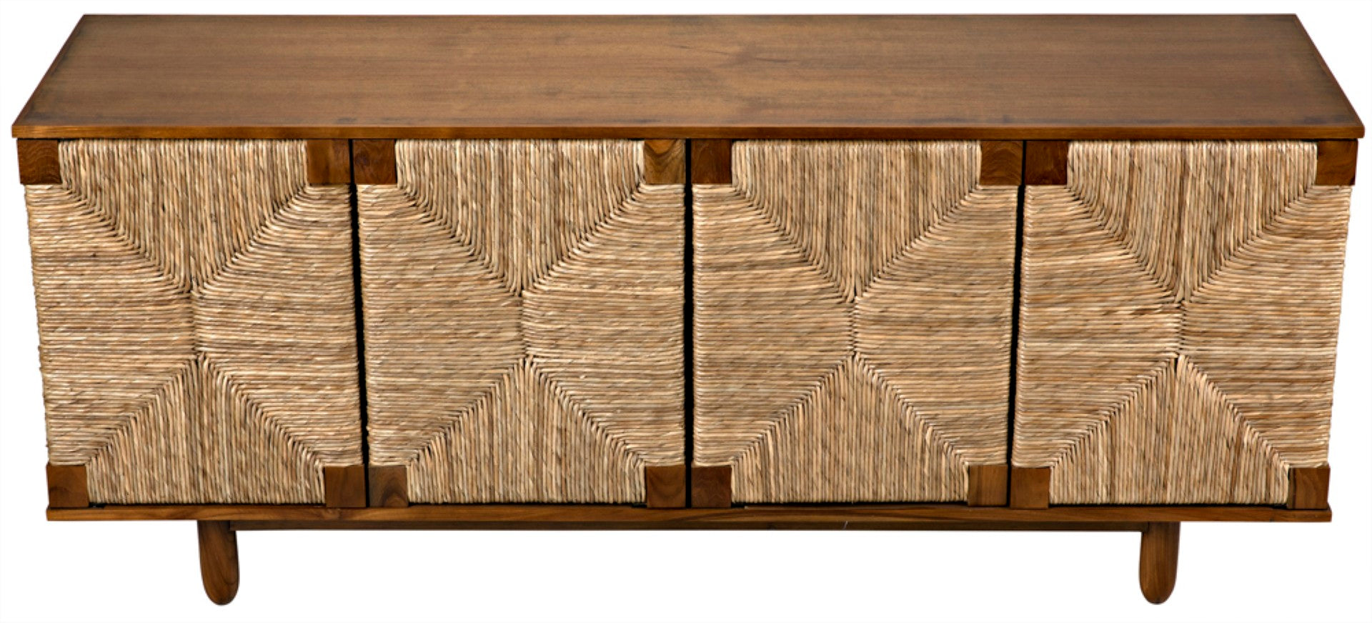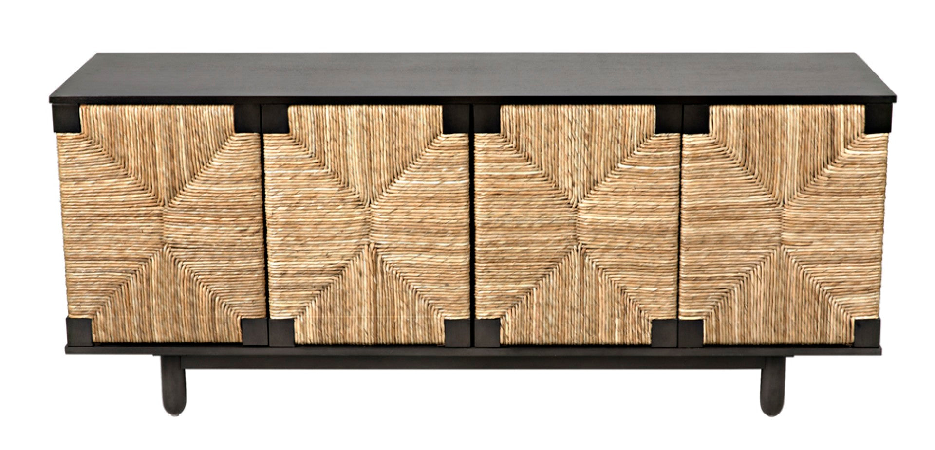 A refined blend of solid mahogany and natural sea grass gives this updated classic sideboard a fresh, coastal-meets-traditional appeal. Thoughtfully designed for both display and concealed storage, it offers a generous top surface for décor or serving, plus roomy lower compartments to keep essentials organized and accessible.