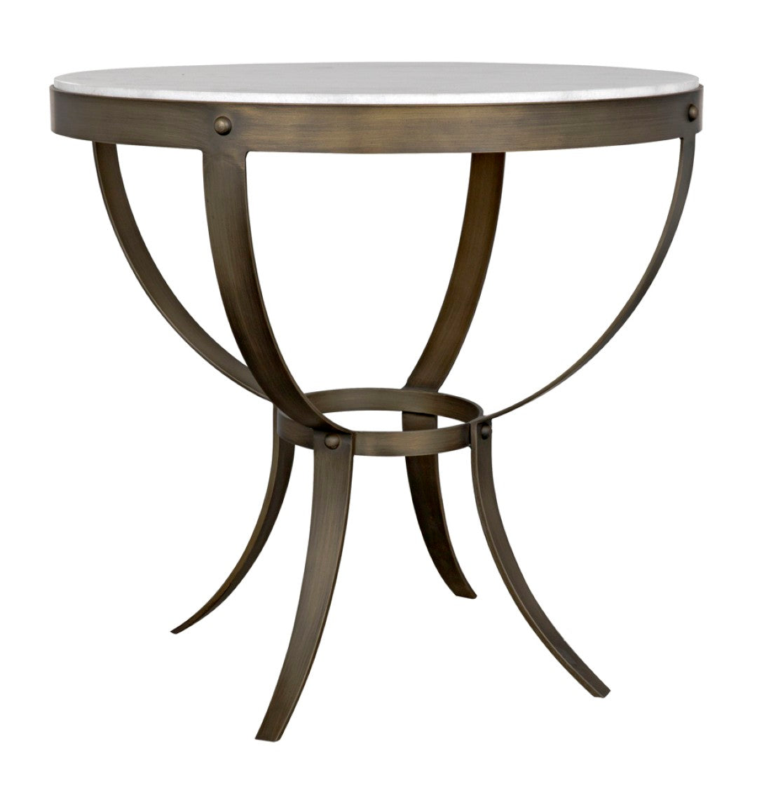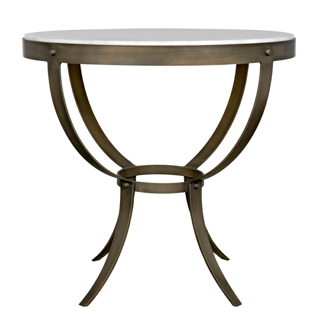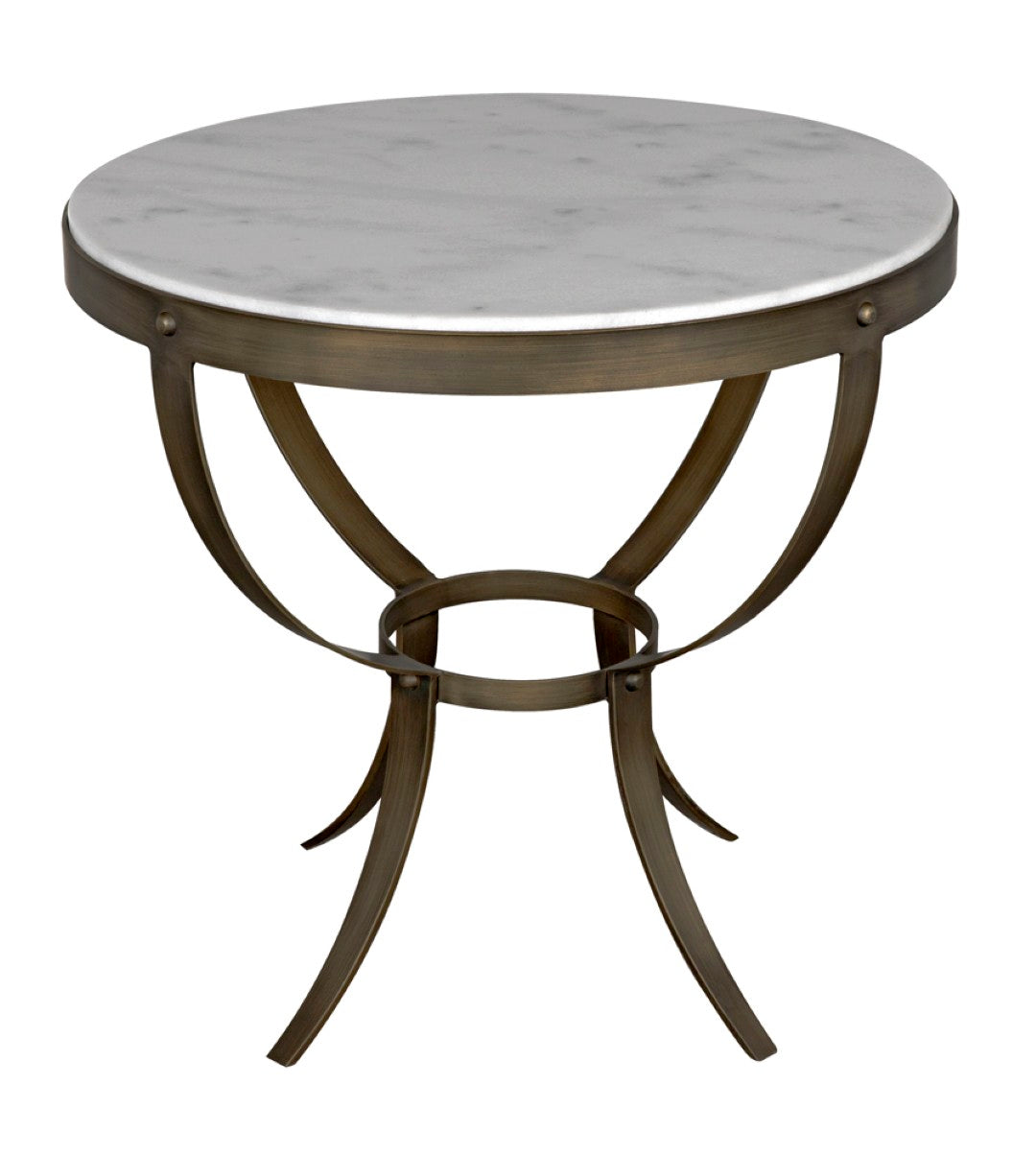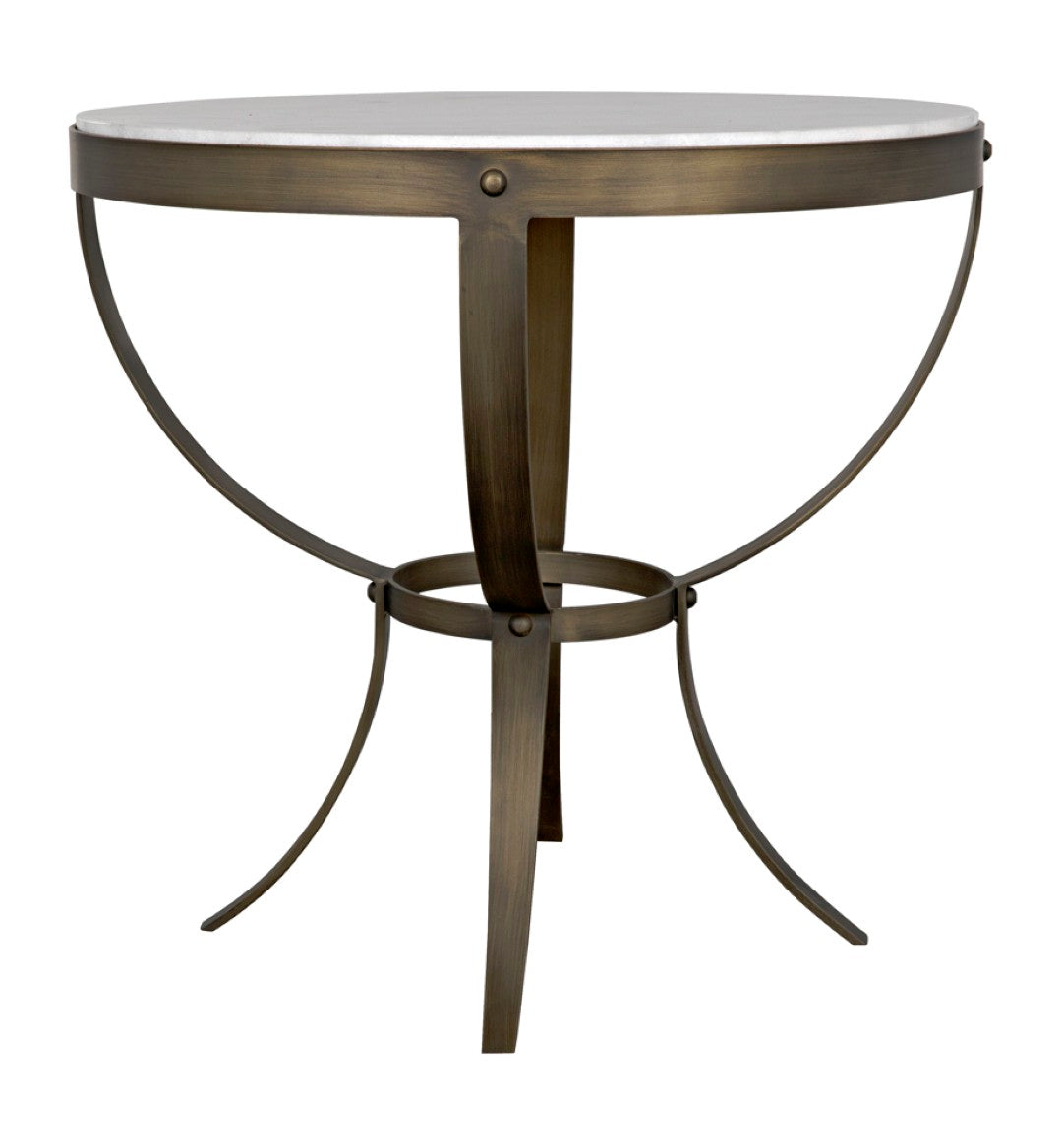 Elevate your living space with the Byron Side Table — a refined blend of industrial minimalism and natural elegance. The clean, aged brass-finished iron base supports a circular Bianco Crown marble top, creating a striking focal point that complements both modern and classic interiors. Each piece showcases natural stone variation, ensuring a unique table with timeless appeal and durable construction.