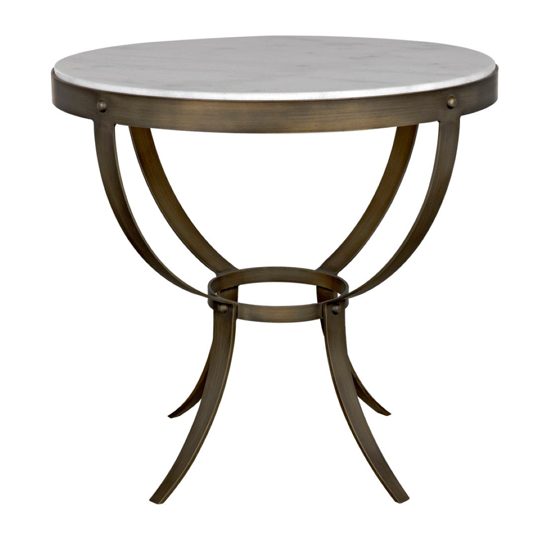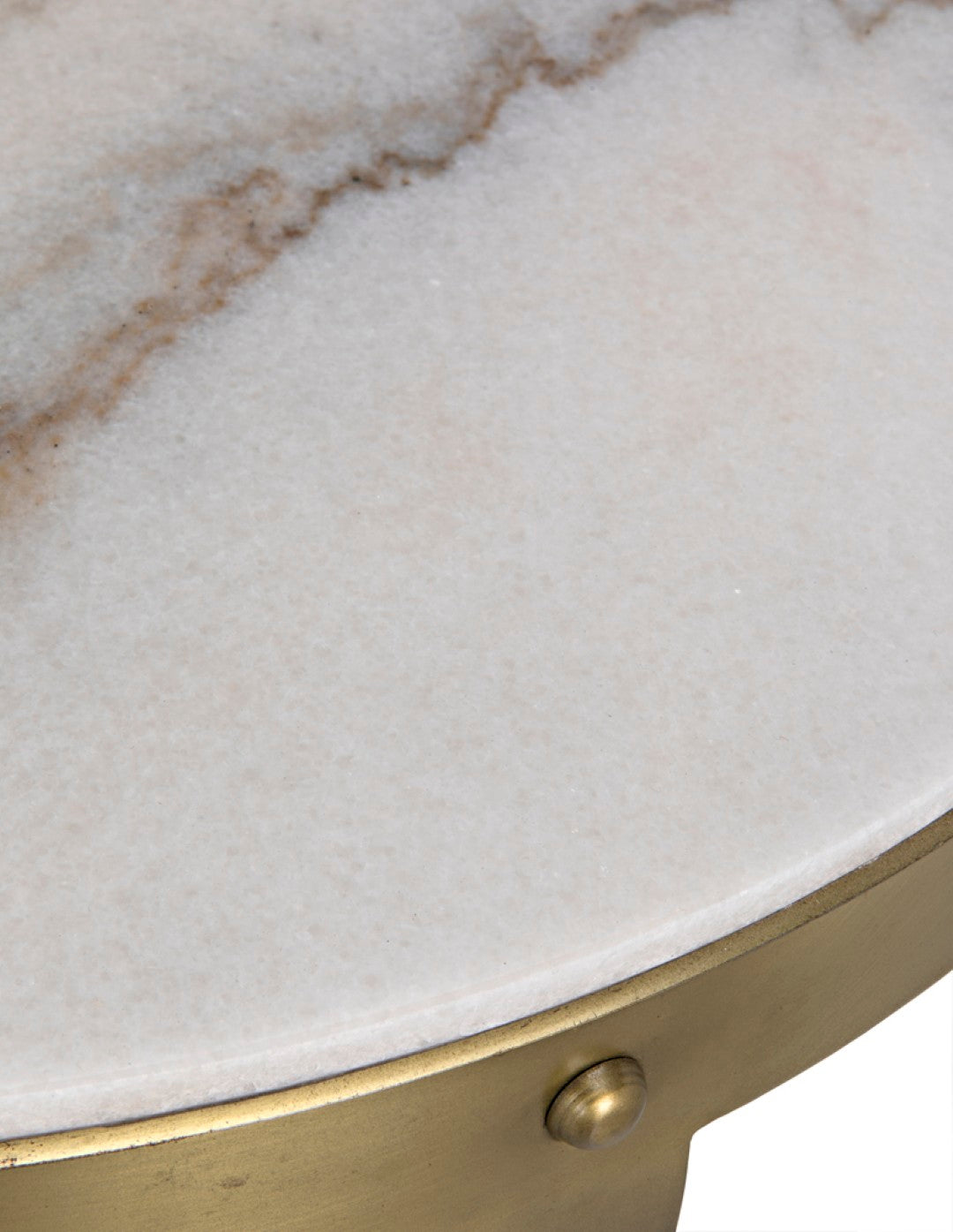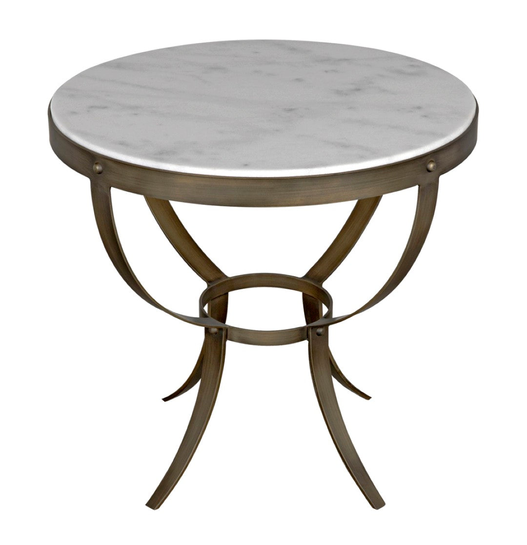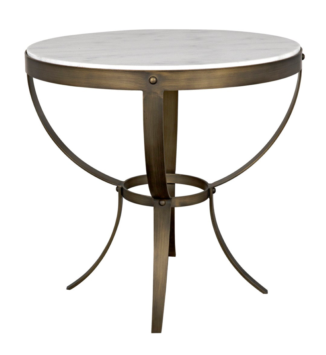 Elevate your living space with the Byron Side Table — a refined blend of industrial minimalism and natural elegance. The clean, aged brass-finished iron base supports a circular Bianco Crown marble top, creating a striking focal point that complements both modern and classic interiors. Each piece showcases natural stone variation, ensuring a unique table with timeless appeal and durable construction.