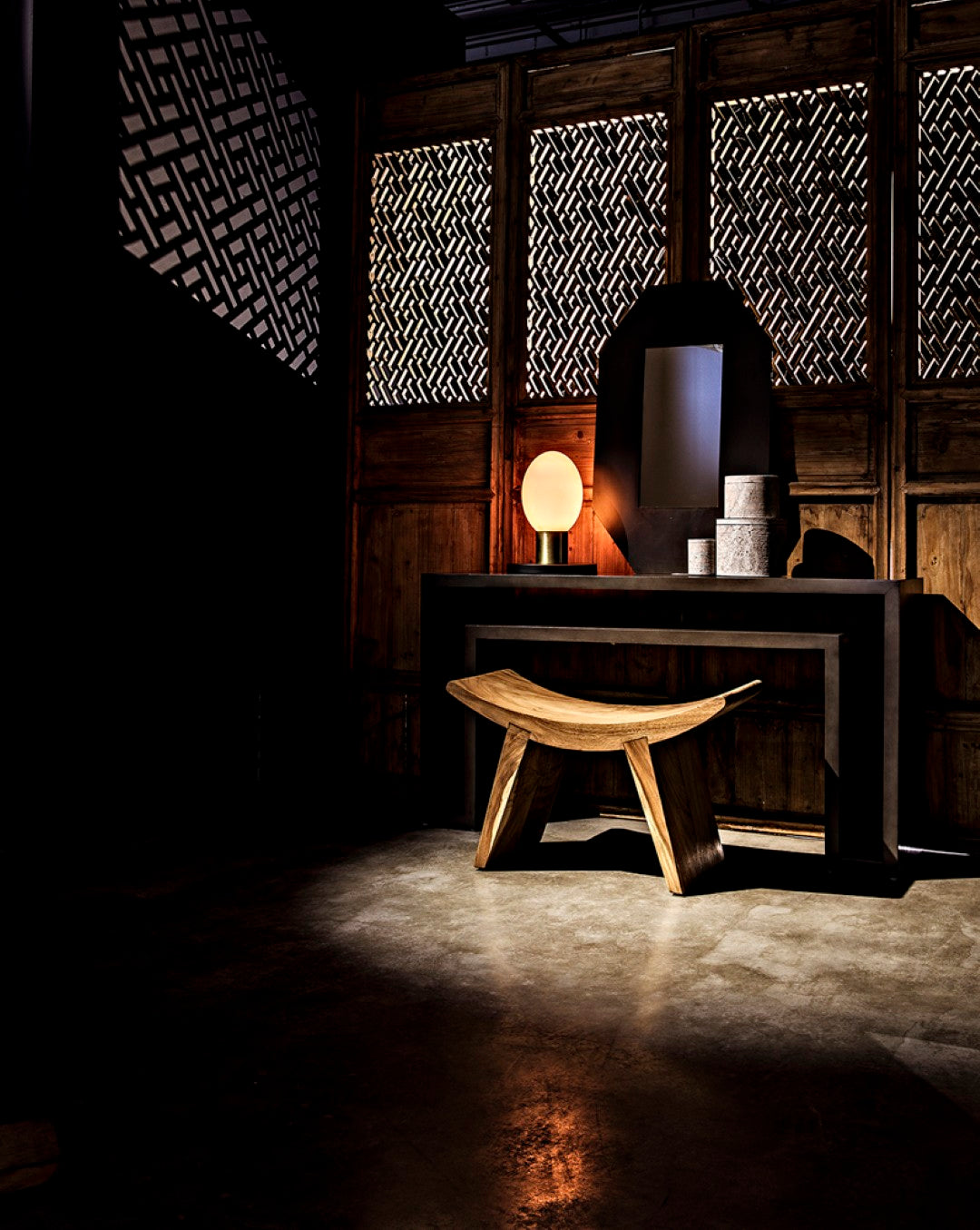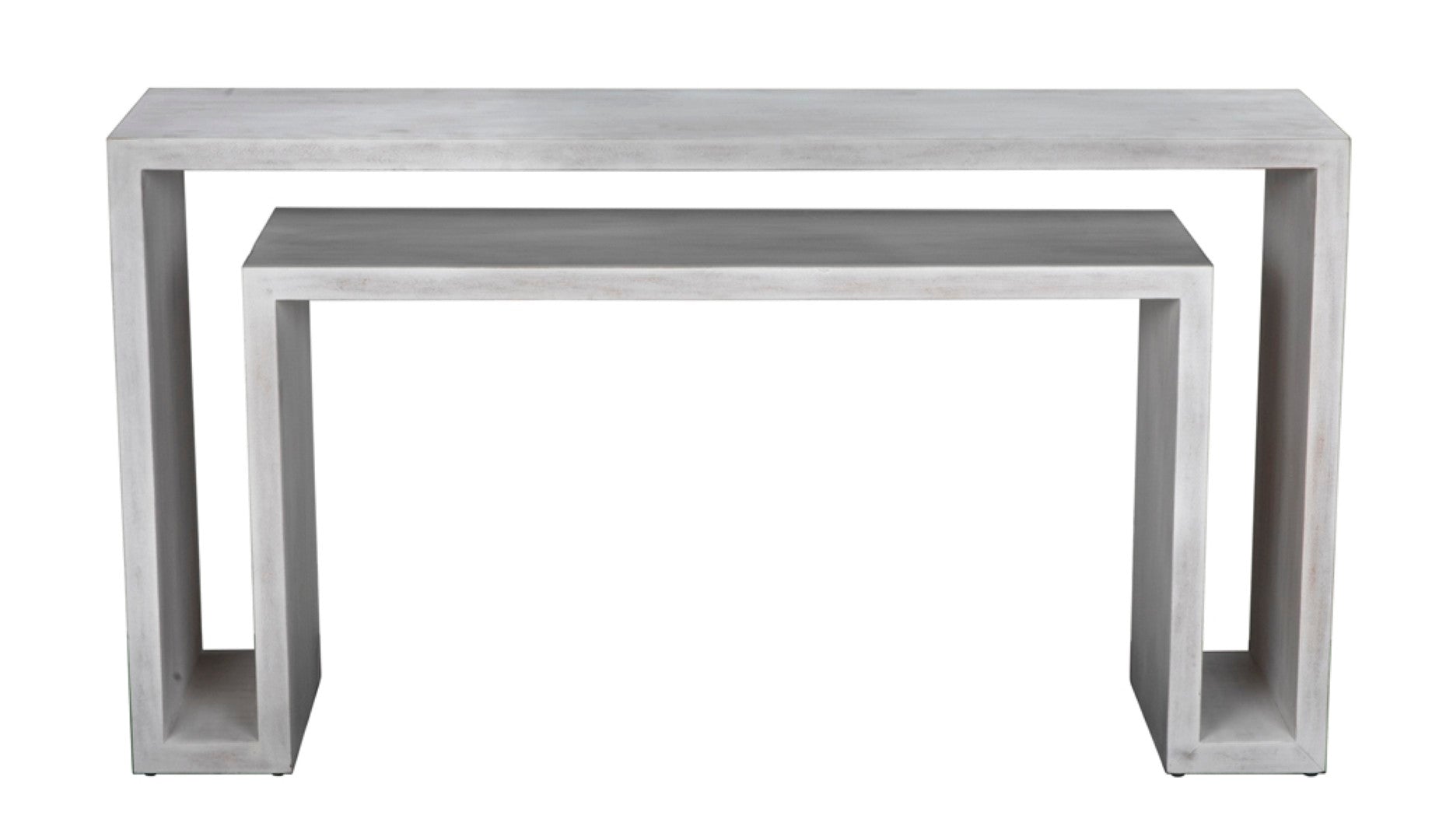 Contemporary and artfully crafted, this pale-finished console brings refined edge and handcrafted warmth to entryways, hallways, or behind sofas. Made by master artisans from solid mahogany with veneer accents, it blends durability with sculptural simplicity to elevate modern interiors.