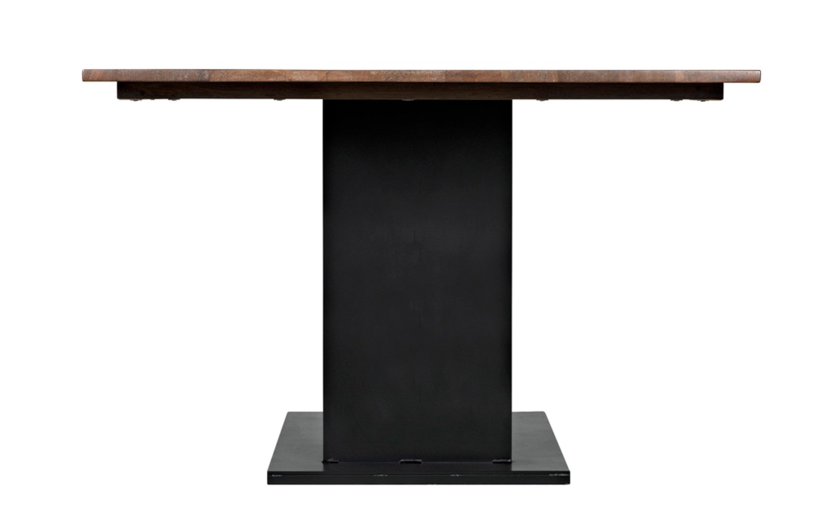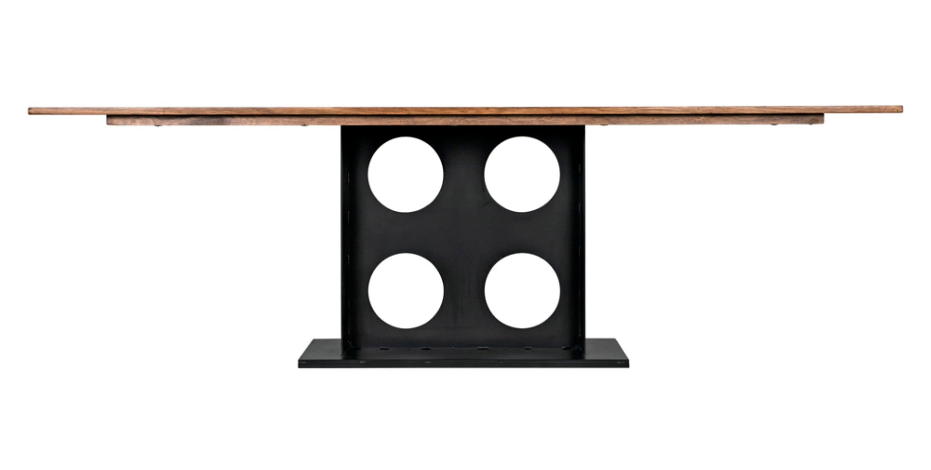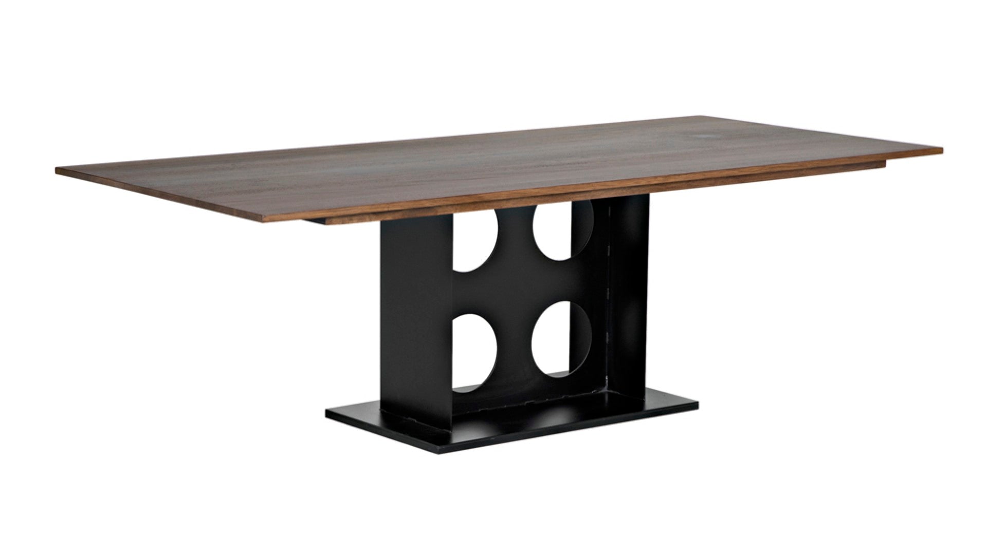 Bold, industrial-inspired design meets refined craftsmanship in this striking dining table. Handcrafted from minimally finished steel with rich walnut surfaces, the Cameron Table brings contemporary edge and durable construction to any dining space, balancing raw materials with warm finishes for everyday use and elevated entertaining.