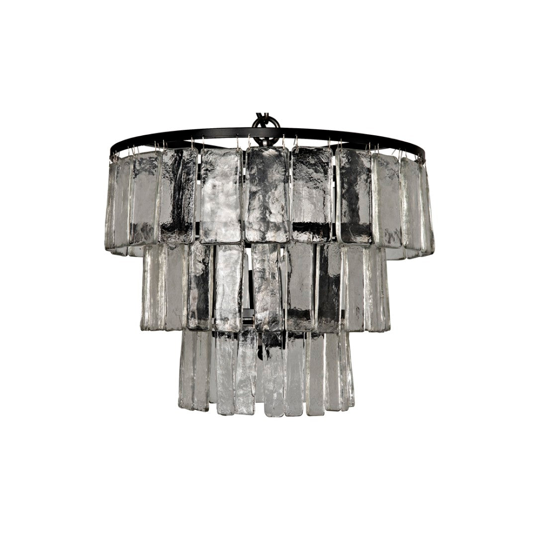Bring a dramatic centerpiece to any room with this striking Carnegie chandelier. Crafted with a bold black iron frame and cascading glass paillettes, it combines industrial strength with glamorous sparkle to command attention while providing elegant illumination. Ideal for grand foyers, dining rooms, or high-ceiling living spaces, its layered design scatters light beautifully for a warm, inviting glow.