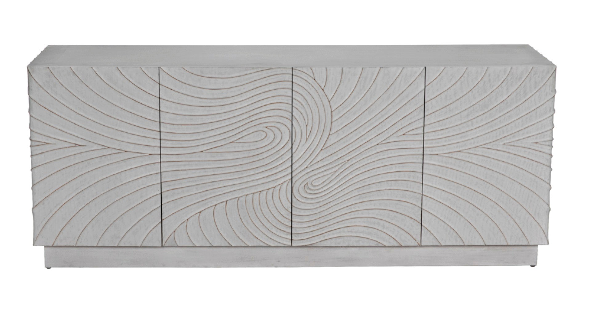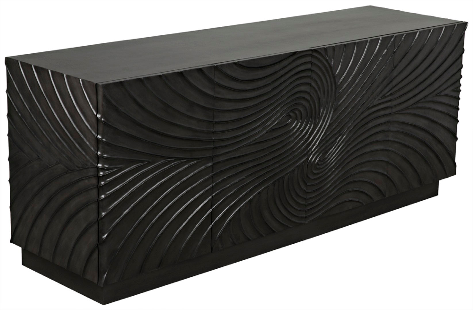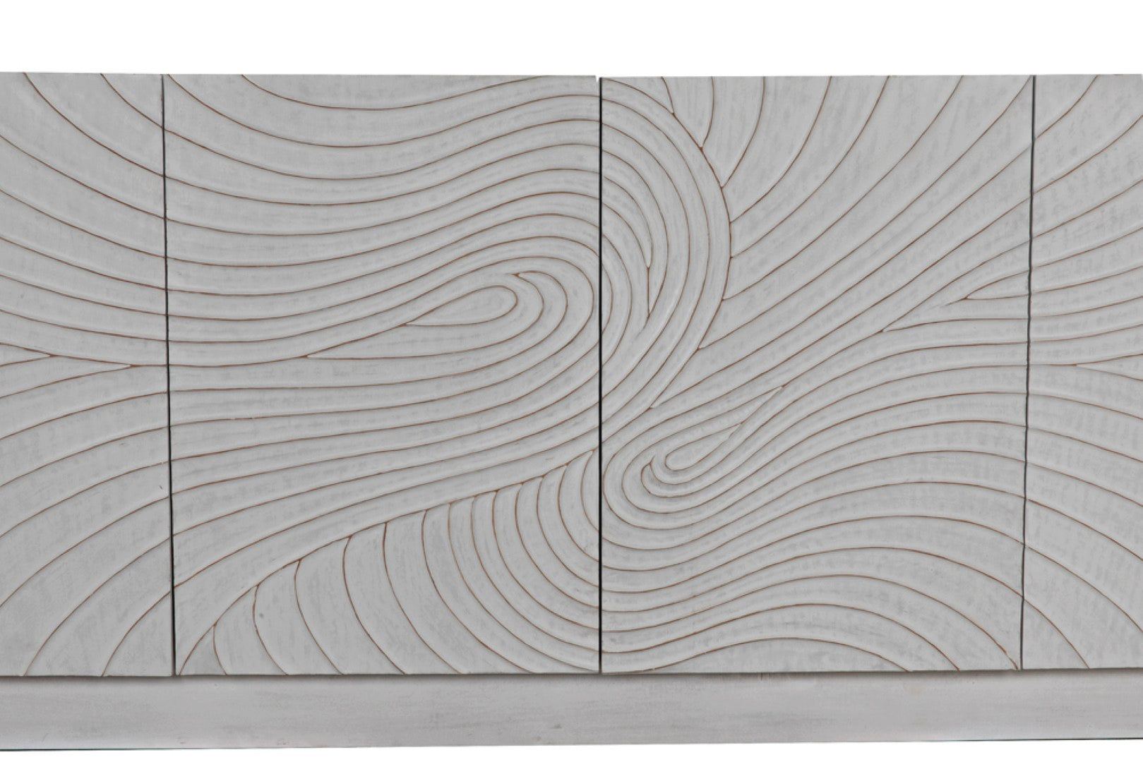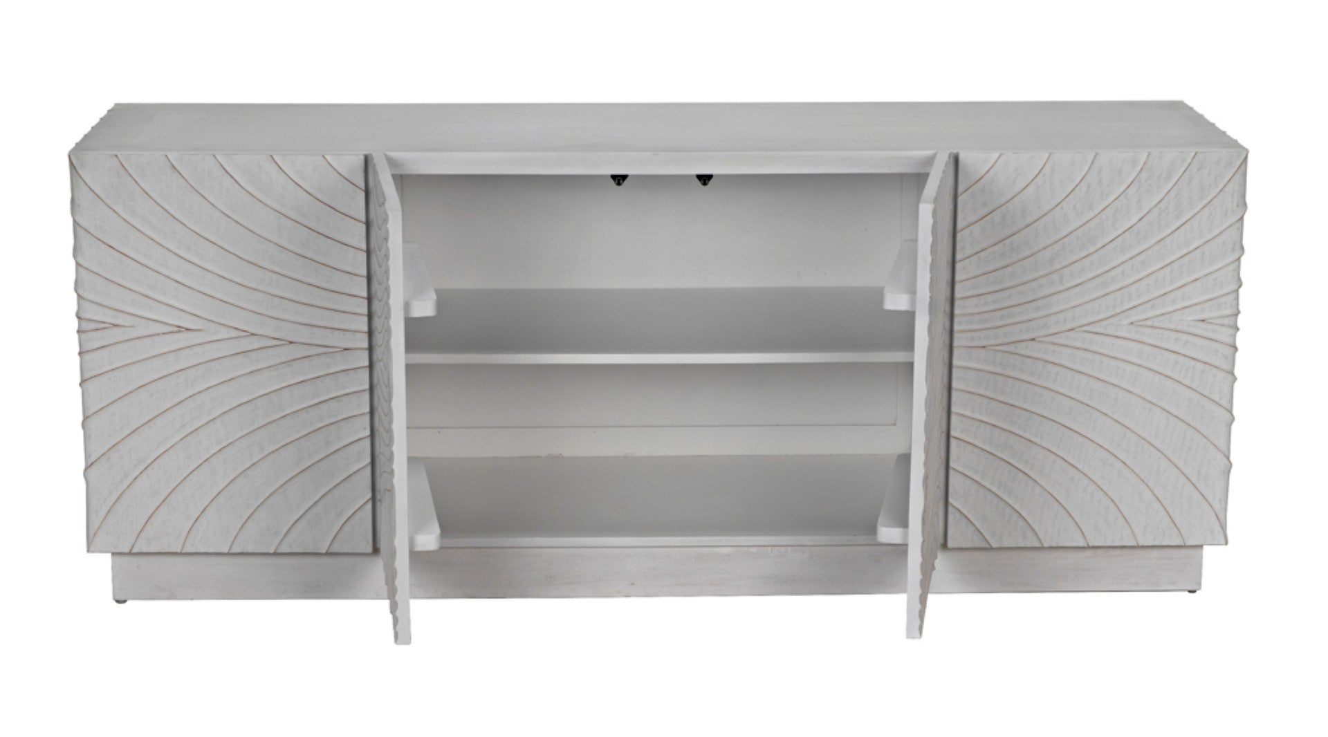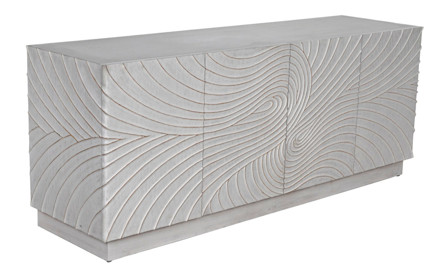 - Design: Strong, clean lines softened by four hand-carved cupboard doors for refined visual interest