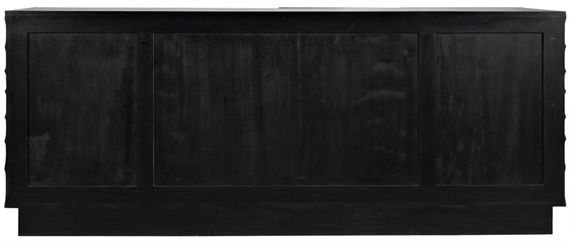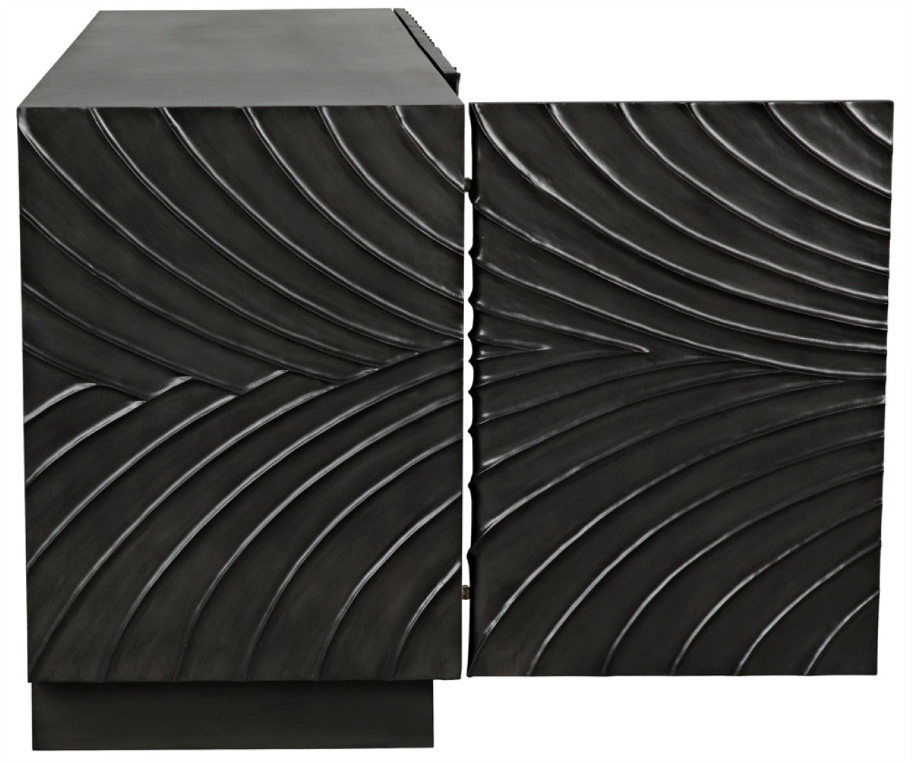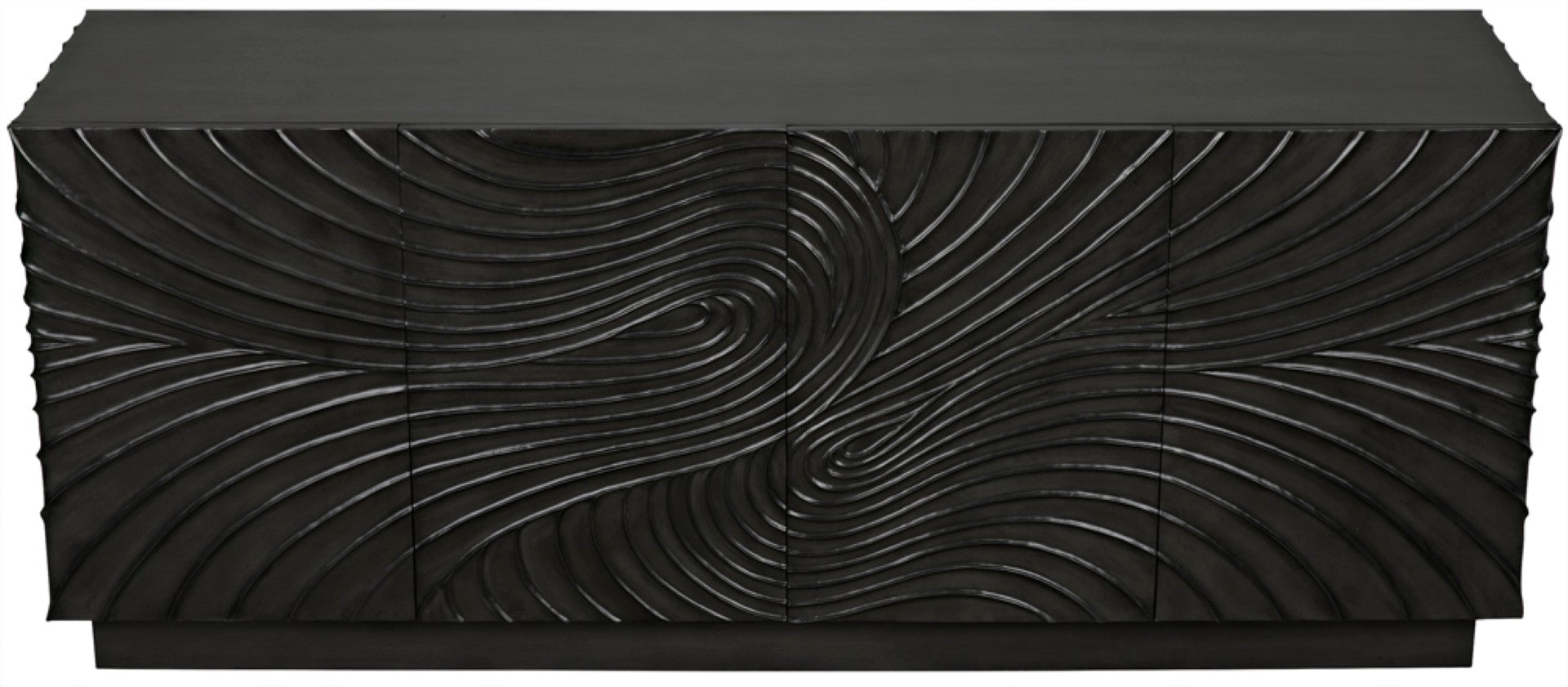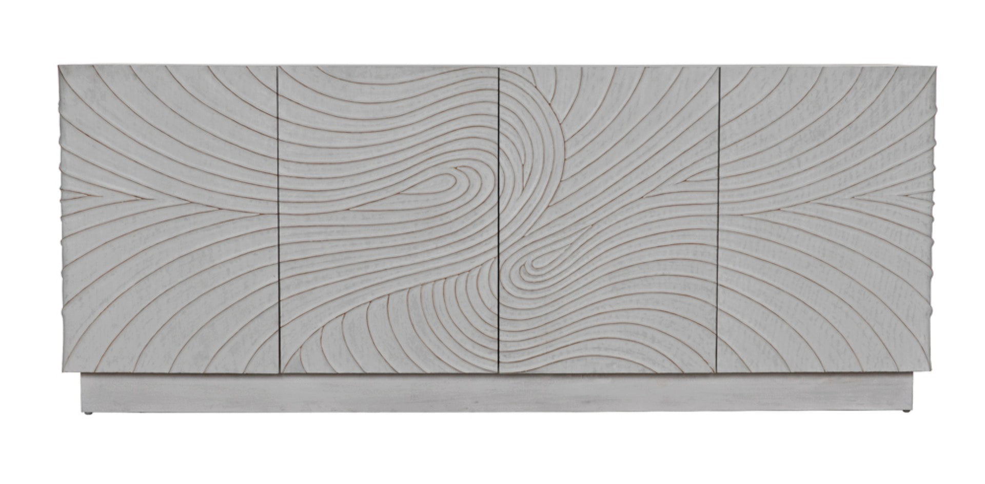 - Design: Strong, clean lines softened by four hand-carved cupboard doors for refined visual interest