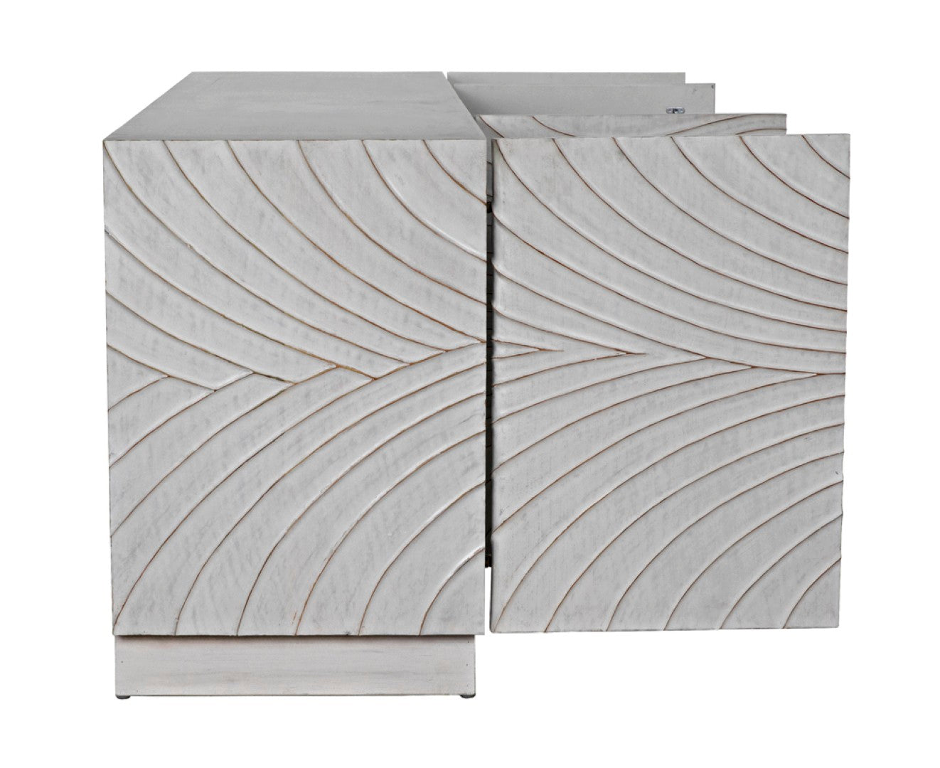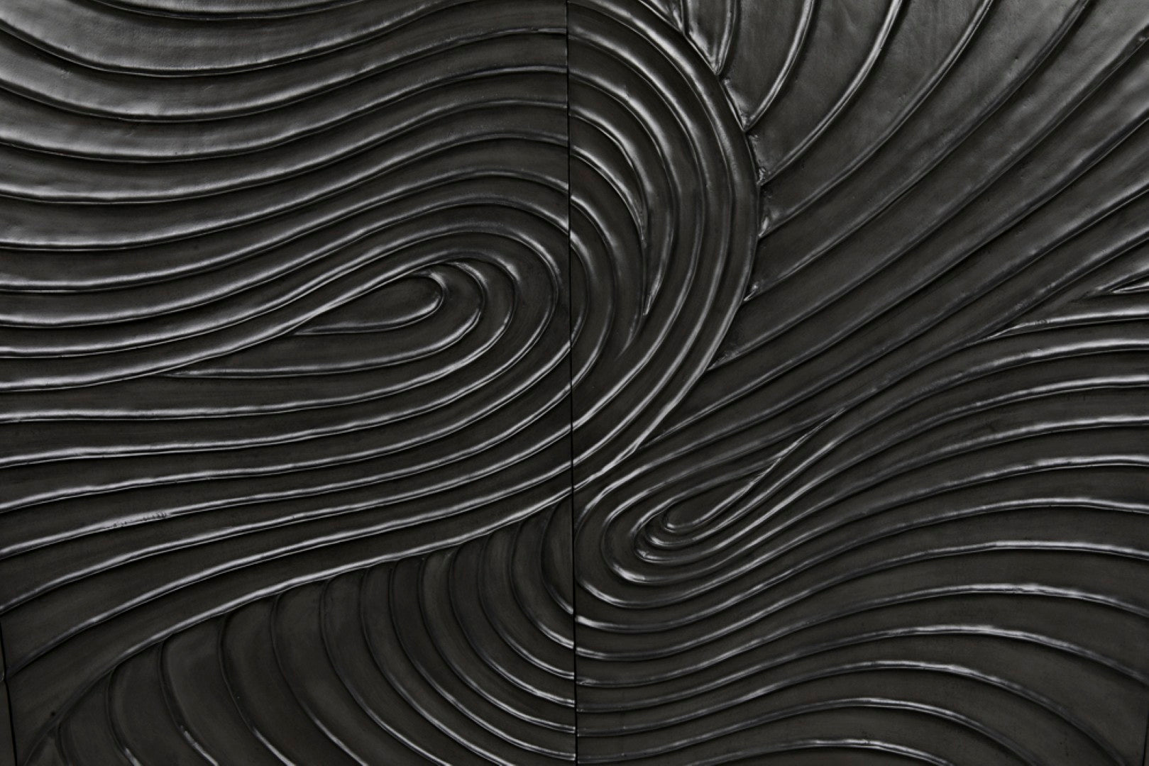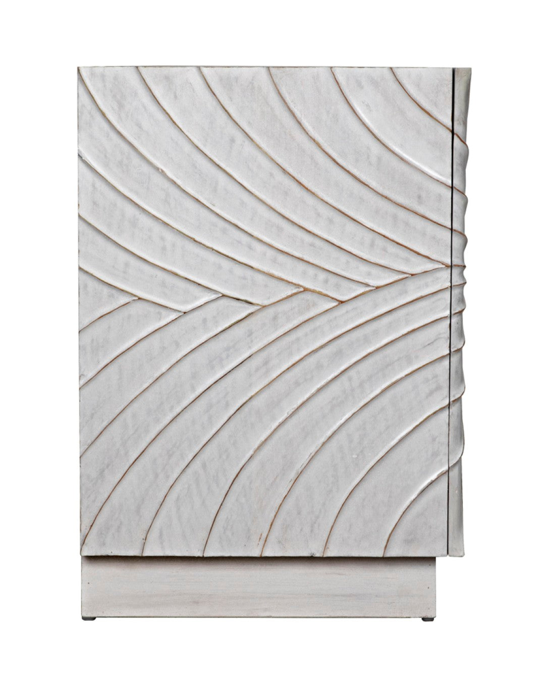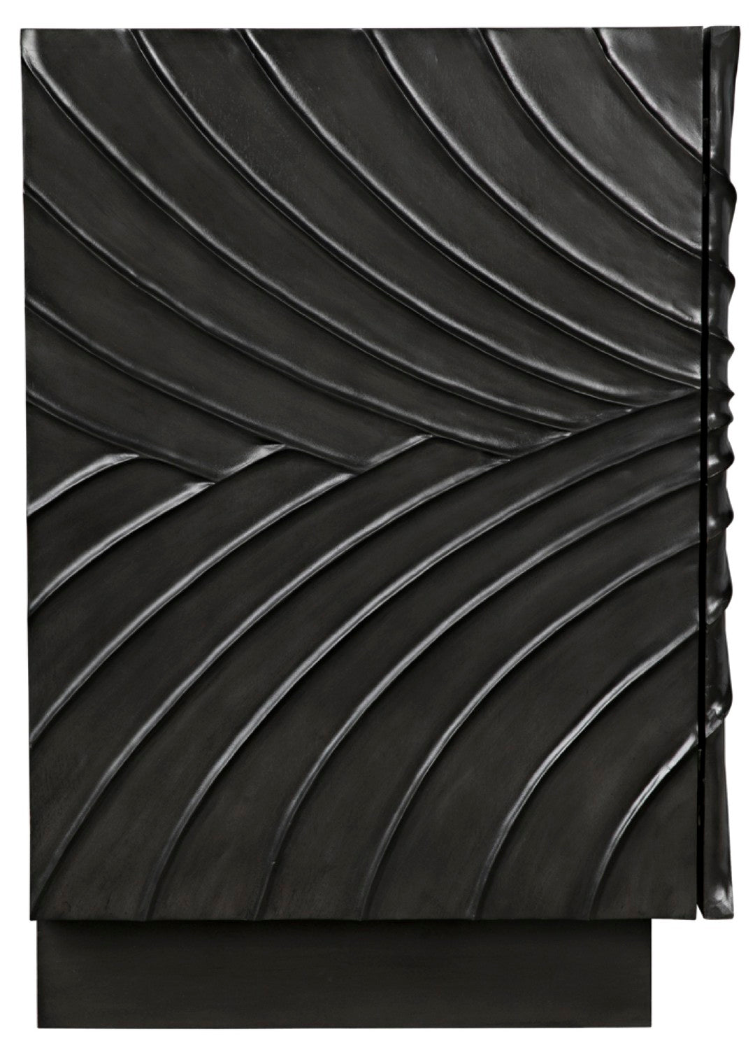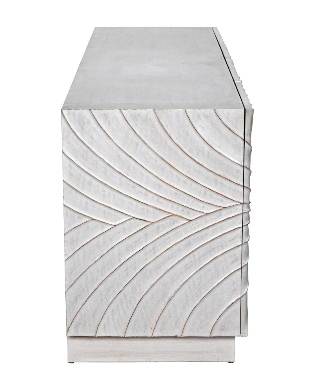 - Design: Strong, clean lines softened by four hand-carved cupboard doors for refined visual interest