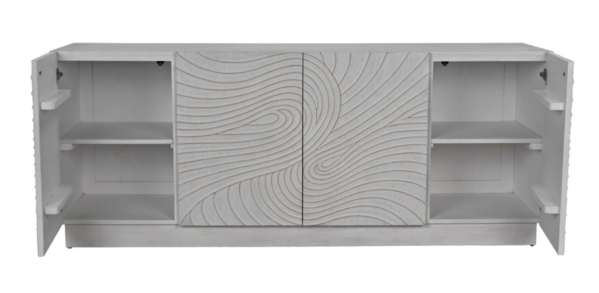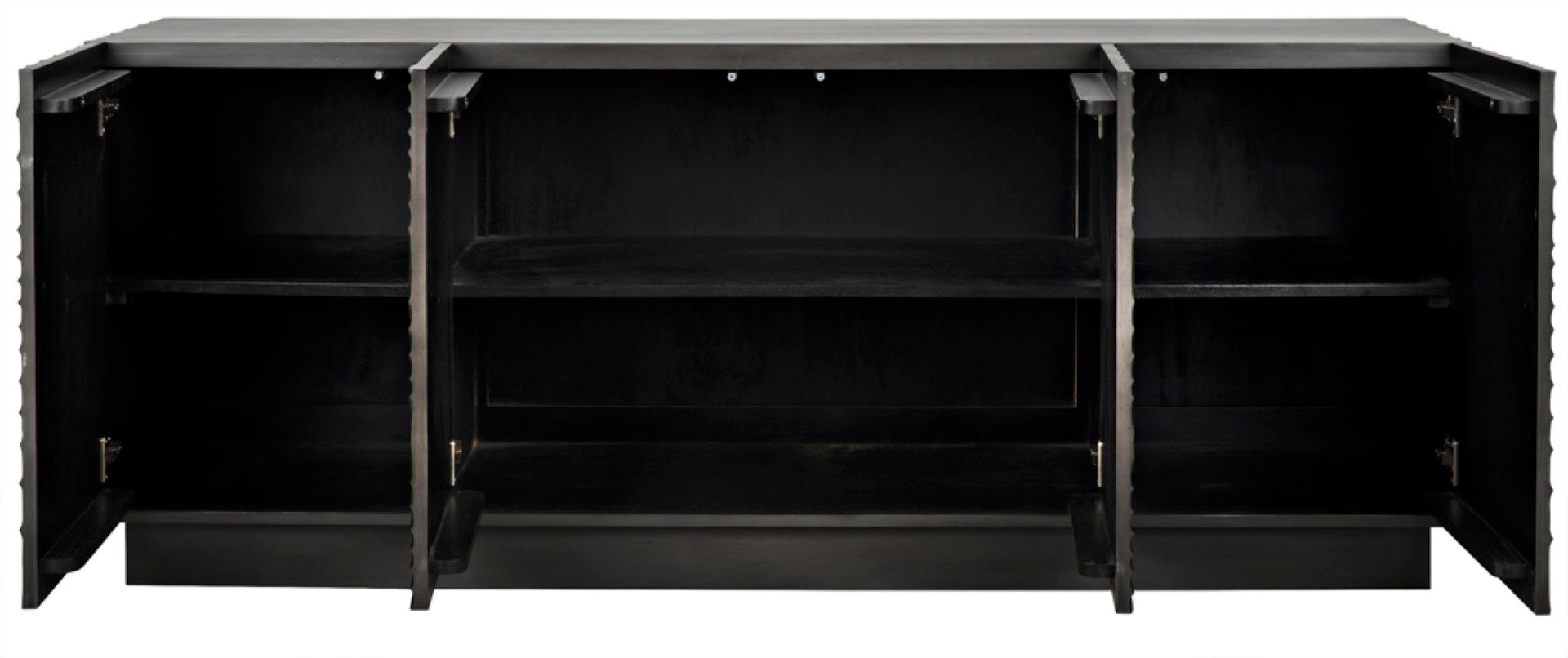 - Storage: Four touch-open doors reveal generous interior compartments ideal for tableware, linens, media components, or pantry overflow