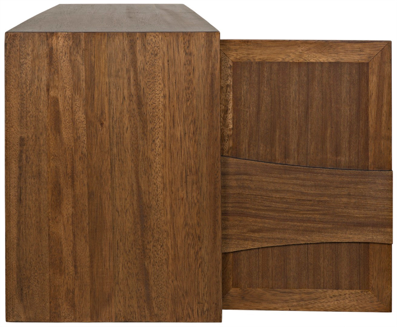 Elevate your living or dining space with this handcrafted Dark Walnut sideboard — a striking blend of artisanal detail and practical storage. The piece showcases four carved, collage-style doors with a rich finish that highlights the natural walnut grain, while hidden push-latch openings preserve a clean, modern silhouette. Ideal for organizing dinnerware, linens, or media components, this sideboard pairs timeless woodworking with everyday functionality.