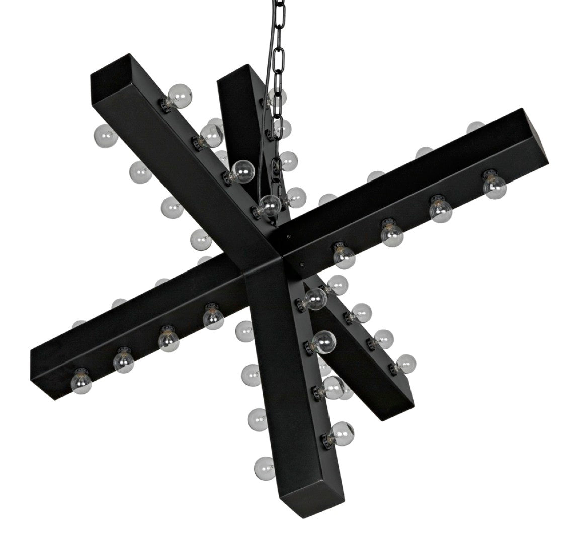 A striking centerpiece that blends sculptural artistry with modern lighting, this handcrafted iron chandelier adds dynamic form and warm illumination to contemporary interiors. Its multi-arm design accommodates numerous small bulbs, casting layered light and creating visual interest whether hung over a dining table, in an entryway, or above a living space.