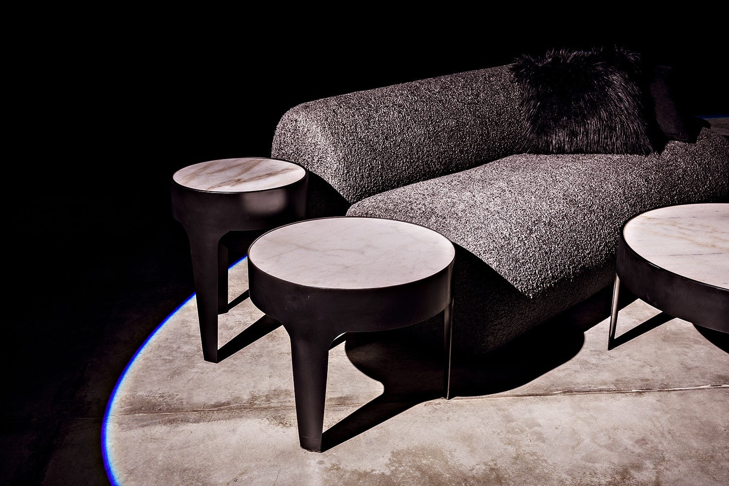 - Material: Industrial Steel and Bianco Crown Marble