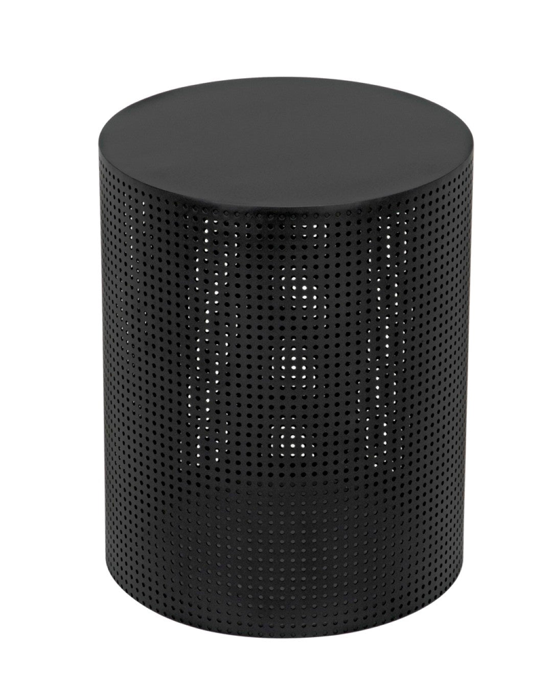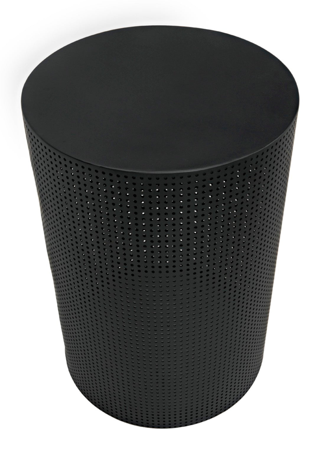 Sleek and sculptural, this Dixon side table combines industrial character with refined simplicity to elevate any living space. Its perforated iron cylinder silhouette offers subtle texture and visual lightness, making it equally suited as a sofa-side table, bedside accent, or standalone decorative piece. Built from durable iron with a matte black finish, it blends modern minimalism with practical function.