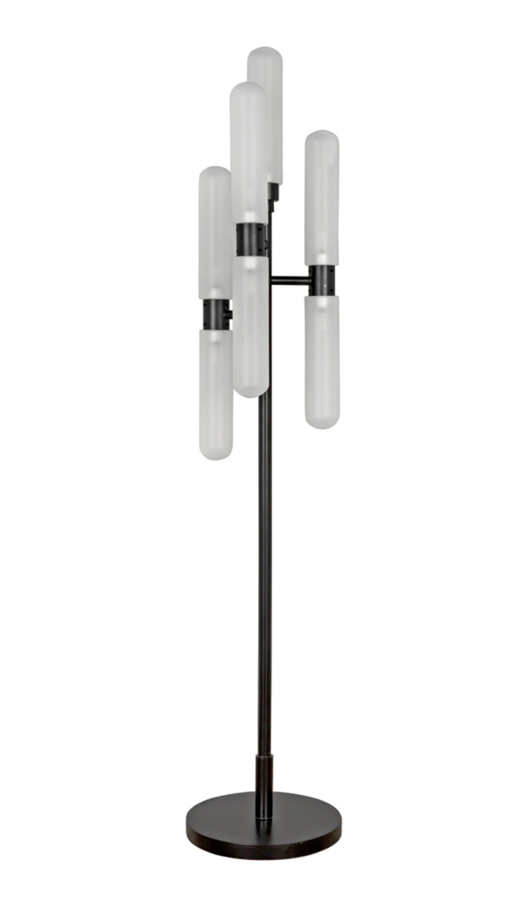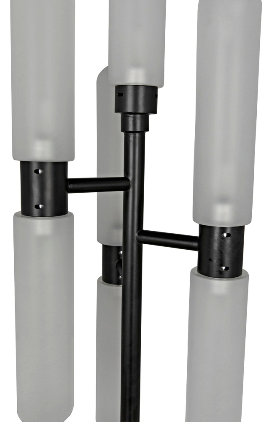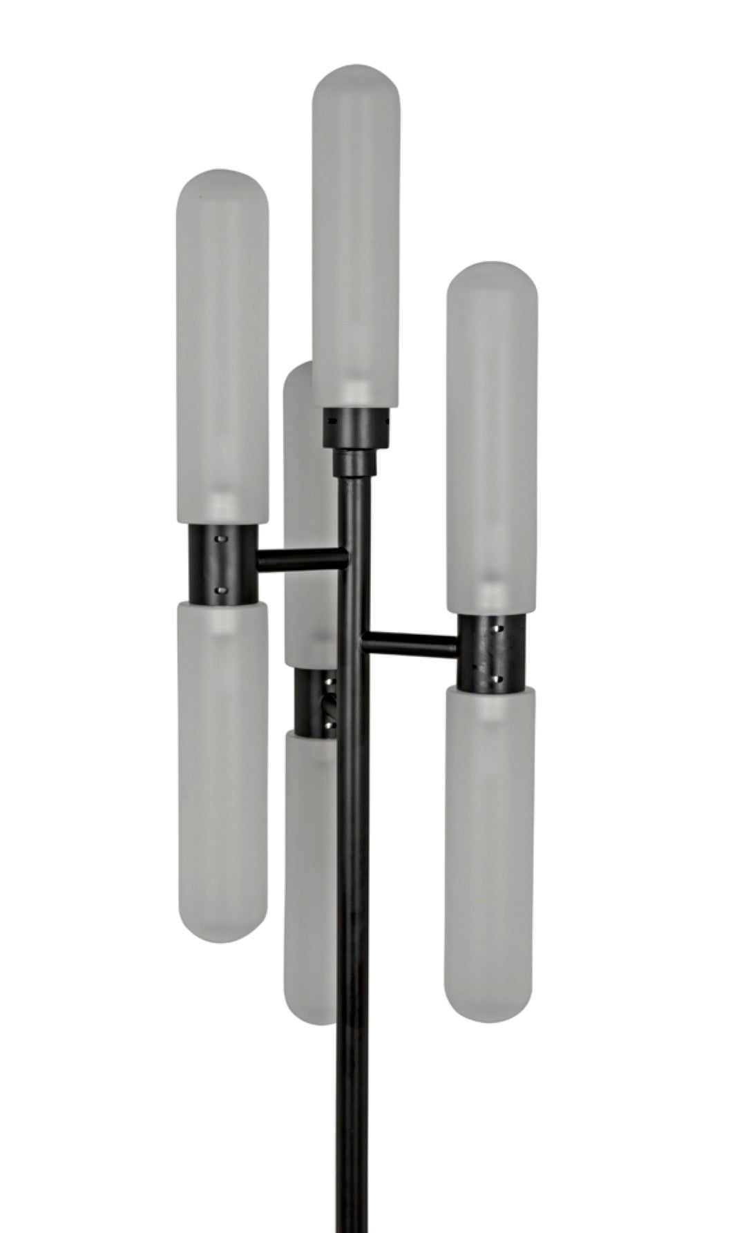 Bring contemporary elegance and soft ambient light to any room with the Dominique floor lamp. Its candelabra-inspired silhouette and frosted capsule glass shades create a refined focal point while providing warm, evenly diffused illumination ideal for living rooms, bedrooms, or home offices. The matte black iron finish offers versatile, modern styling that pairs well with minimalist or industrial decor.