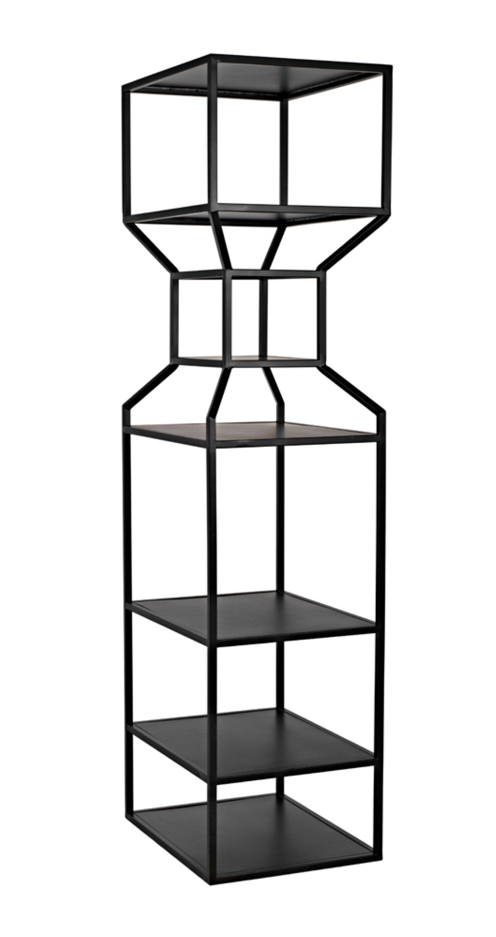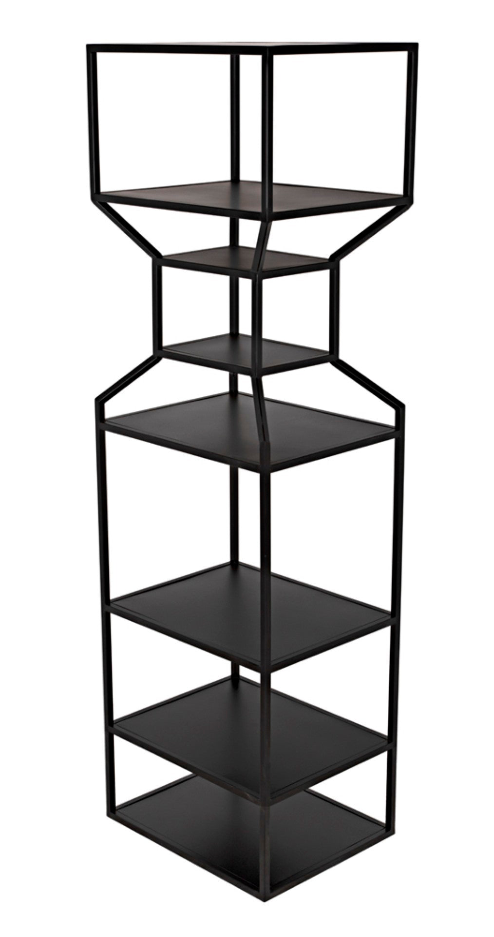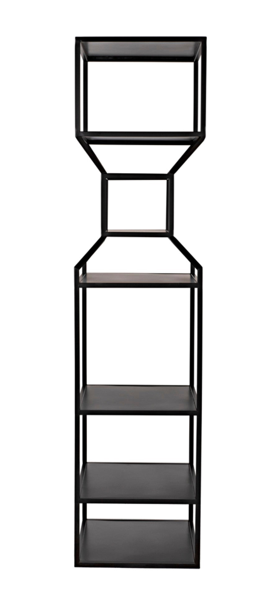 Add modern industrial flair to your living or work space with this sleek black metal bookcase. The Downtown bookcase pairs a minimalist linear framework with generous shelving to showcase books, art, and decorative objects—perfect for contemporary, loft, or industrial-inspired interiors. Its tall, narrow profile creates a striking vertical presence and can be used alone or grouped with the companion design to form a coordinated "interior skyline."