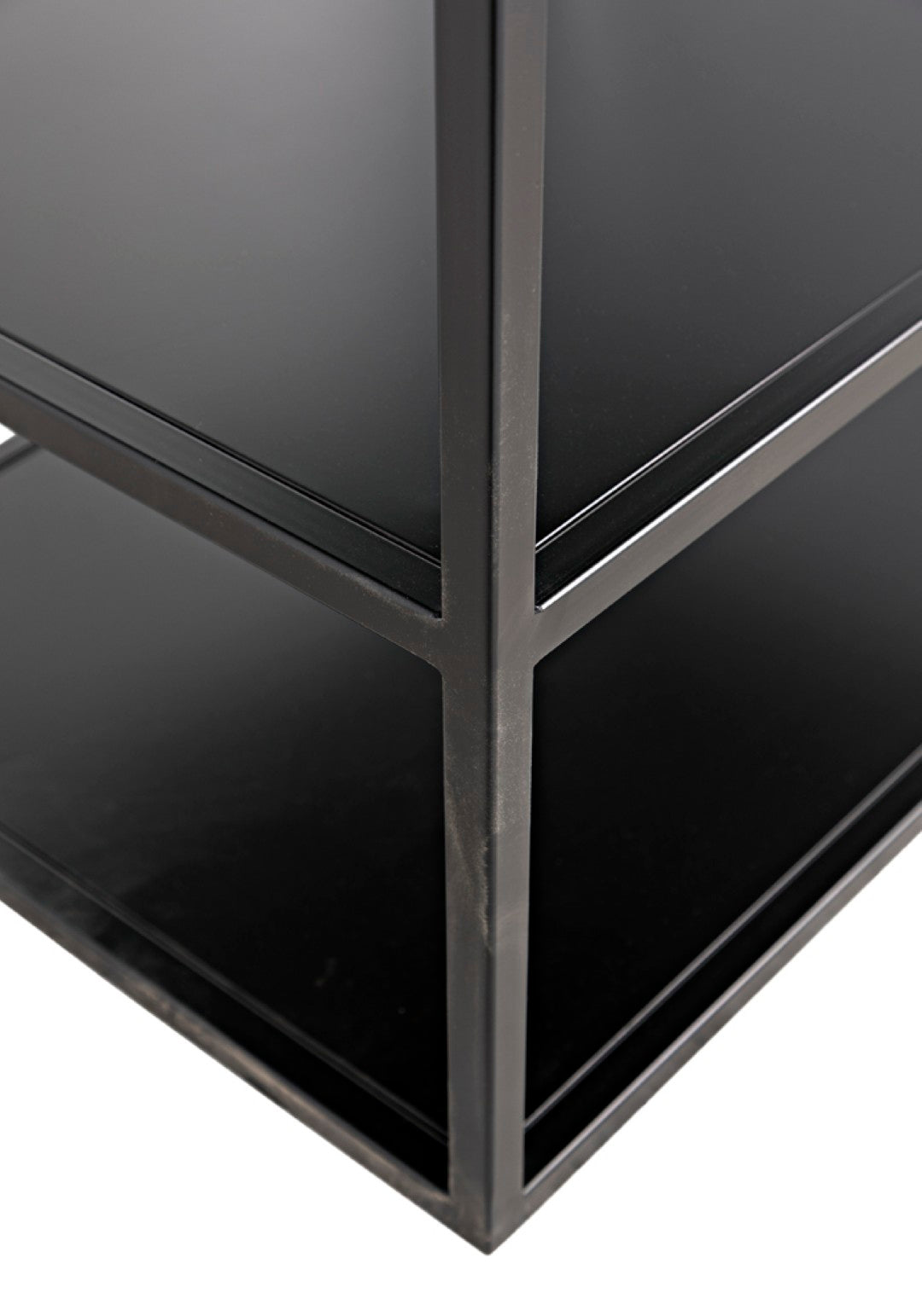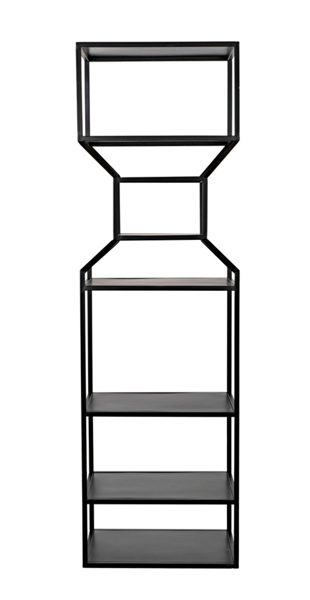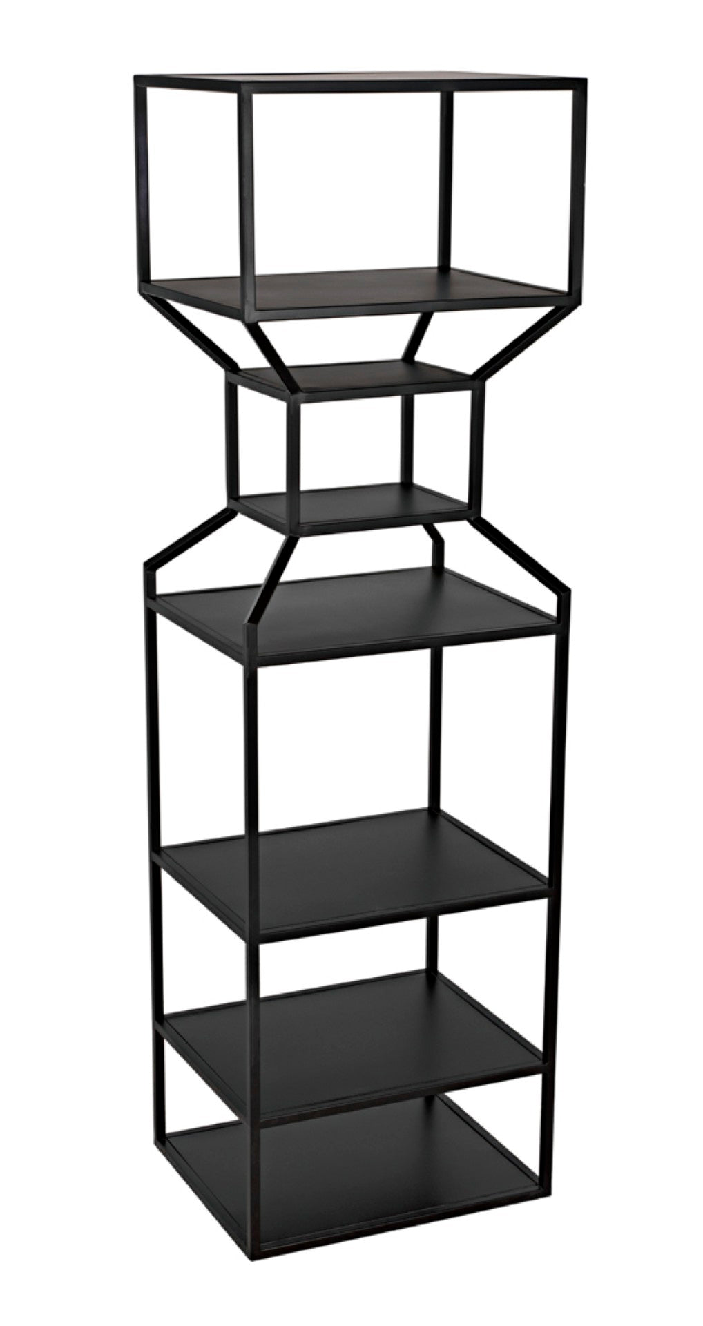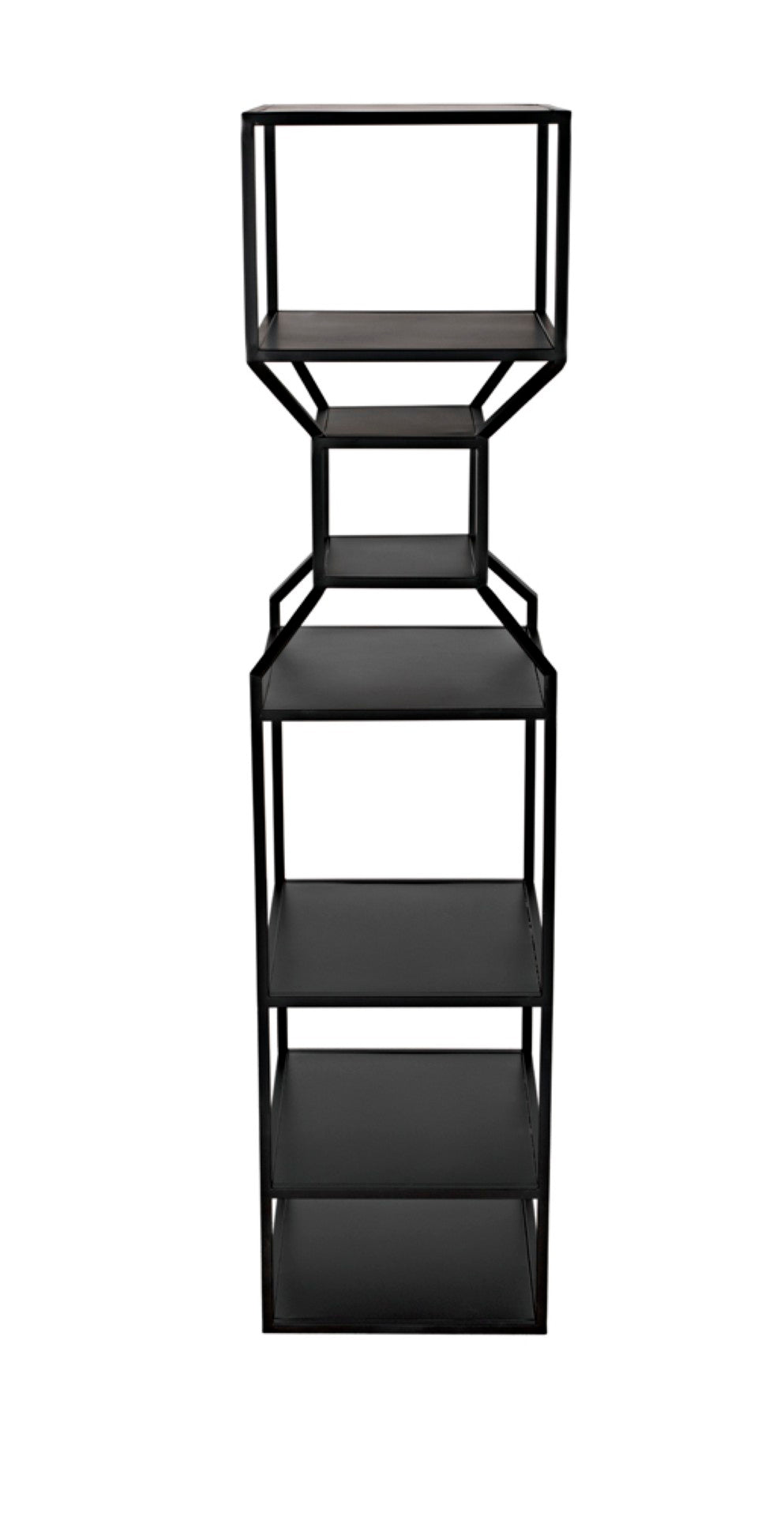 Add modern industrial flair to your living or work space with this sleek black metal bookcase. The Downtown bookcase pairs a minimalist linear framework with generous shelving to showcase books, art, and decorative objects—perfect for contemporary, loft, or industrial-inspired interiors. Its tall, narrow profile creates a striking vertical presence and can be used alone or grouped with the companion design to form a coordinated "interior skyline."