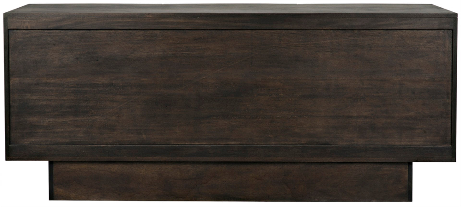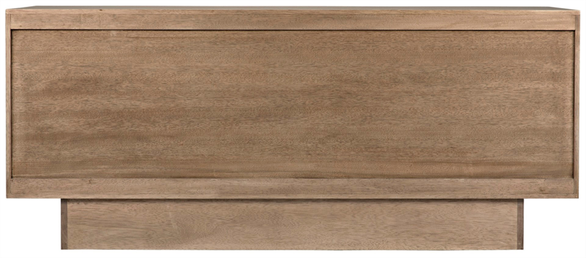 Elevate your dining room or living space with this refined washed-walnut sideboard, where sleek modern lines meet handcrafted detail. Its clean, hardware-free facade highlights a repeating hand-carved pattern across nine spacious drawers, offering an elegant and functional storage solution that complements both contemporary and traditional interiors.