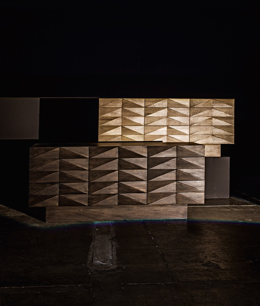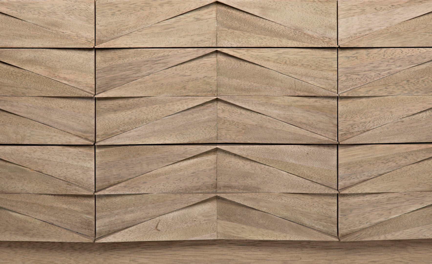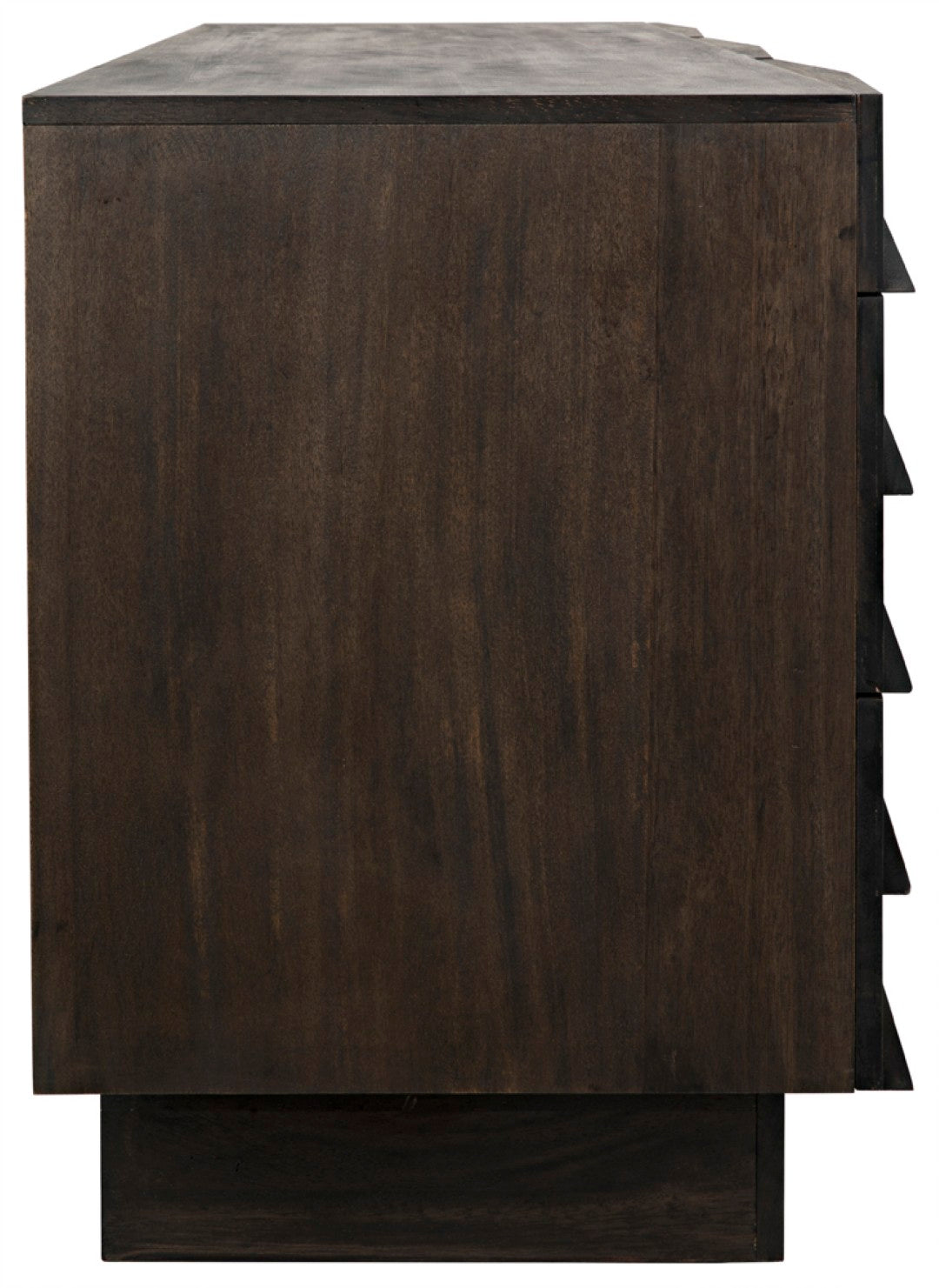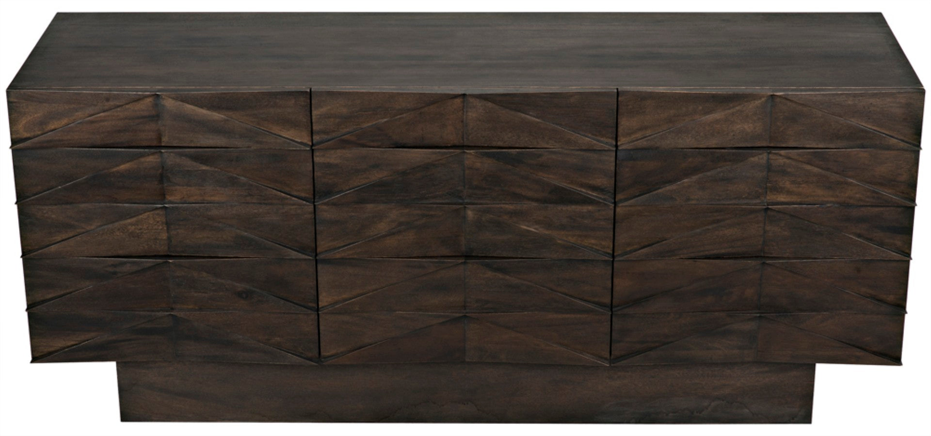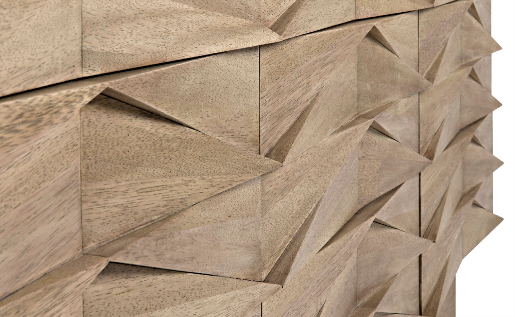 - Nine smooth-glide drawers with repeating hand-carved pattern for subtle, artisanal texture