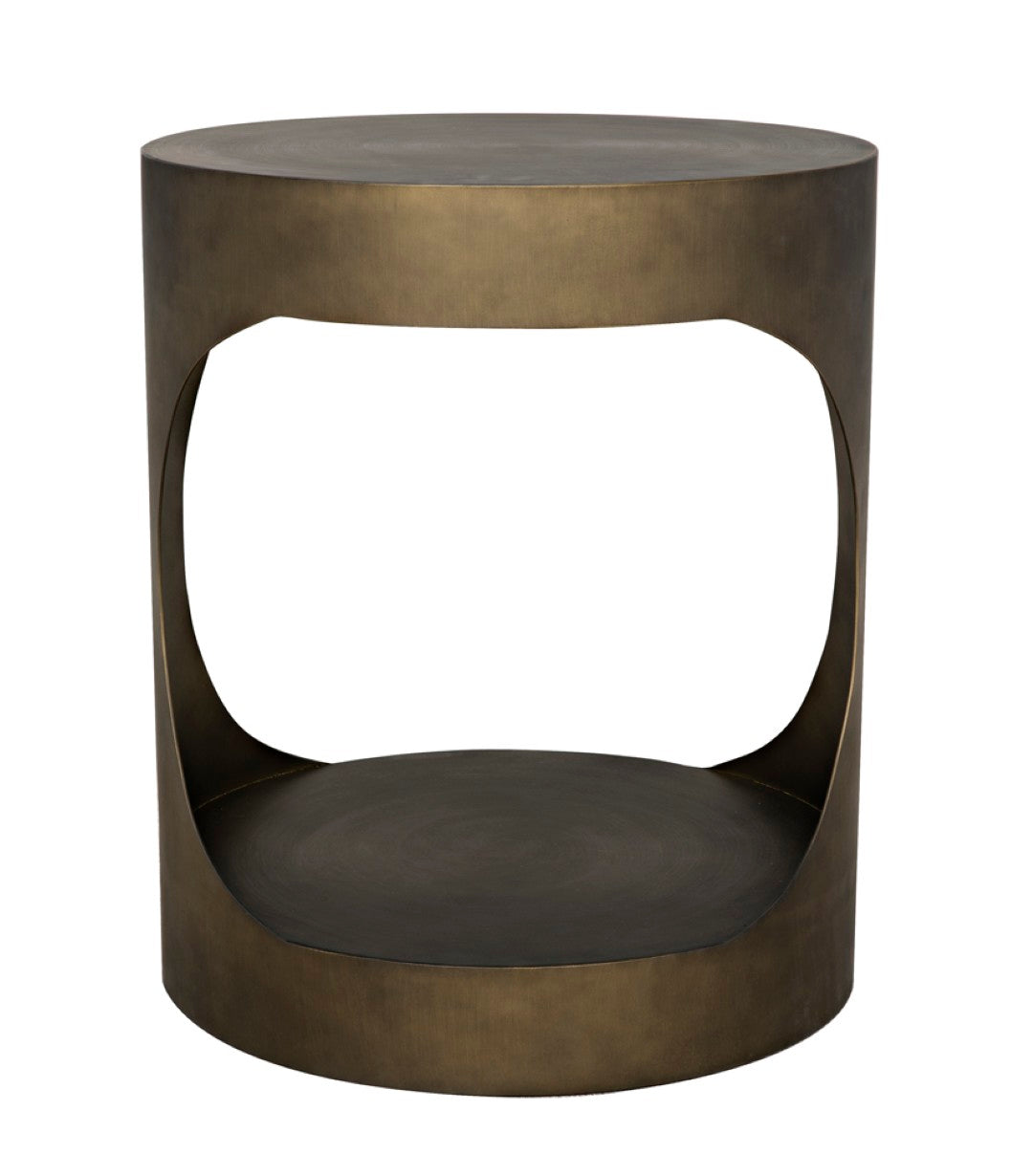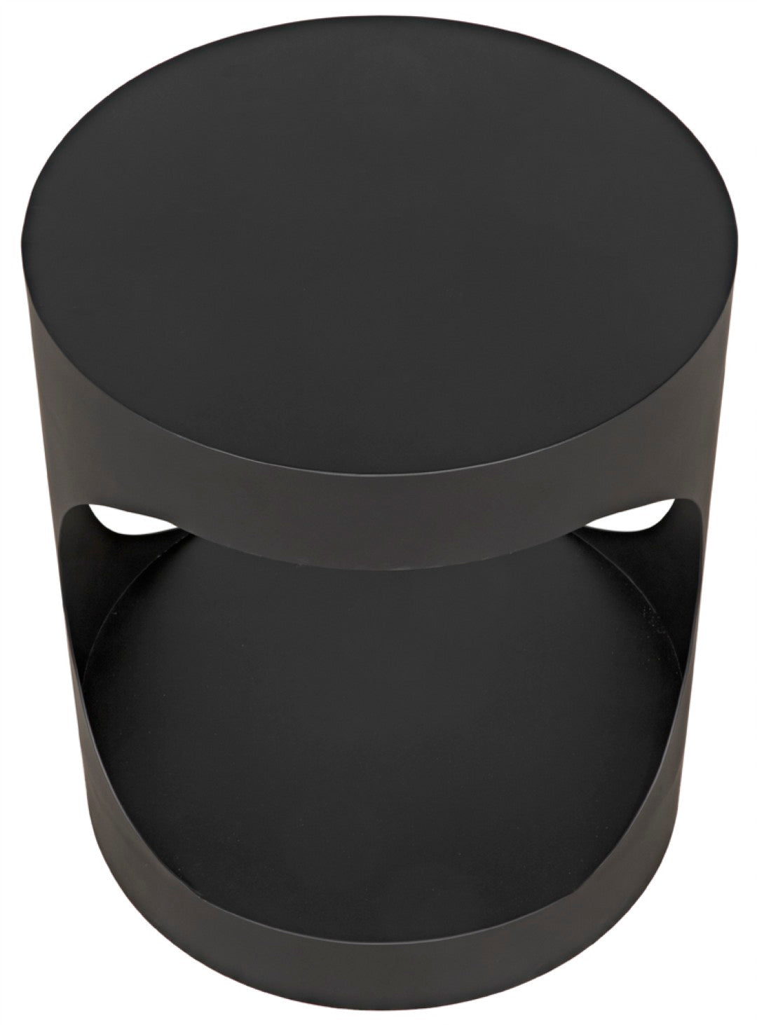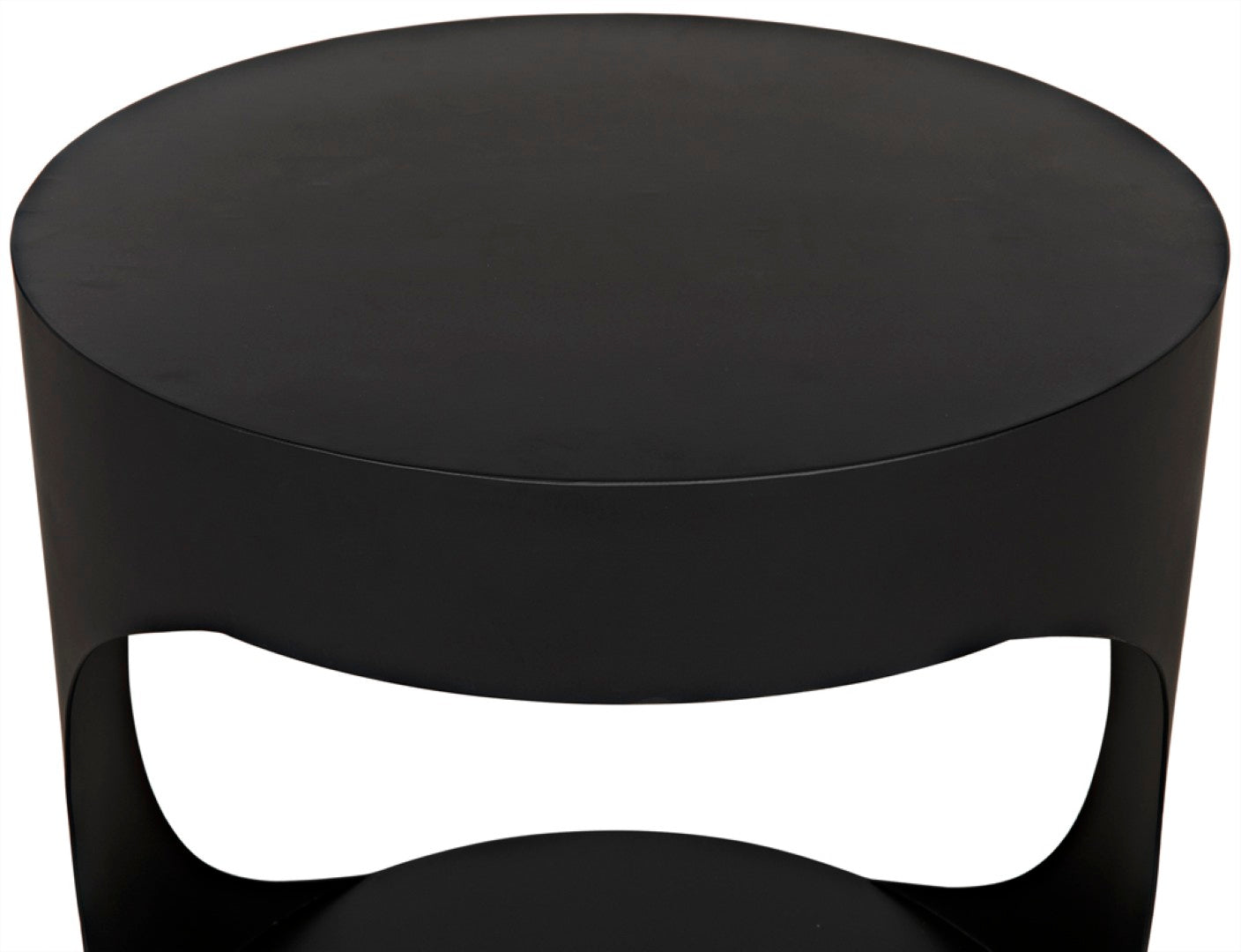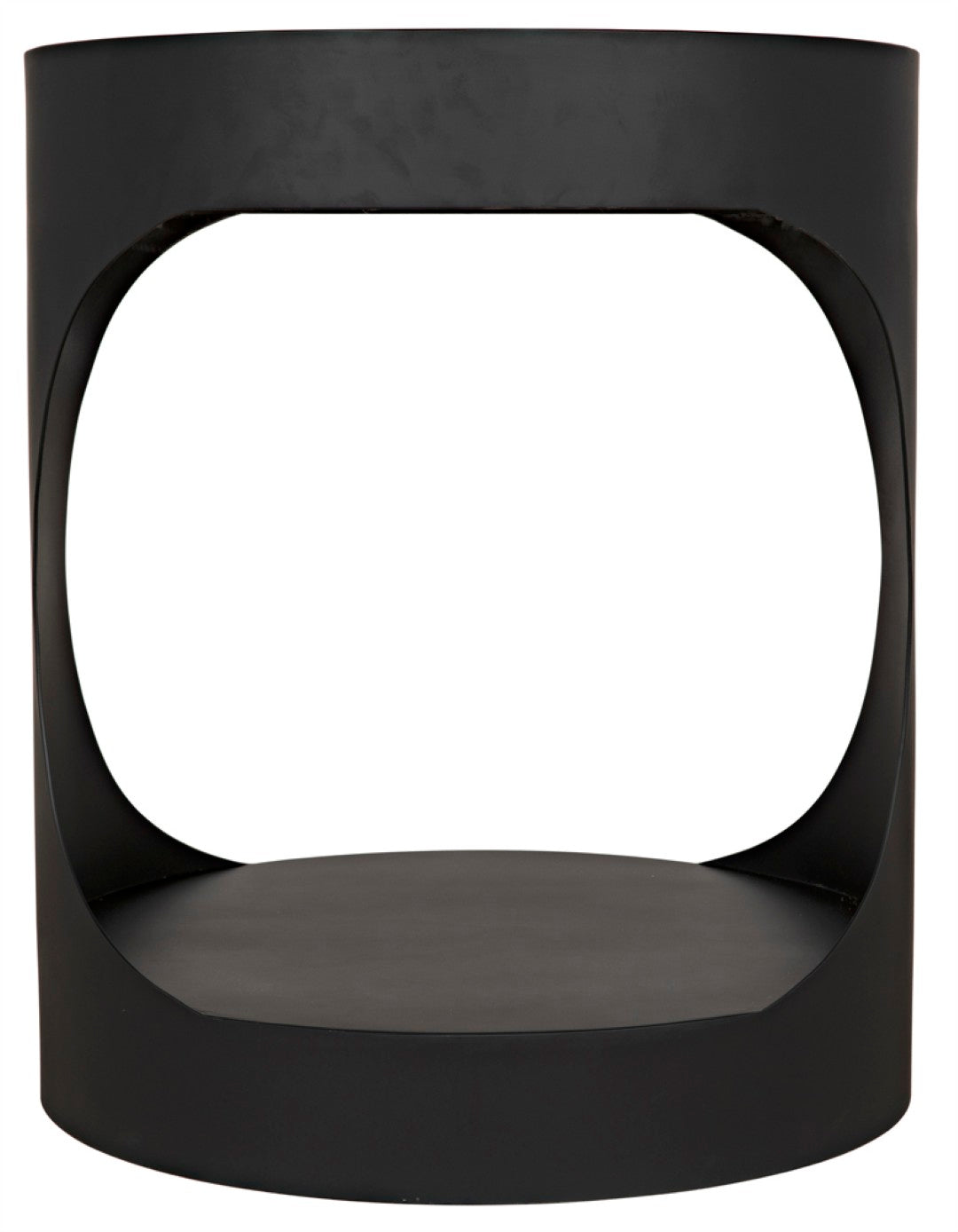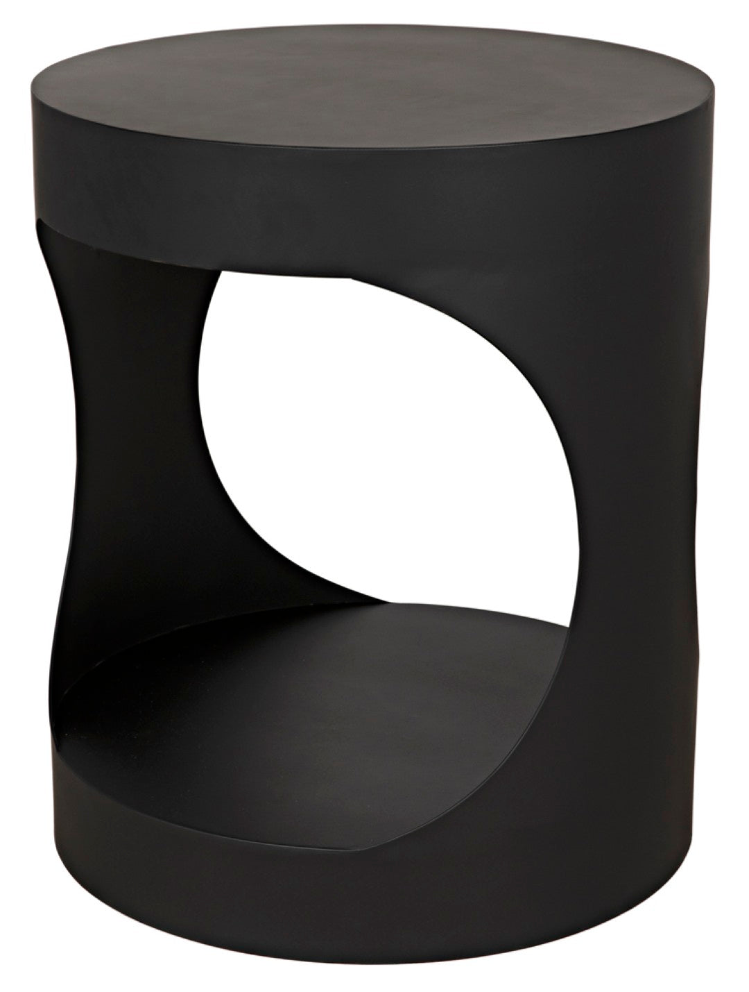 A striking blend of modern edge and understated sophistication, this round metal side table brings sculptural presence to living rooms, bedrooms, or entryways. Its minimalist silhouette and matte black iron finish make it equally at home in eclectic, industrial, or contemporary settings, offering both style and functional surface space for lamps, books, or decorative accents.