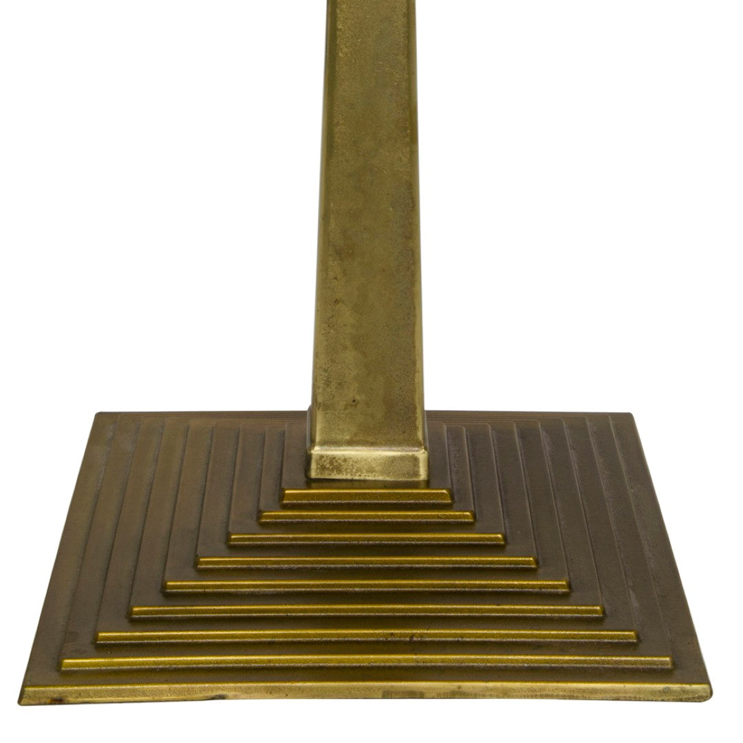 - Finish: Antiqued brass on the pyramid-inspired base