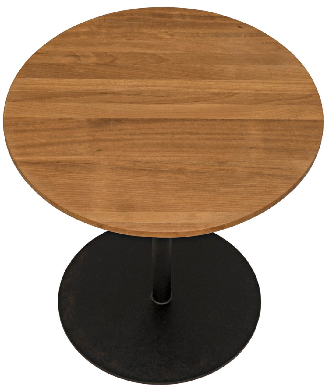 A refined accent piece that blends warm natural wood with industrial metal, this small side table brings timeless style and everyday functionality to living rooms, bedrooms, or office spaces. The gold teak top offers rich grain and a smooth, expertly finished surface, while the matte black iron base provides sturdy support and contemporary contrast—ideal for pairing with modern, rustic, or eclectic interiors.