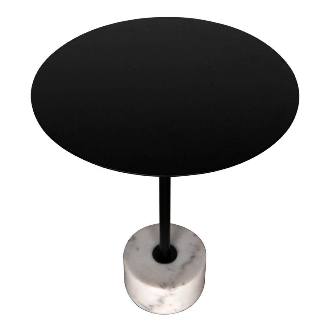 Elevate your living space with a striking blend of industrial strength and refined elegance. This side table pairs a durable matte black iron frame with a luxurious white marble base, offering both visual contrast and lasting stability. Its compact footprint makes it ideal as an accent beside sofas, chairs, or in entryways, bringing a contemporary yet timeless accent to any room.