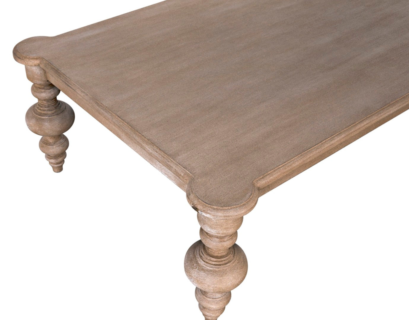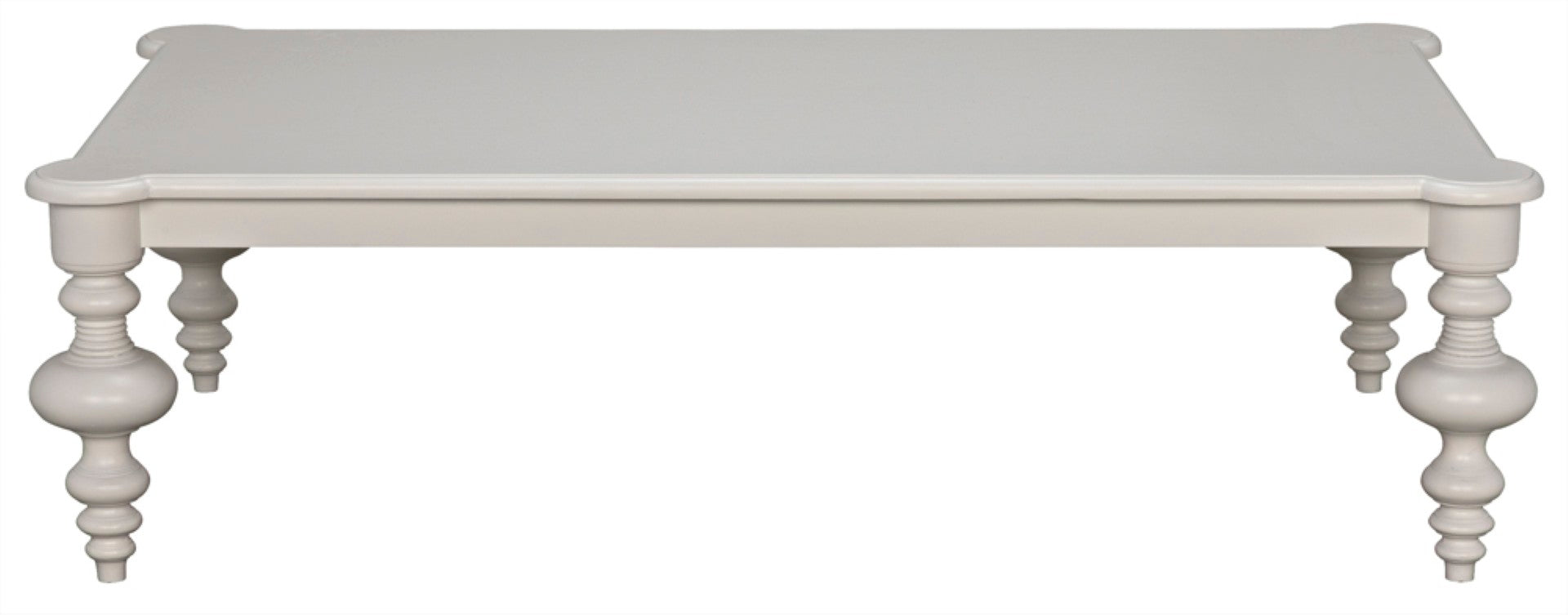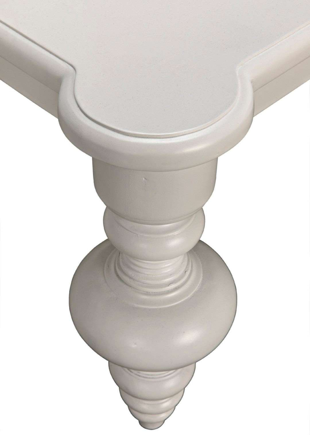 - Design Details: Rectangular top with rounded embellished corners and turned spool legs for a classic, symmetrical profile