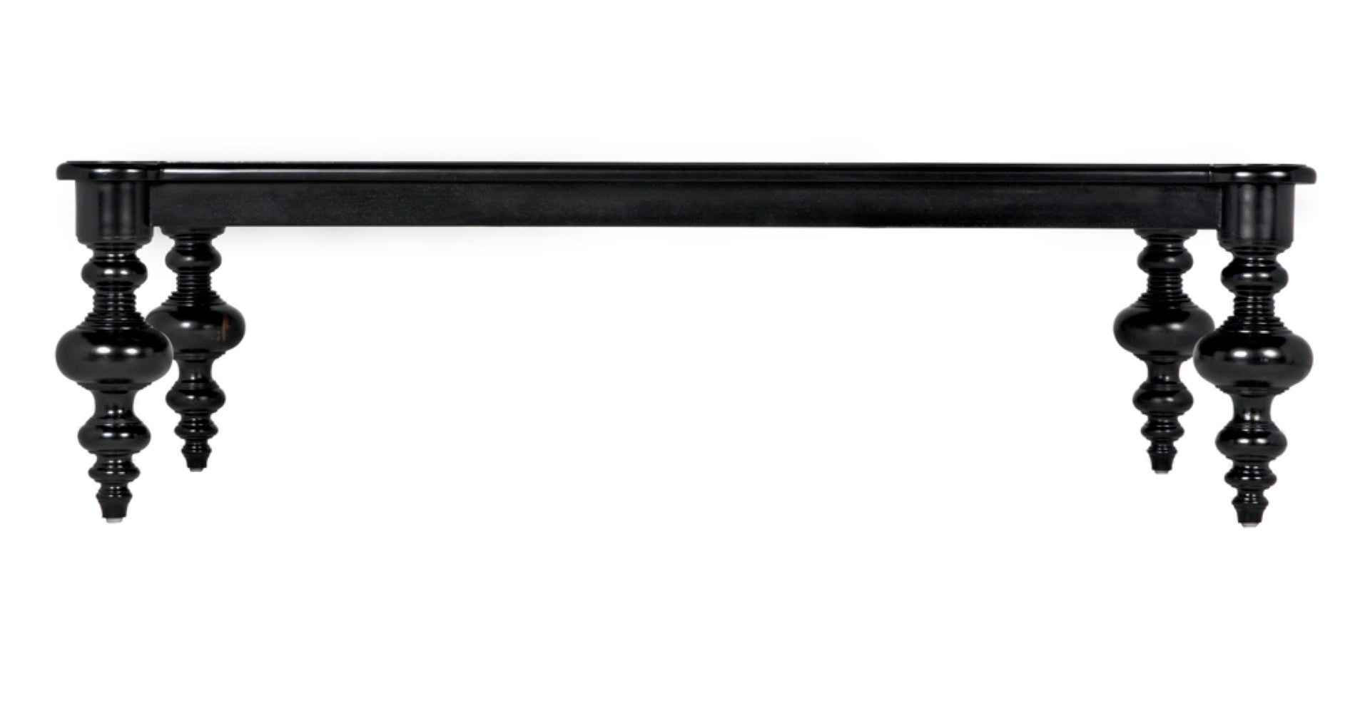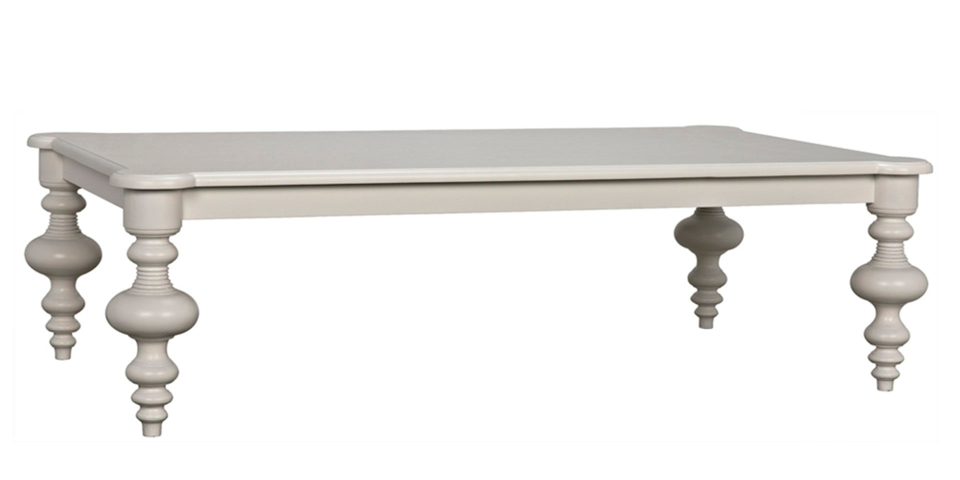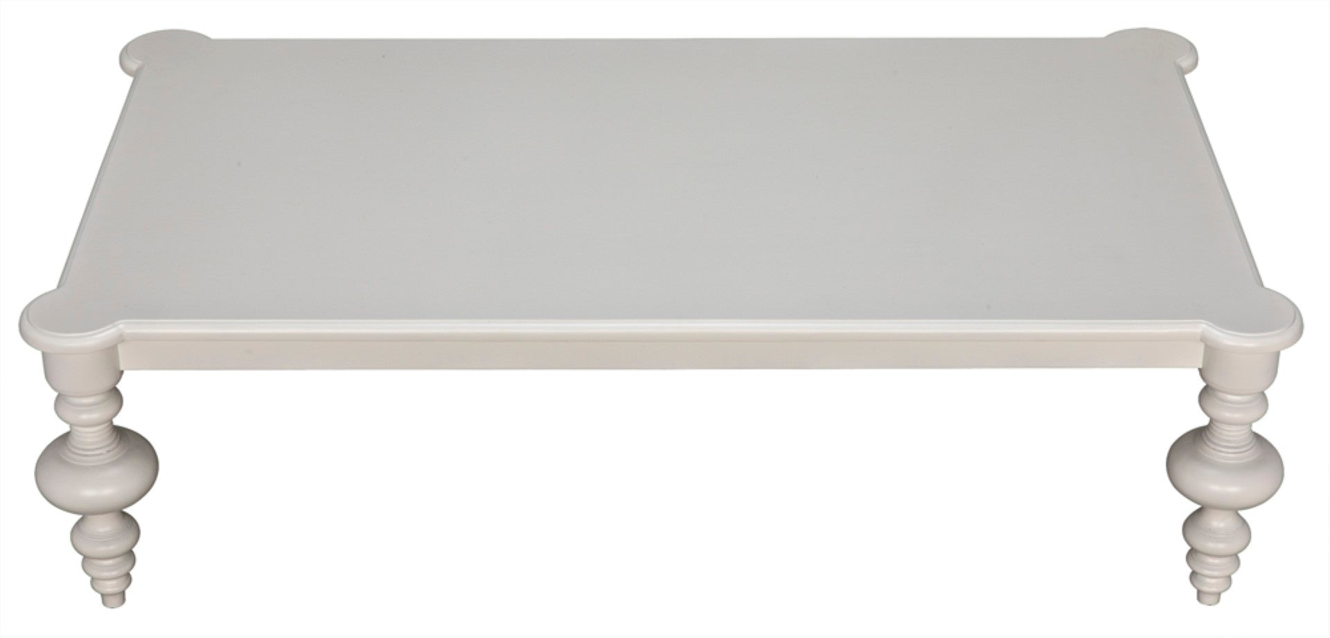 - Design Details: Rectangular top with rounded embellished corners and turned spool legs for a classic, symmetrical profile