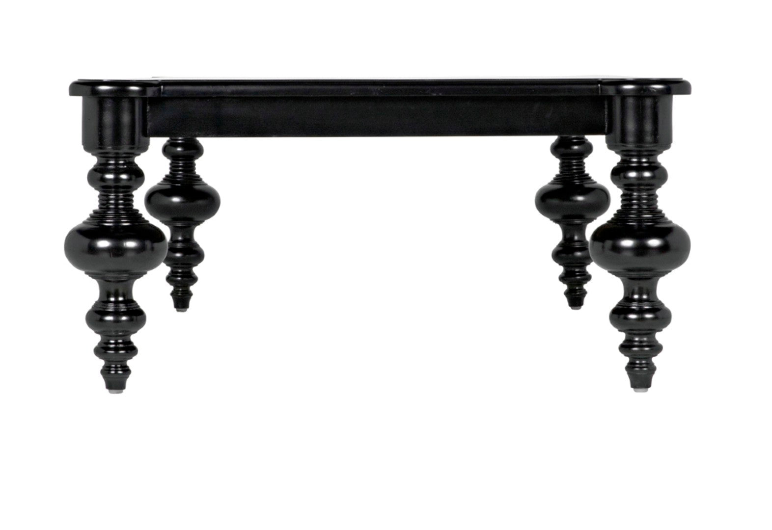Elevate your living space with this hand-carved mahogany coffee table—an elegant centerpiece that blends classic craftsmanship with refined symmetry. The rectangular top, rounded embellished corners, and turned spool legs create a cohesive, balanced silhouette. Finished by hand to showcase the hardwood's natural character, this table offers both visual warmth and durable construction for everyday use and formal settings alike.