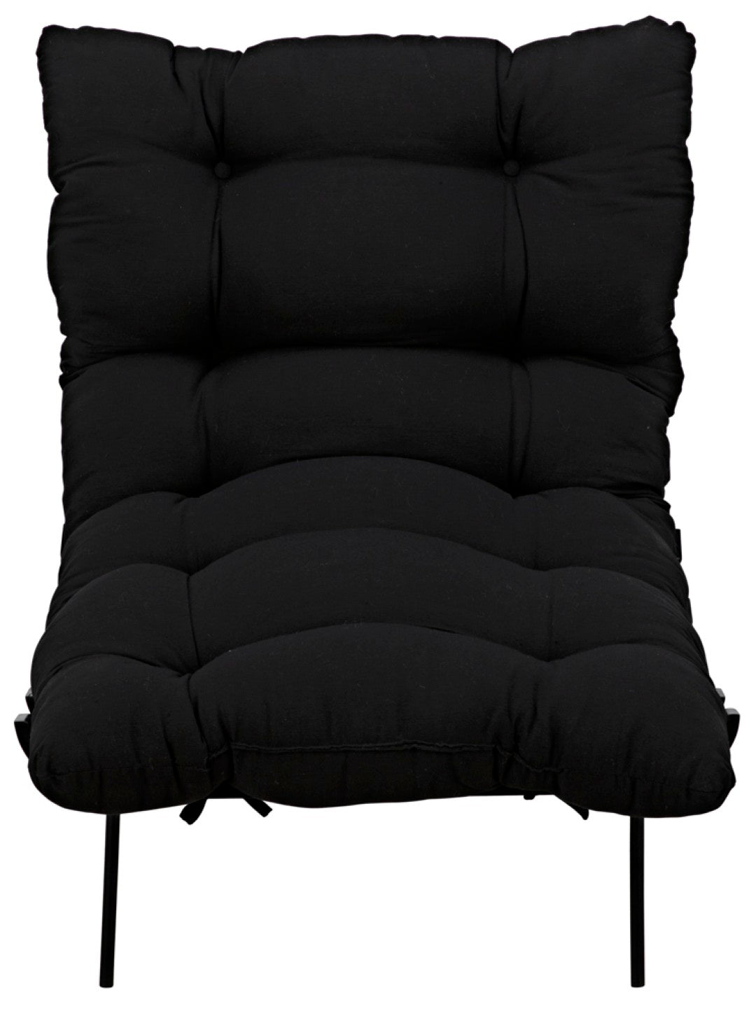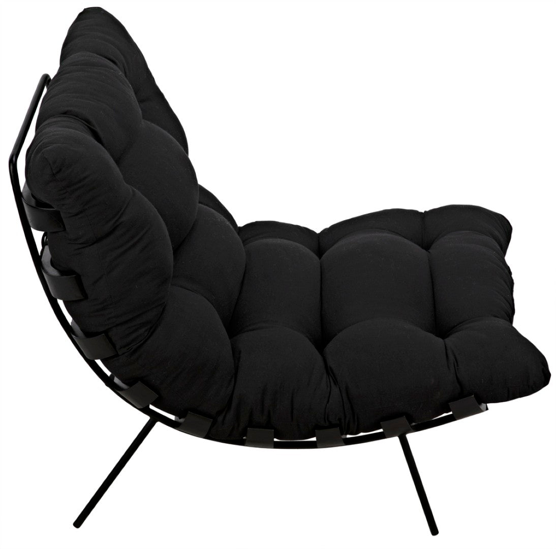 Sink into the Hanzo chair — a generously scaled, chaise-style occasional chair that blends industrial strength with cloud-like comfort. Its charcoal black iron frame and ribbed detailing give a modern, loft-ready silhouette, while the thick cotton cushion delivers plush support for lounging or reading. Built with quality materials and a striking finish, the Hanzo is an elegant focal point for living rooms, bedrooms, and lounge areas.