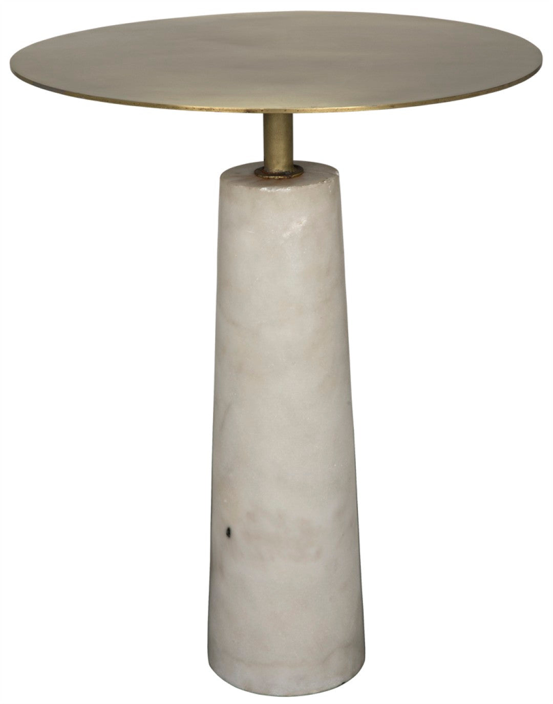 - Design: Cylindrical marble base with a thin round metal top offers a sleek, minimalist silhouette