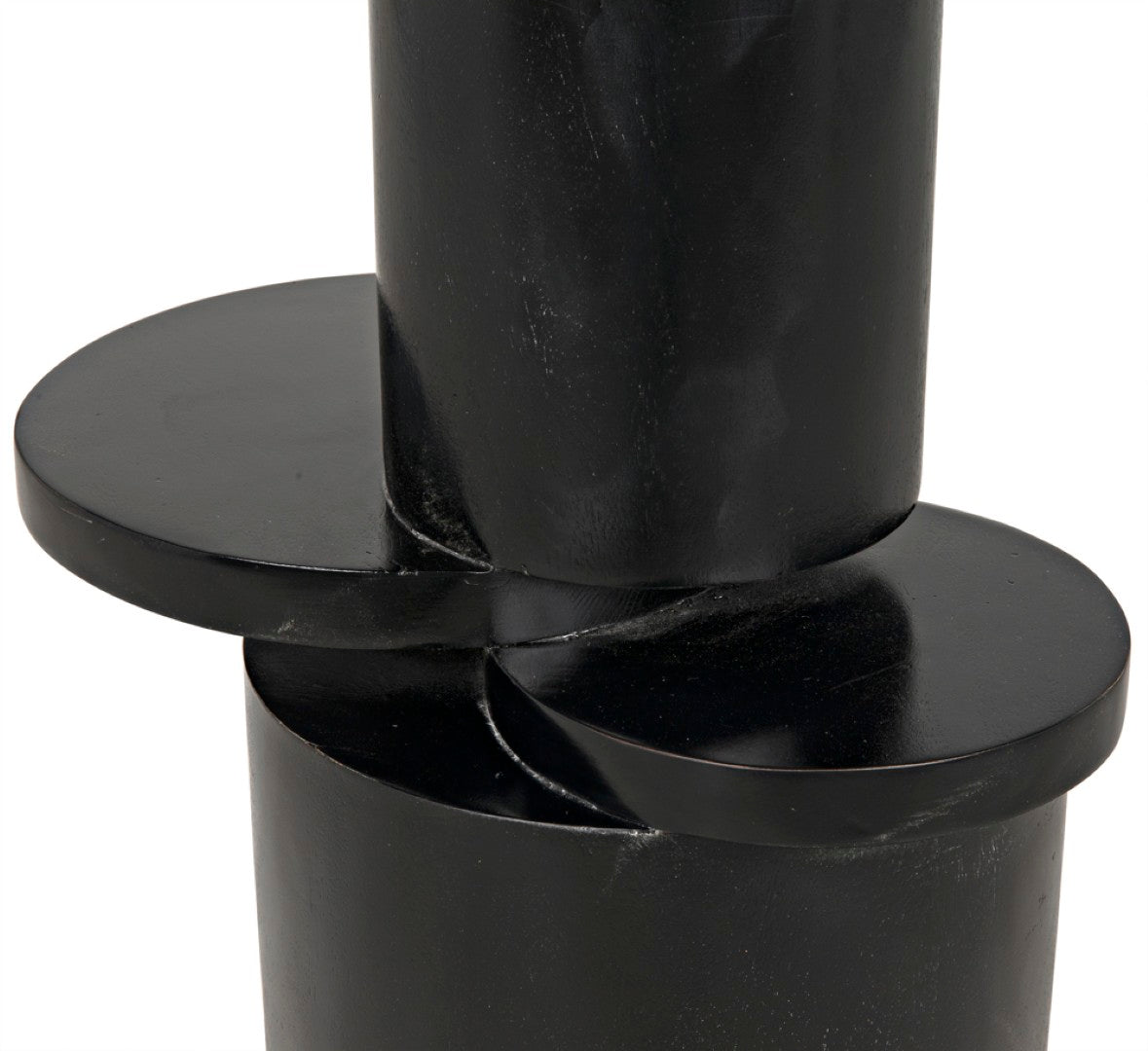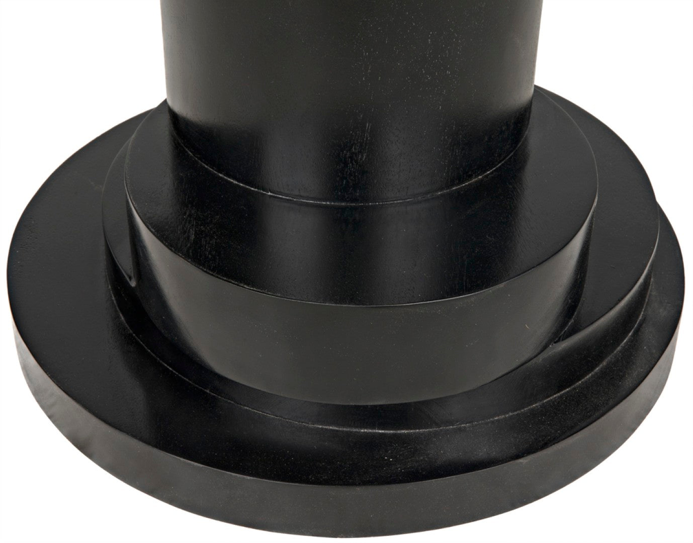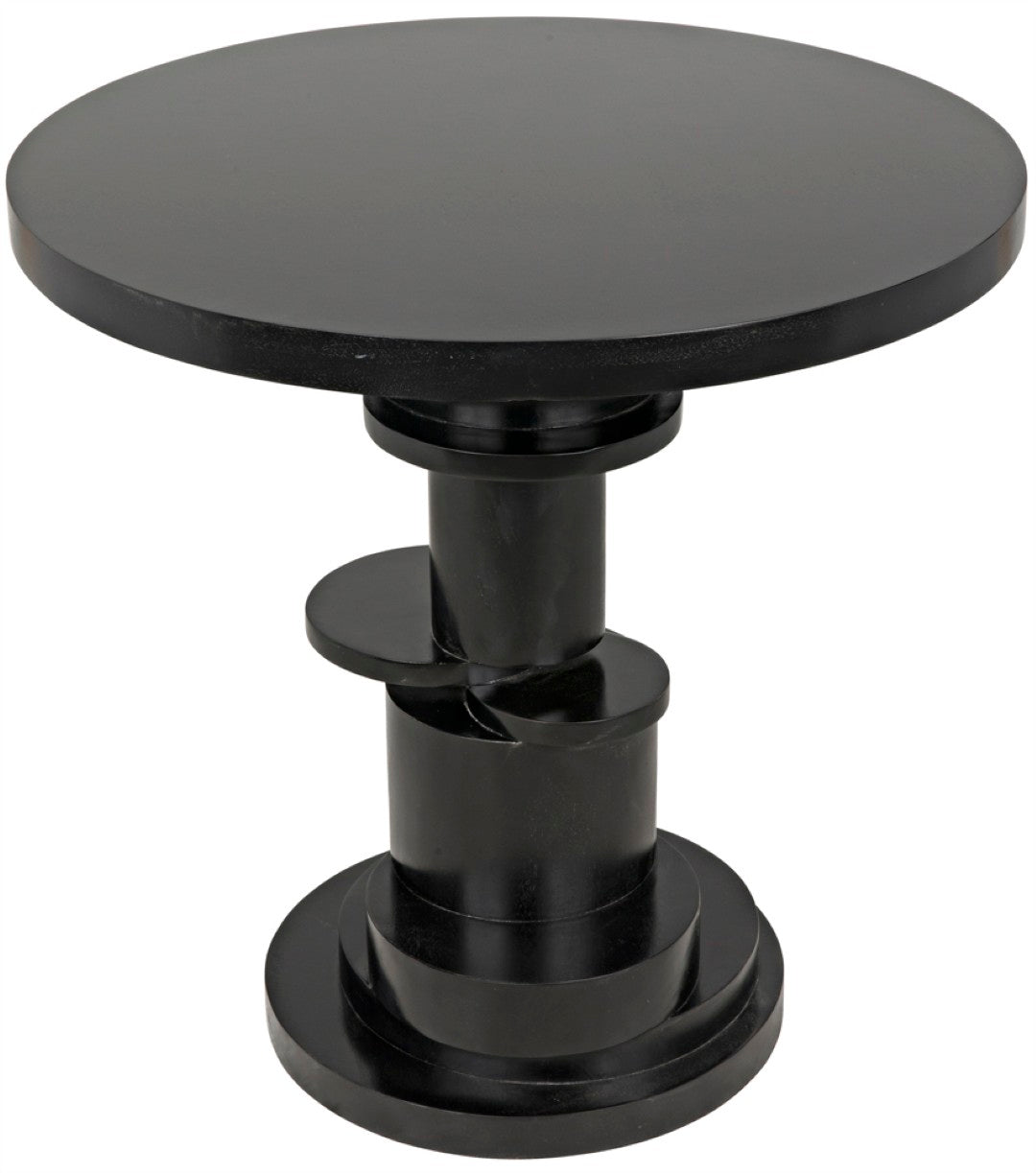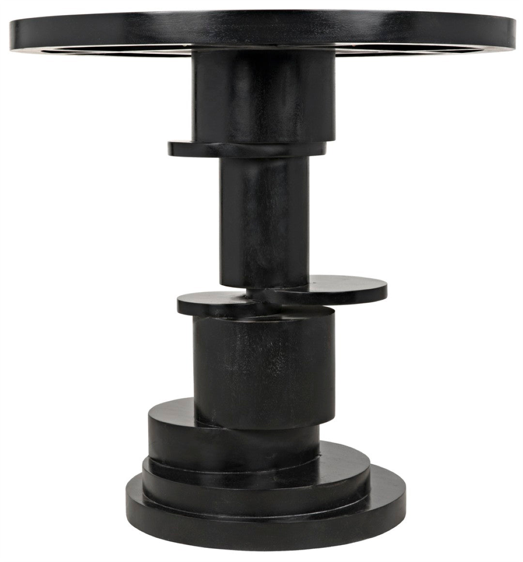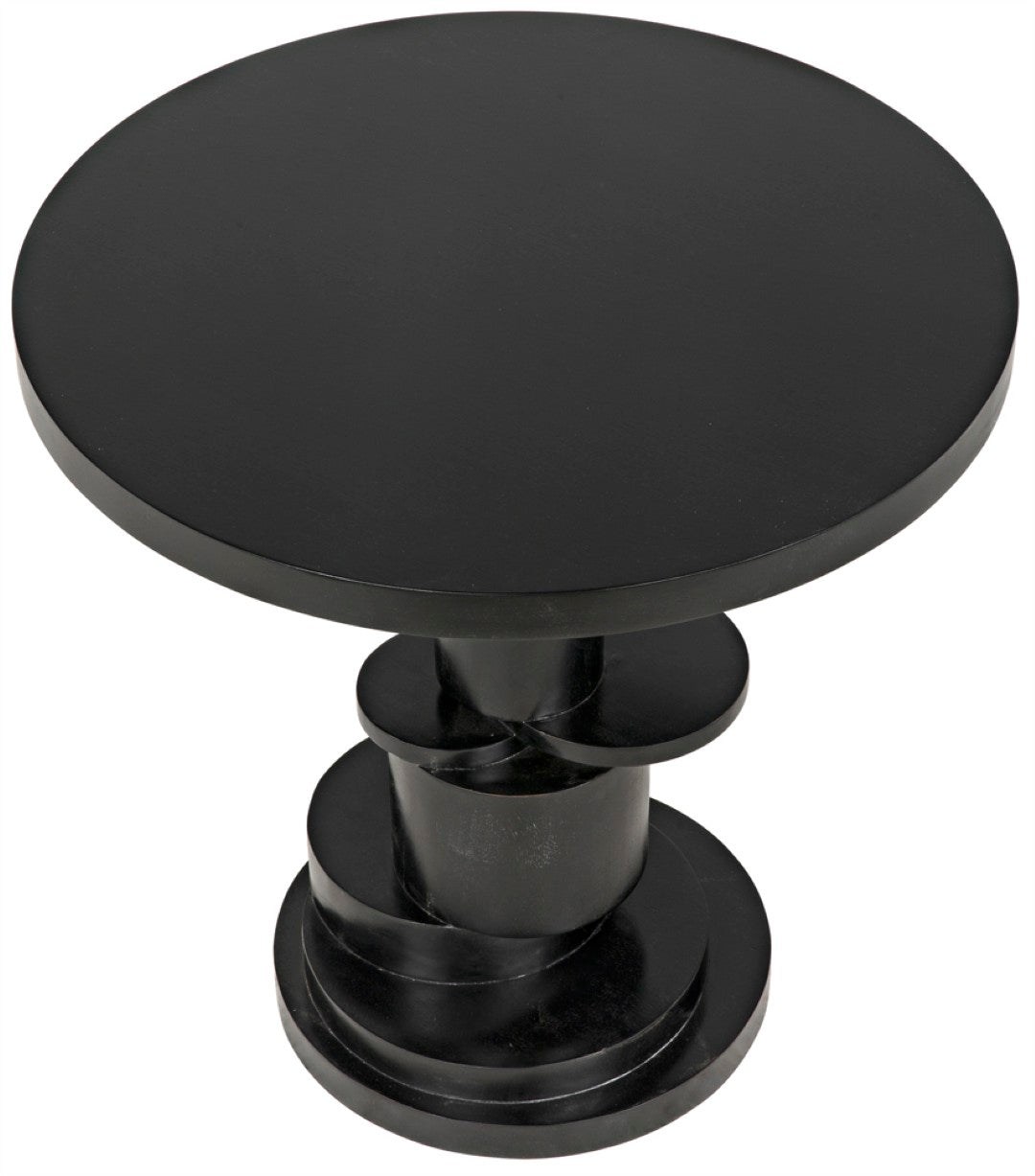 Add a sculptural accent to your living space with this hand-carved mahogany side table that blends traditional form with playful, modern detail. The perfectly round top and artfully stacked circular base create visual interest from every angle, while the hand-applied finish and solid construction ensure lasting beauty and function.