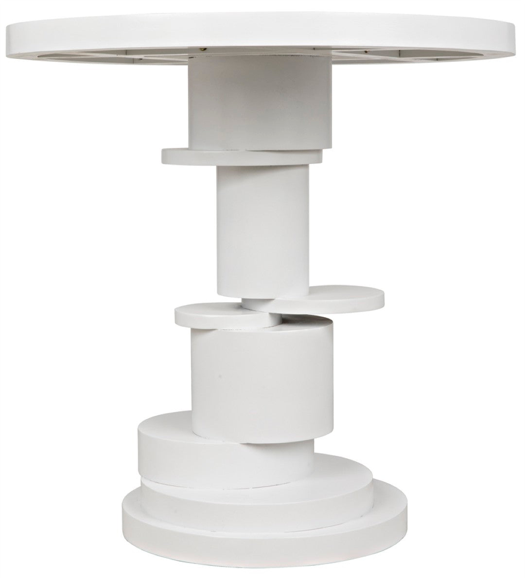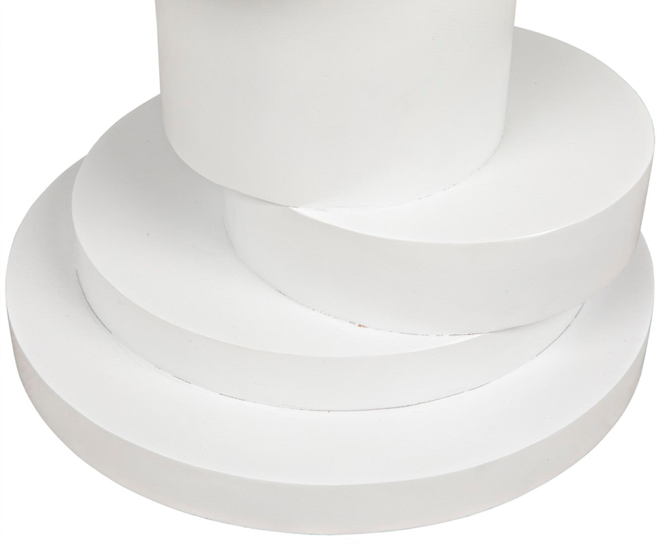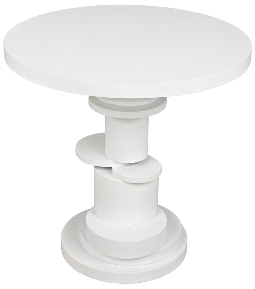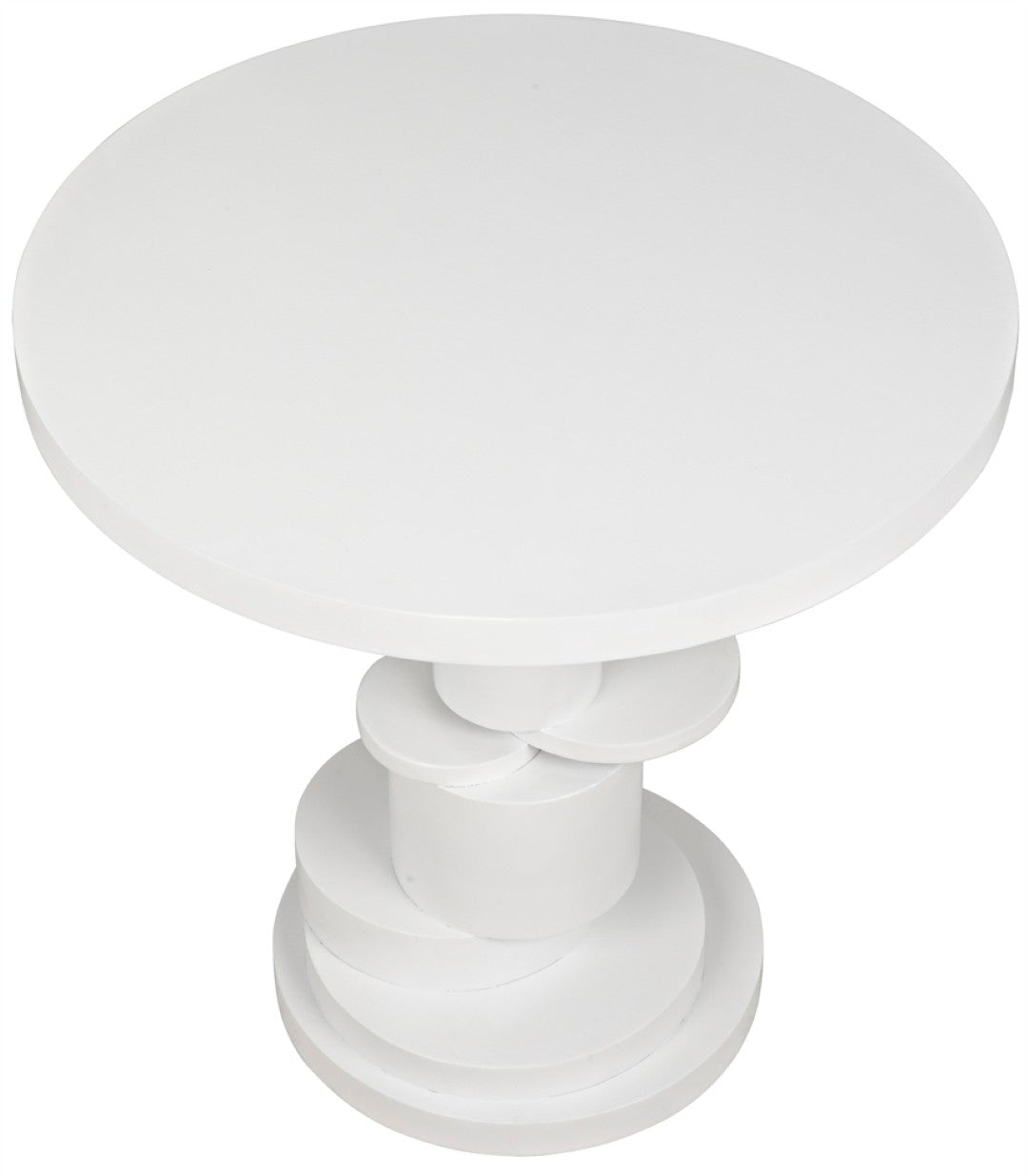 - Design: Round top with a stacked-round base—hand-carved details provide a whimsical twist on classic lines