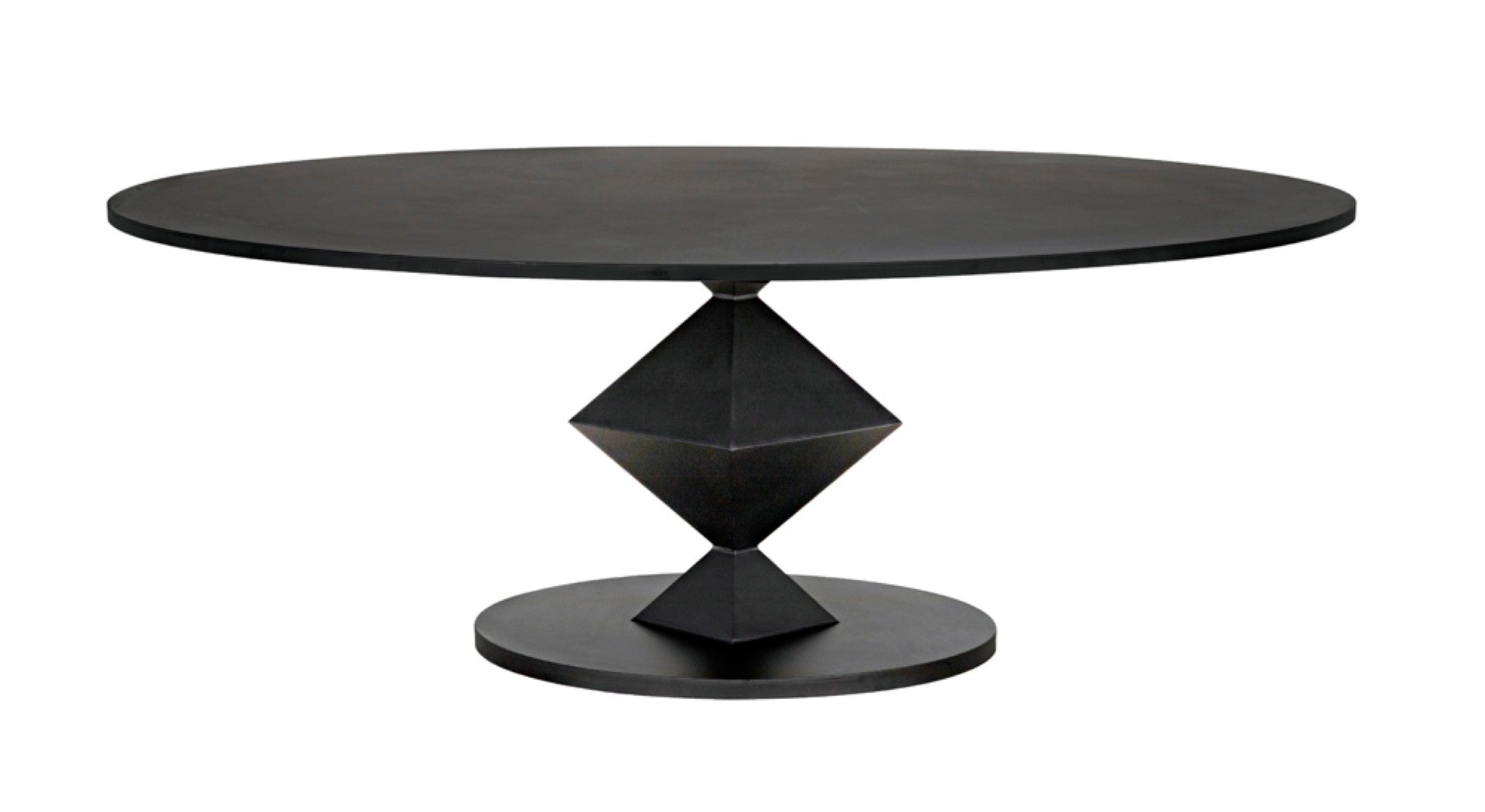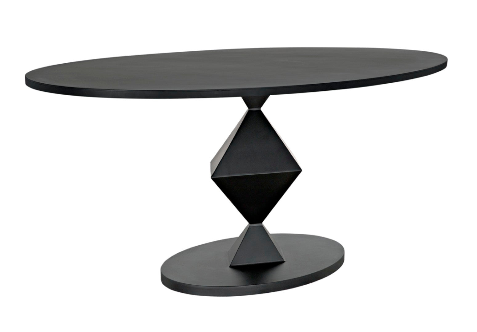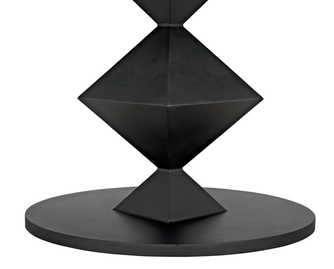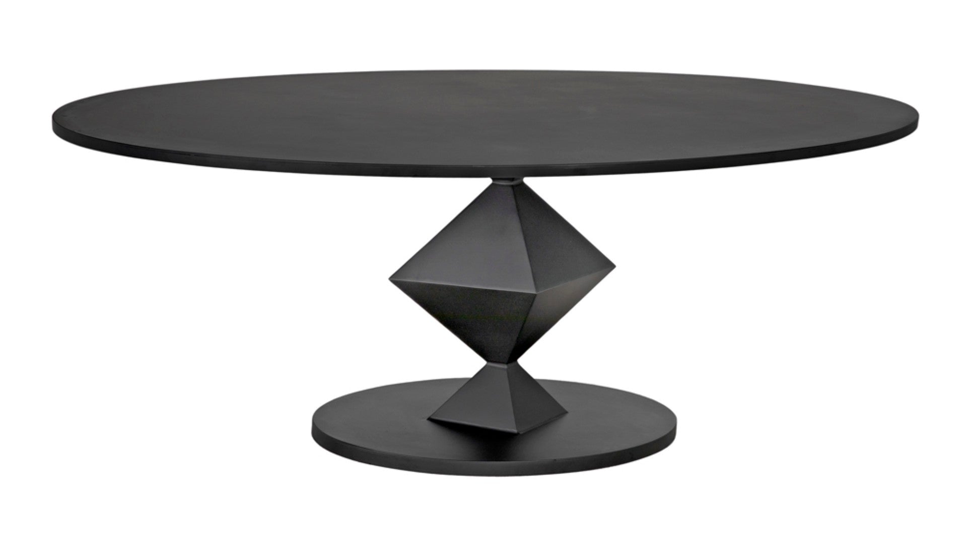 This striking dining table blends geometric precision with industrial craftsmanship to create a centerpiece that is both sculptural and supremely functional. Hand-finished in matte black, its origami-inspired silhouette and durable iron construction suit contemporary, minimalist, and urban interiors — offering a bold statement piece that balances form and everyday usability.
