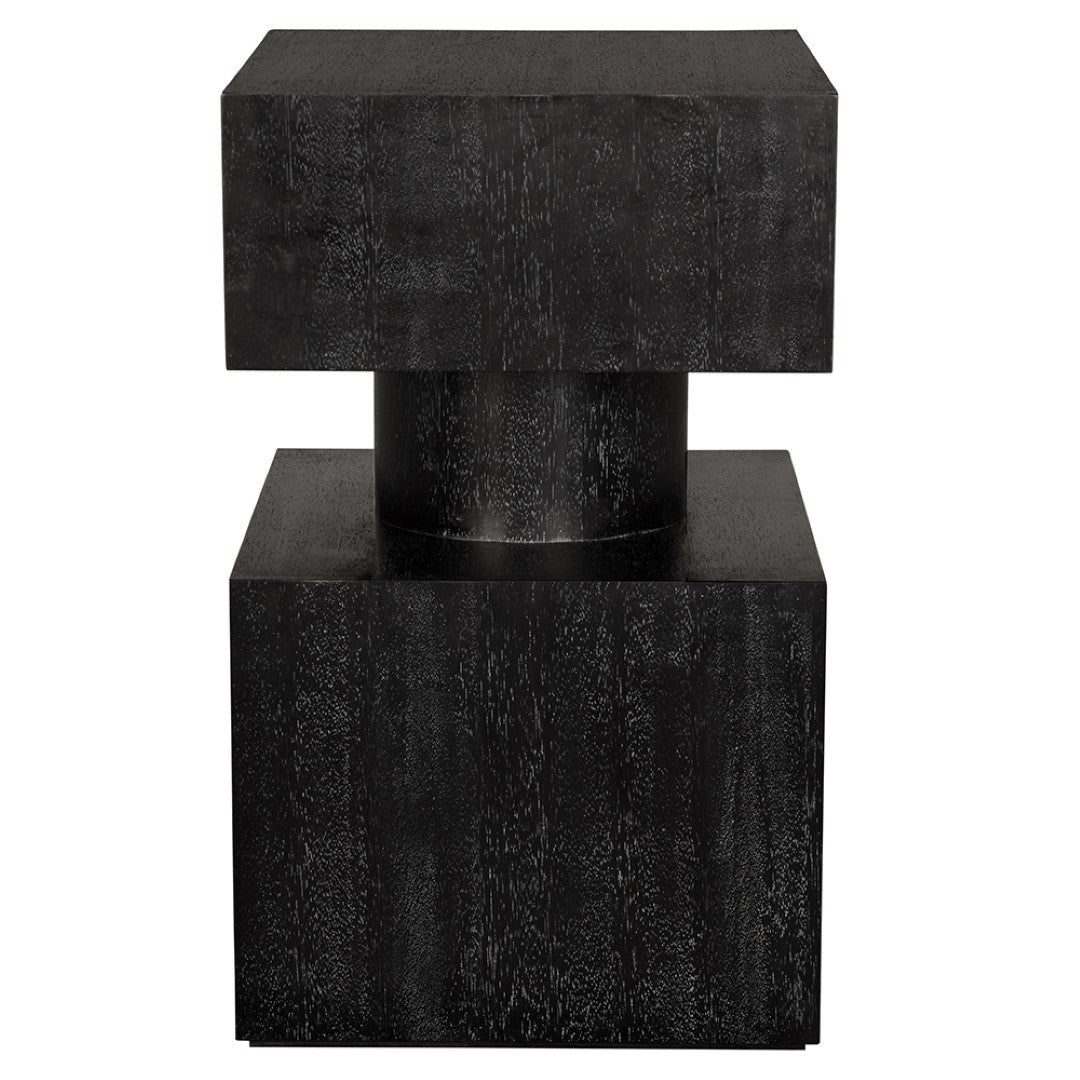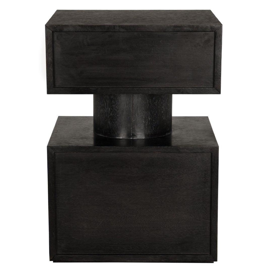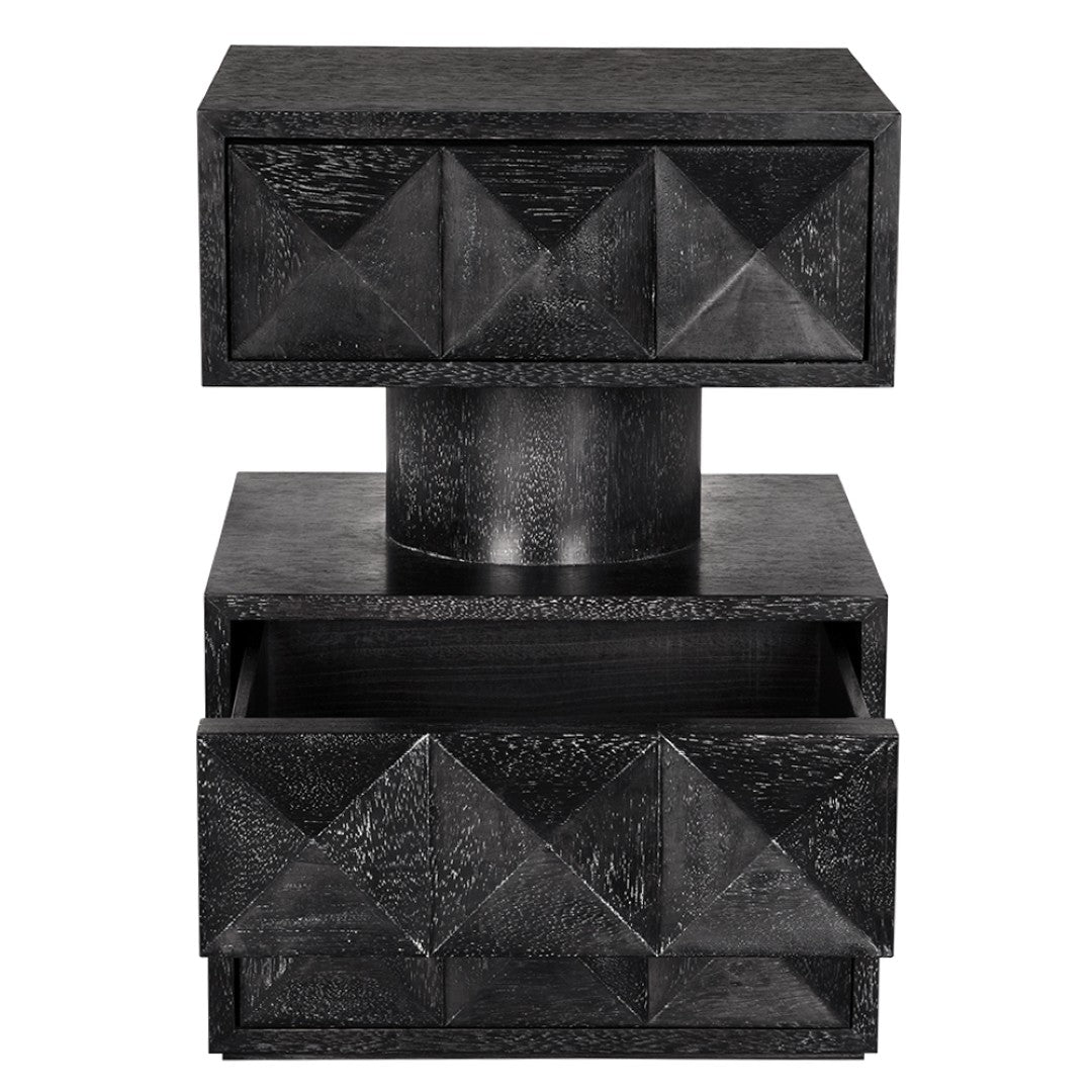 Elevate your living space with the Kingston Side Table — a modern accent piece that combines sculptural form with practical storage. Featuring geometric diamond-patterned drawer fronts and a sleek cylindrical center, this table brings tactile texture and visual depth in a rich Black Walnut finish. Ideal beside a sofa or bed, it offers curated storage without sacrificing style.