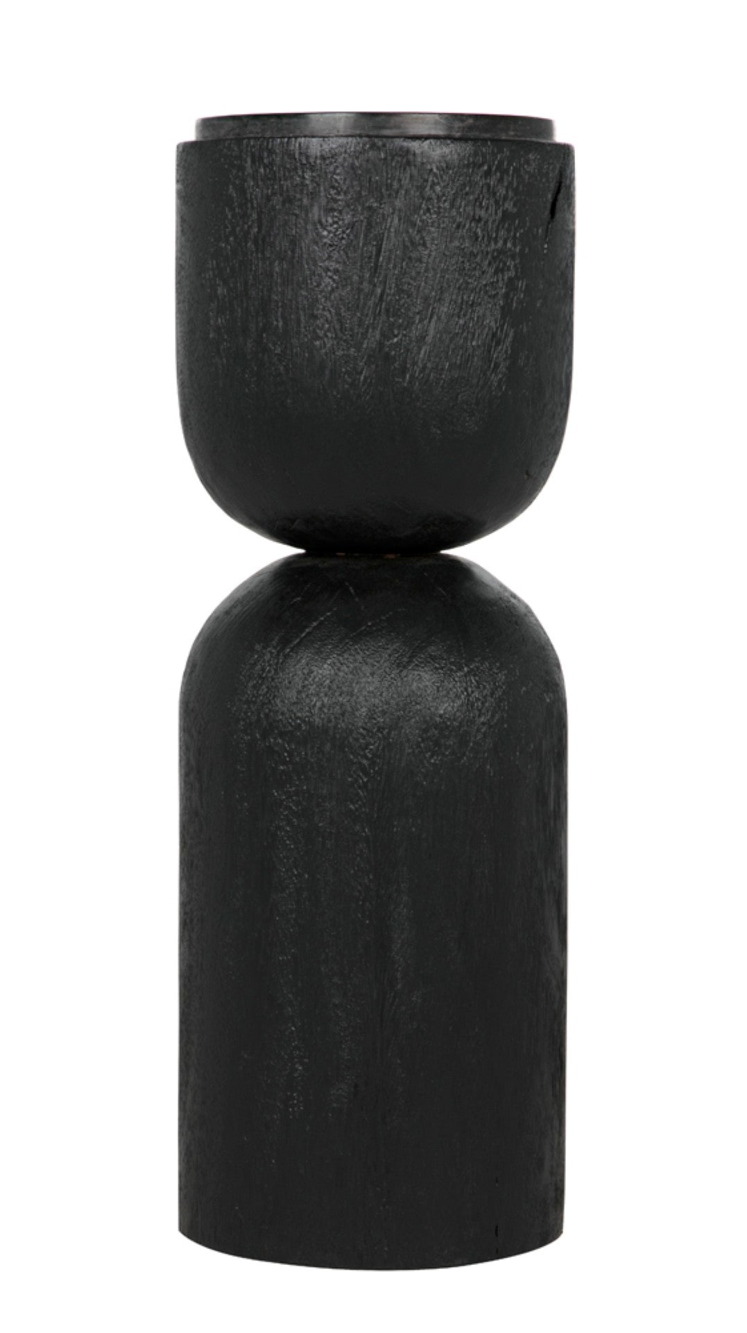 Bring sculptural elegance to your living space with this Kudoro side table — a compact statement piece that pairs organic form with refined materials. The hourglass silhouette carved from natural Munggur wood and topped with sleek marble creates a striking contrast of texture and tone, while the black burnt finish adds a contemporary, slightly edgy character. Ideal for small spaces, it functions equally well as a bedside table, accent piece, or occasional surface.