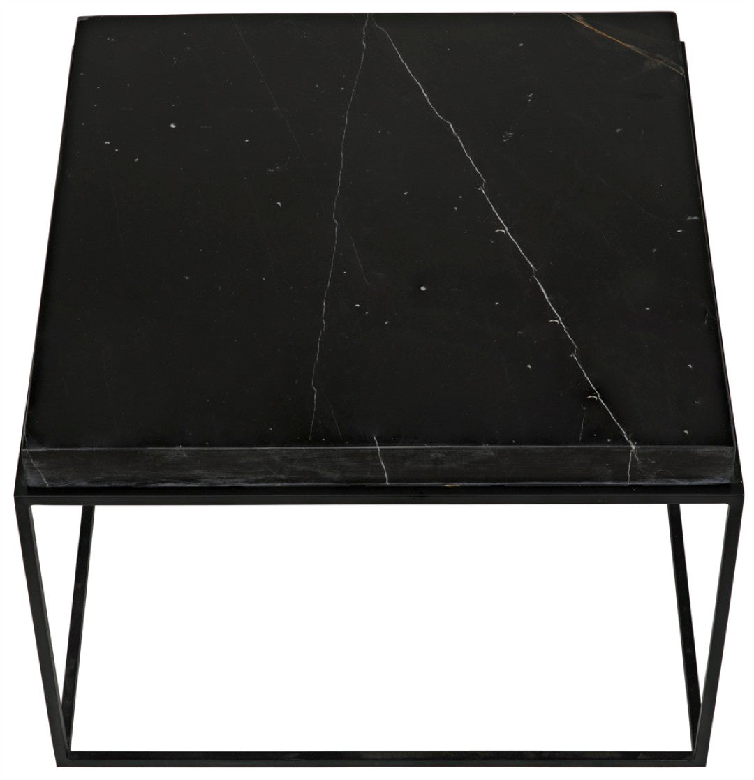 The Lomax coffee table brings minimalist elegance to your living space, combining a refined rectangular Night Snow marble top with a slim, matte black iron base for a look that's both modern and timeless. Crafted to showcase the natural beauty of marble and the clean lines of metal, this table works equally well as a focal point in contemporary interiors or as a subtle complement to classic décor.