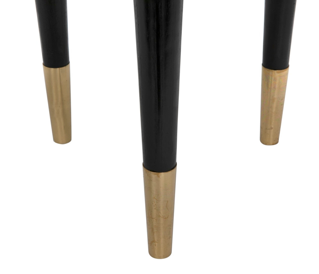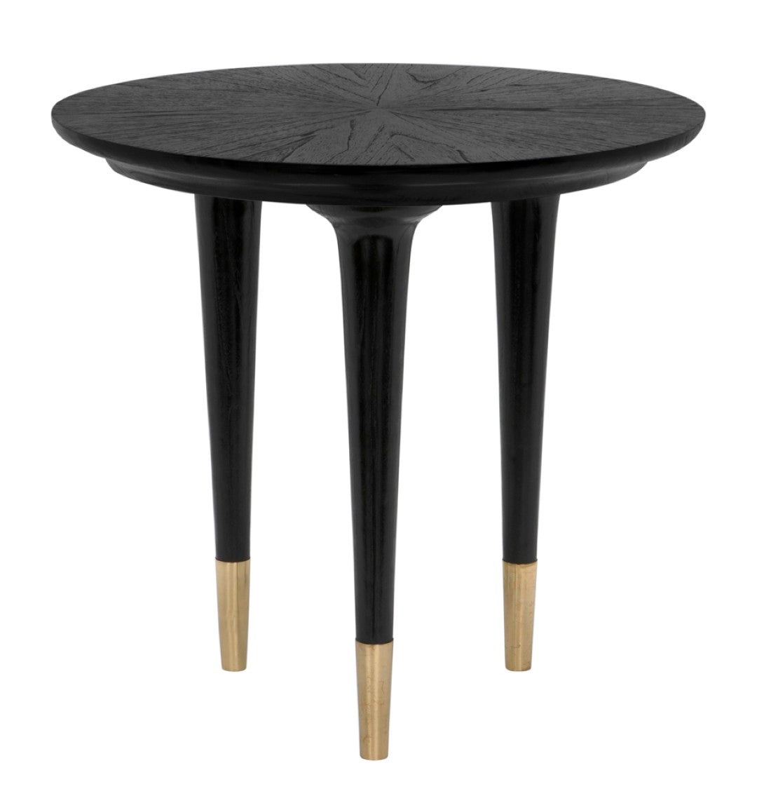 Add a touch of modern timelessness to any room with this elegantly simple round side table. Combining warm sungkai wood in a charcoal black finish with polished brass-capped legs, the Maganini Side Table offers refined contrast, sturdy construction, and versatile style that complements contemporary and classic interiors alike.
