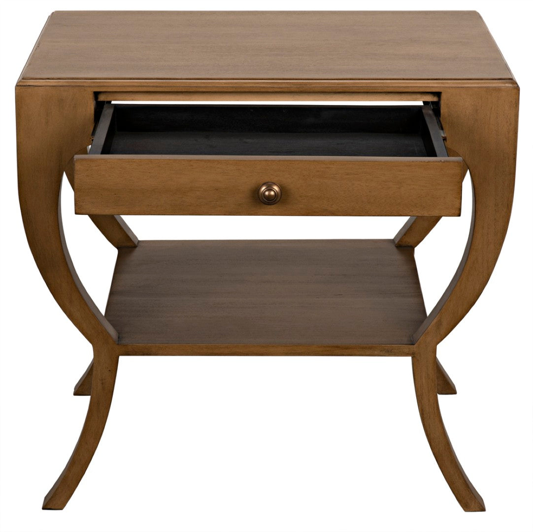 A refined blend of modern minimalism and classic craft, this side table brings quiet elegance to bedroom or living spaces. Thoughtfully carved from mahogany with a pale finish and brass pulls, it offers a subtle statement that complements rather than competes with your decor. A single drawer provides discreet storage for bedside essentials while the compact profile keeps the room airy and balanced.