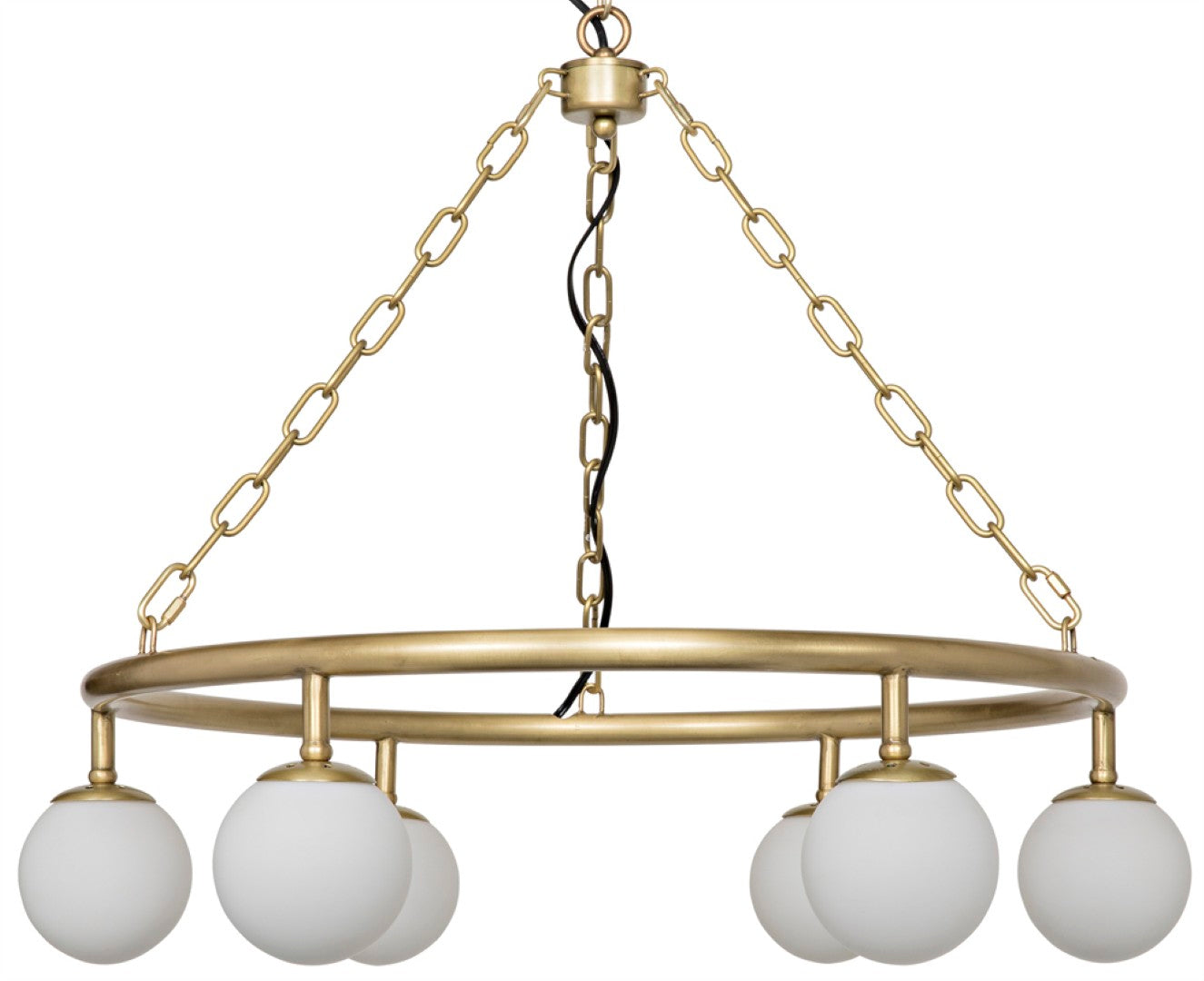 Bright and sculptural, this Modena chandelier brings modern elegance and soft, diffused light to living rooms, dining areas, or entryways. Its antique brass finish and six spherical shades create a warm, inviting glow while maintaining a clean, contemporary silhouette that complements a wide range of interiors.