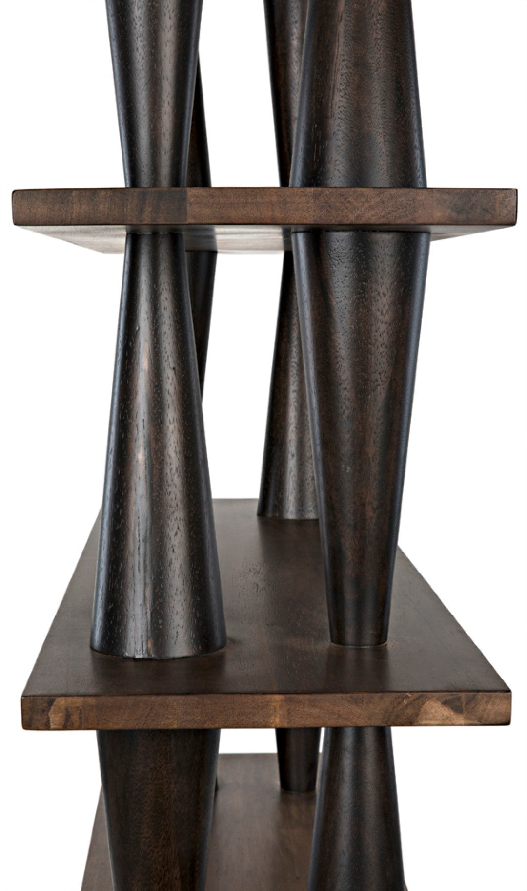 Elevate your living space with this striking Mood bookcase, a handcrafted walnut piece that blends contemporary design with artisanal detail. Its clean lines, contrasting ebony and dark walnut finishes, and signature conical accents make it a functional focal point—ideal for displaying books, décor, and treasured objects while adding warmth and sculptural interest to any room.